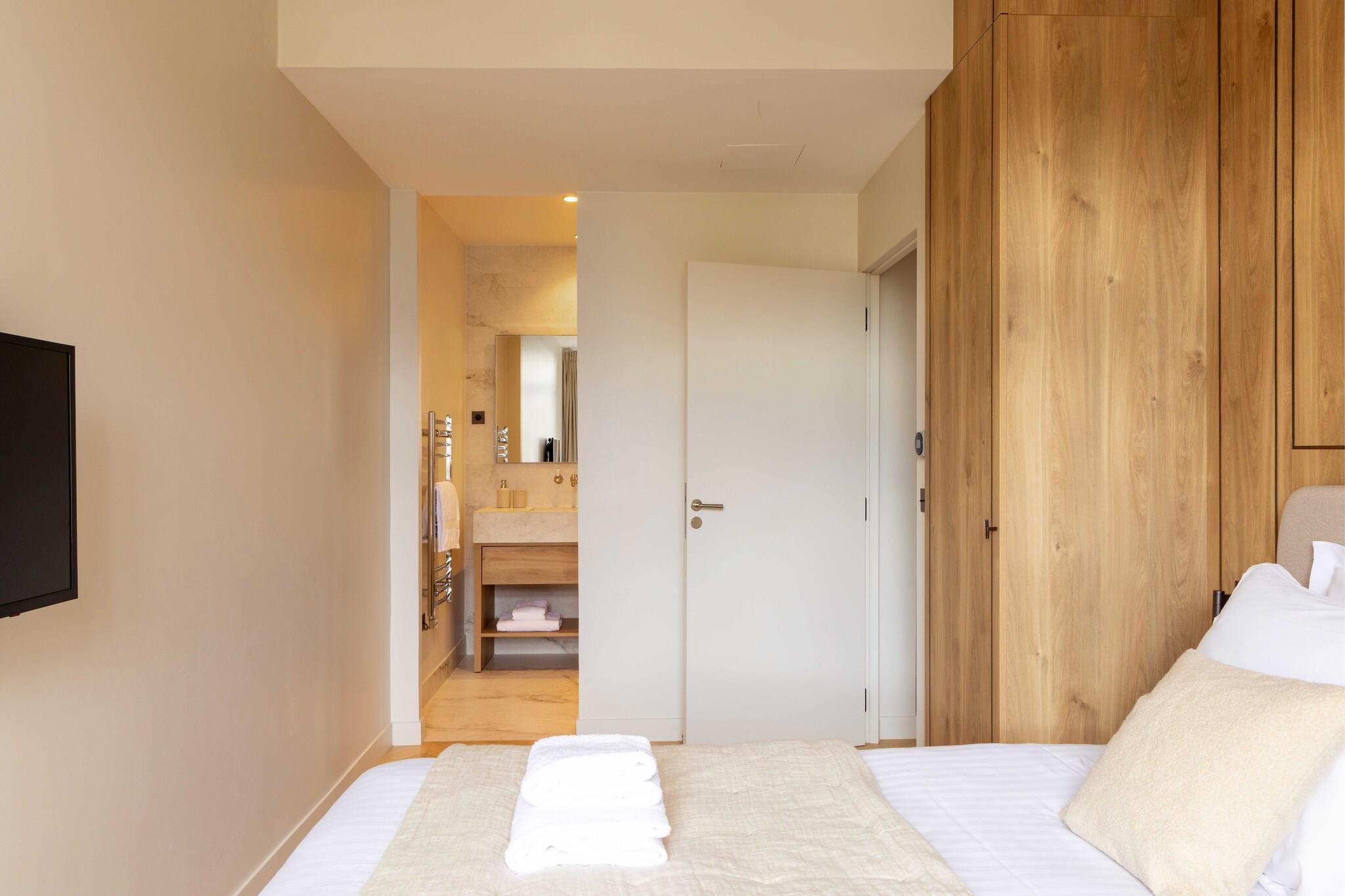 På 5. etage: (åbent køkken(spisebord, kakkelovn, elkedel, brødrister, kaffemaskine, ovn, mikrobølgeovn, opvaskemaskine , køleskab, , ), Stue/soveværelse(, , Fjernsyn, klimaanlæg), Soveværelse med badeværelse(, dobbeltseng, bruser, toilet), Soveværelse med badeværelse(, dobbeltseng, bruser, håndvask, Håndklæder/sengelinned (inkl.)), toilet(toilet)) , , Førstehjælp, Legeområde, vaskemaskine, balkon eller terrasse, varme, strygejern, føntørrer, crib(free), , , Carbon monoxide detector, Cleaning Disinfection, Downtown, Enhanced cleaning practices, High touch surfaces disinfected, Long term stays allowed, Room-darkening shades, Town