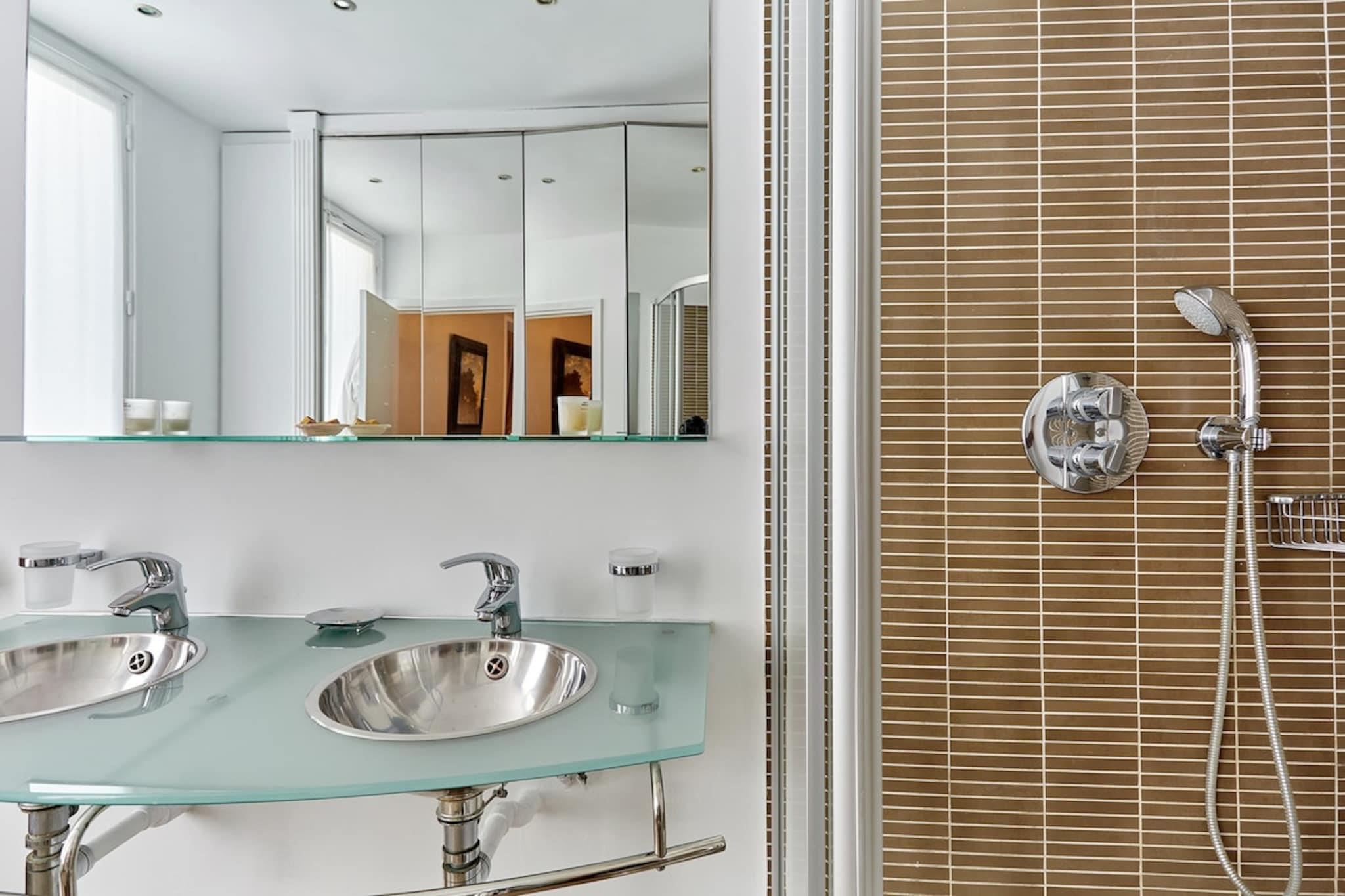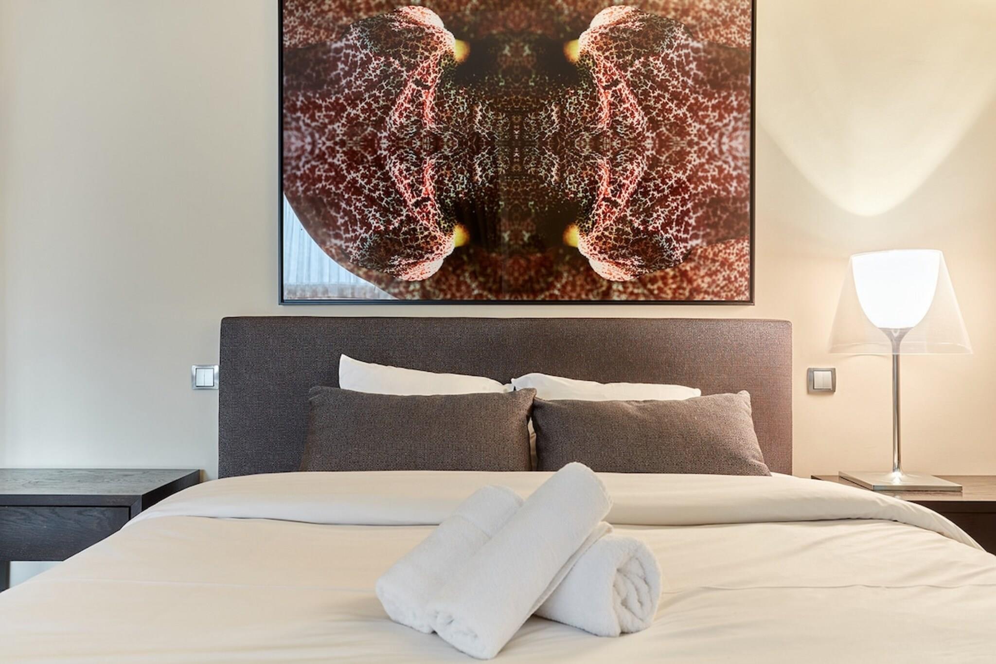 På 6. etage: (Køkken(kakkelovn, elkedel, brødrister, komfur, kaffemaskine, ovn, mikrobølgeovn, opvaskemaskine , køleskab, fryser, , Baking sheet, Wine glasses), stue / spisestue(Internetadgang, Fjernsyn, spisebord, sofahjørne), Soveværelse med badeværelse(bruser, håndvask, toilet, føntørrer, Håndklæder inkl., , Queen Bed), toilet) , , , , Førstehjælp, Fjernsyn, kakkelovn, tørretumbler, vaskemaskine, balkon eller terrasse, varme, klimaanlæg, strygejern, føntørrer, crib(free), , , , , , Baking sheet, Carbon monoxide detector, Downtown, Shower gel