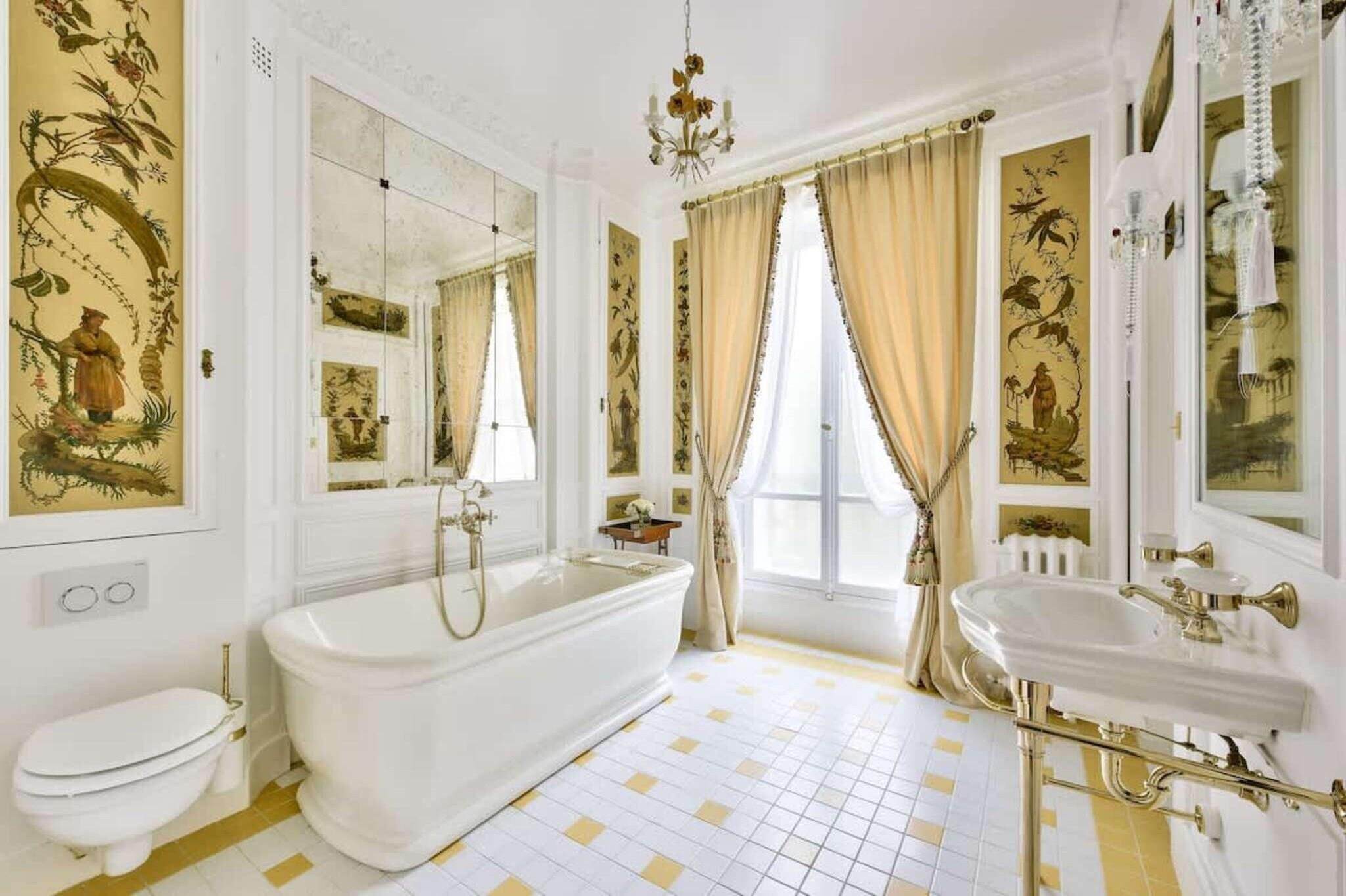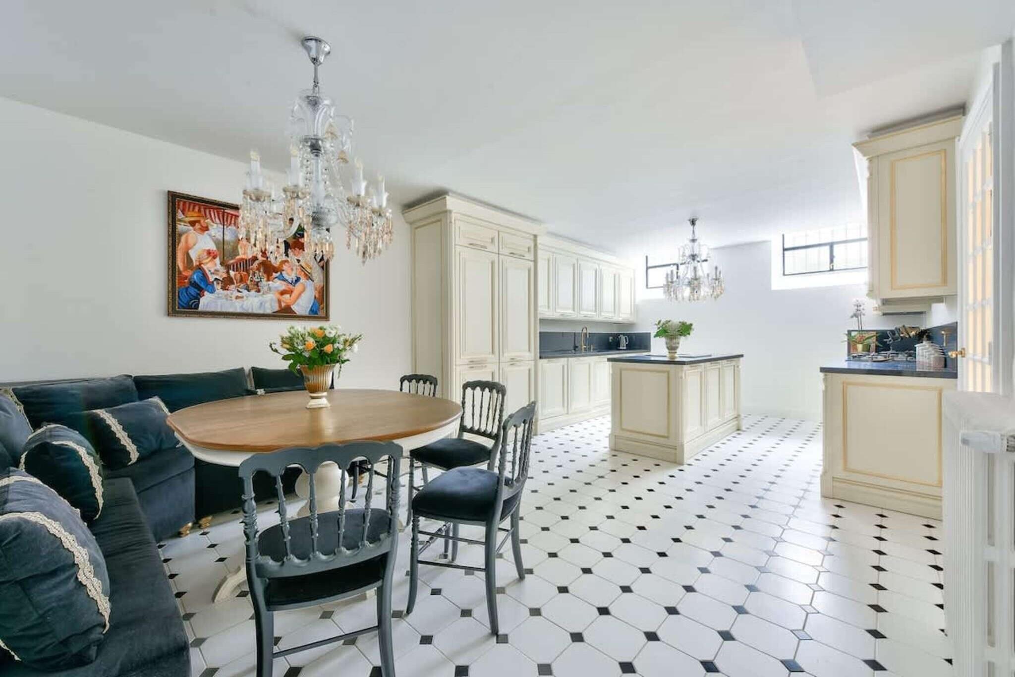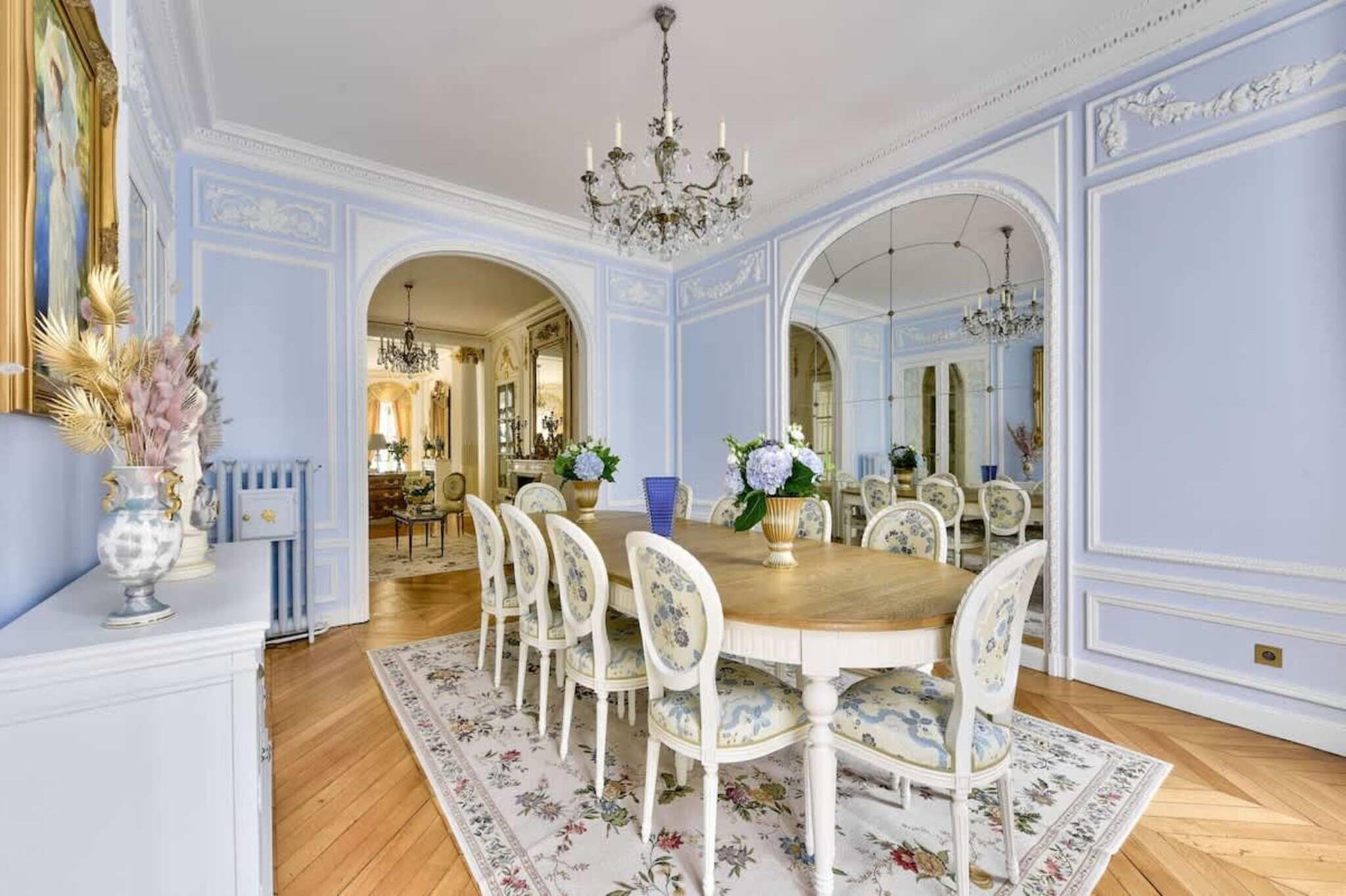Forestil dig at træde ind i en adelig parisisk residens, et sandt kulturarvsstykke udført i den udsøgte "Louis XVI"-arkitekturstil. Beliggende i det ultra-chikke 16. arrondissement, er dette 400 kvadratmeter store hjem en oase af luksus og ro, kun et stenkast fra Triumfbuen og de majestætiske Champs Élysées. For dem, der søger indbegrebet af fransk elegance, er dette din fordybelse. Inden for få minutter kan du slentre til Eiffeltårnet, luksusbutikkerne på rue du Faubourg Saint-Honoré, Place de la Madeleine og Louvre-museet - det bedste af Paris er virkelig lige uden for din dør. Renoveringen blev betroet Frankrigs mest prestigefyldte arkitekt- og dekorationsfirmaer, eksperter i kulturarv, under ét princip: "intet andet end det bedste". Æstetikken er betagende. Hvert hjørne fortæller en historie, fra de overdådige vægpaneler og håndlavede lister til de funklende lysekroner og franske håndlavede gardiner. Boligen rummer komfortabelt gæster i fem rummelige soveværelser og fire fuldt udstyrede badeværelser. Køkkenet tilbyder alle bekvemmeligheder, herunder opvaskemaskine, ovn, blender, ismaskine og kaffemaskine. Moderne bekvemmeligheder som aircondition, varme og højhastighedsinternet er problemfrit integreret i hele rummet. For at sikre, at dit ophold er fuldstændig bekymringsfrit og exceptionelt, tilbyder vi eksklusive luksusfordele. Start hver dag med en lækker kontinental morgenmad inkluderet. Din komfort opretholdes døgnet rundt af vores dedikerede personale med daglig rengøring og concierge-service. Vi tilbyder også maksimal bekvemmelighed med fire private parkeringspladser i vores garage, en sjælden facilitet i centrum af Paris.