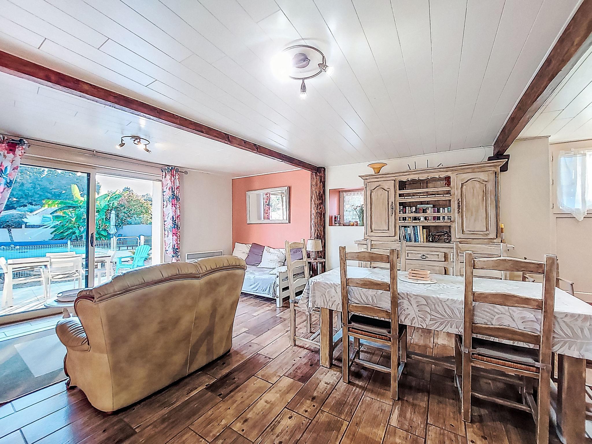 "Tuilières", 4-room house 85 m2 on 2 levels. Bright, beautiful and cosy furnishings: large living/dining room with dining table and satellite TV (flat screen), wood-burning stove. Exit to the garden. 1 room with 1 french bed (160 cm, length 200 cm). Open kitchen (1 hot plate, oven, dishwasher, 3 gas rings, toaster, kettle, microwave, freezer, electric coffee machine, Capsules for coffee machine (Tassimo)) with bar. Shower, sep. WC. Upper floor: 1 open room with sloping ceilings with 1 french bed (140 cm, length 190 cm). 1 room with sloping ceilings with 2 beds (90 cm, length 190 cm). Electric heating. Terrace partly roofed. Terrace furniture, barbecue (portable), deck chairs. Beautiful view of the swimming pool. Facilities: washing machine, iron, children's high chair, baby cot (extra). Internet (WiFi, free). Please note: non-smoking house. Smoke alarm. Bed layout is flexible. There are more sleeping options available than the maximum number of people allowed which may, however, not be exceeded. Offer by a private individual according to Art. 155, IV of CGI.