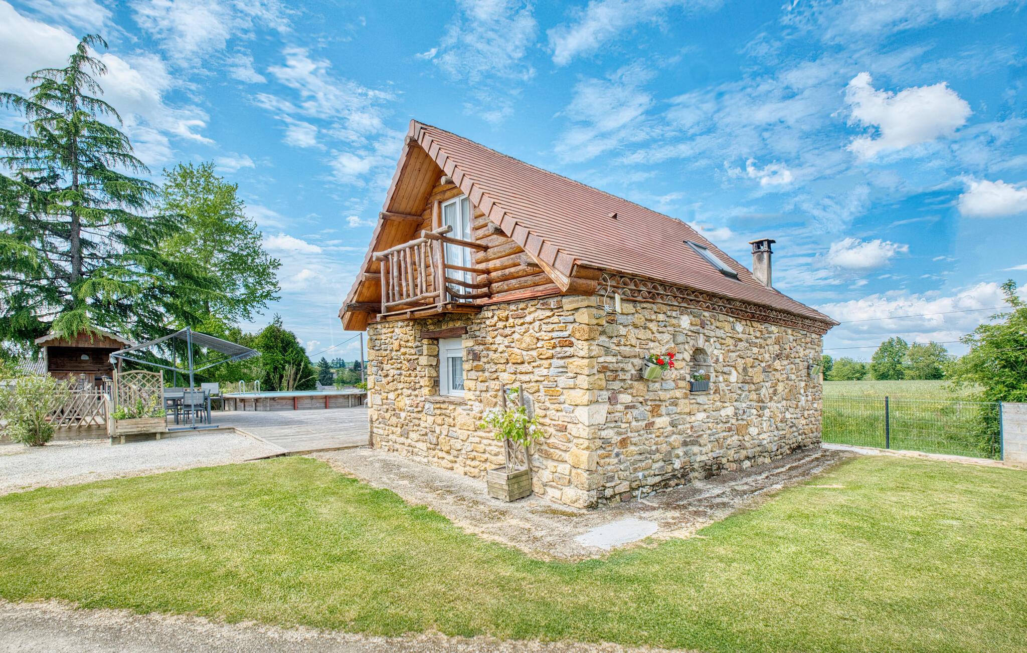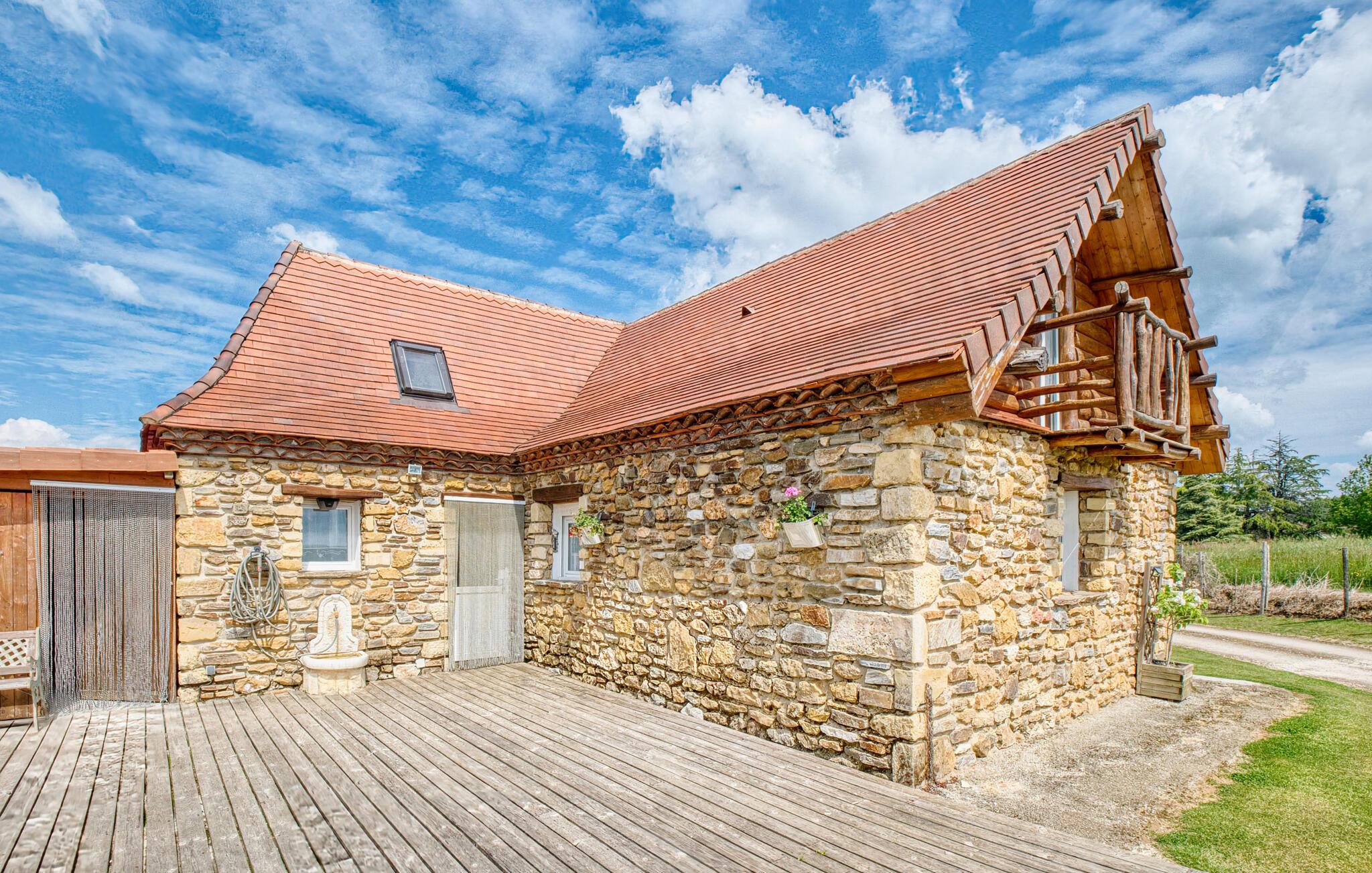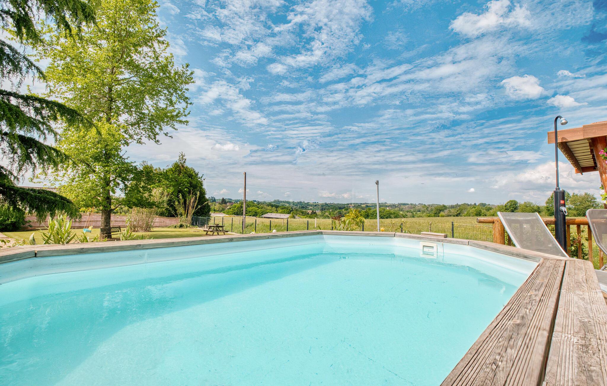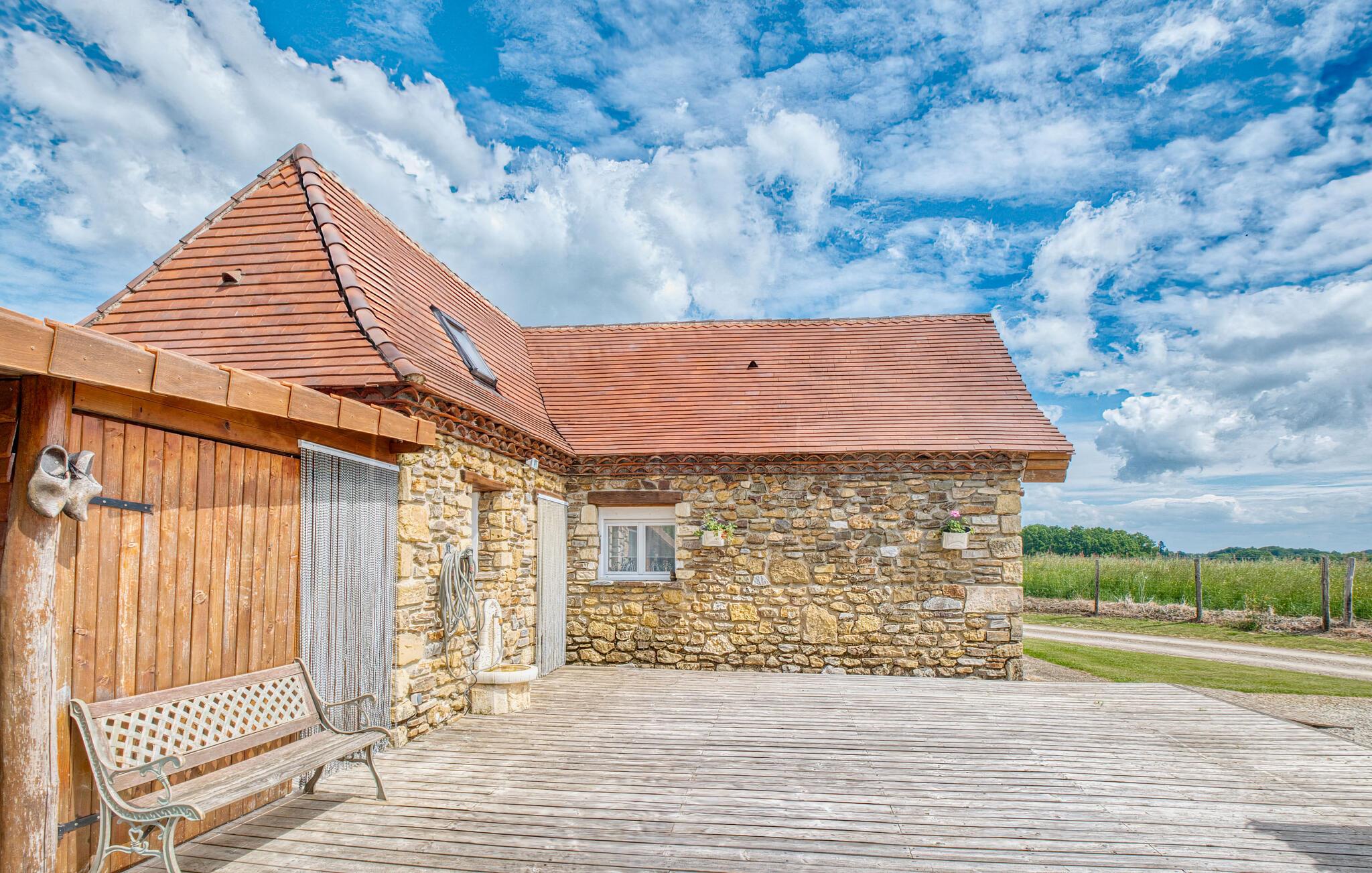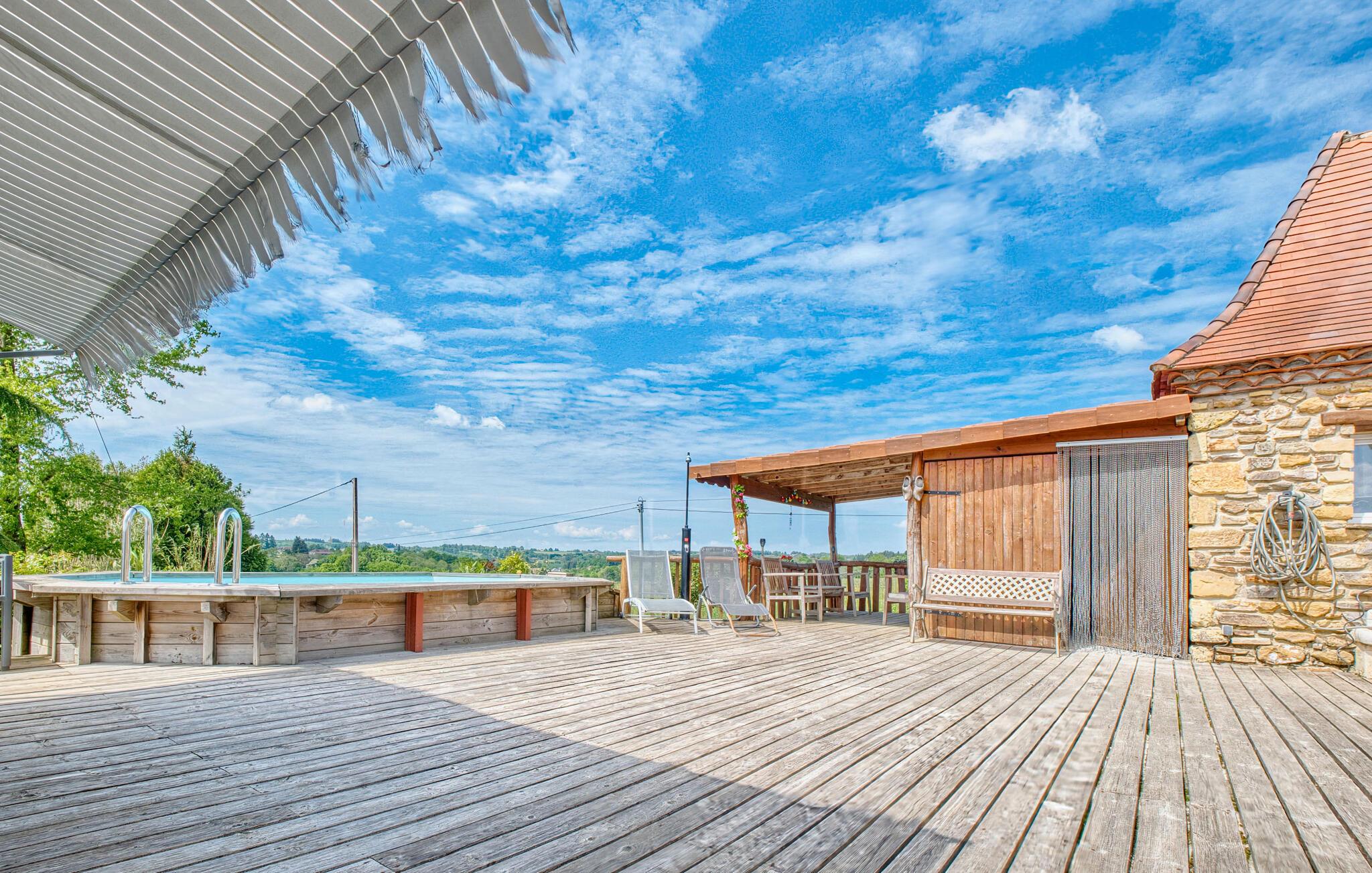 Tilbring afslappende dage i dette naturstenshus med pool og en betagende udsigt over landskabet.