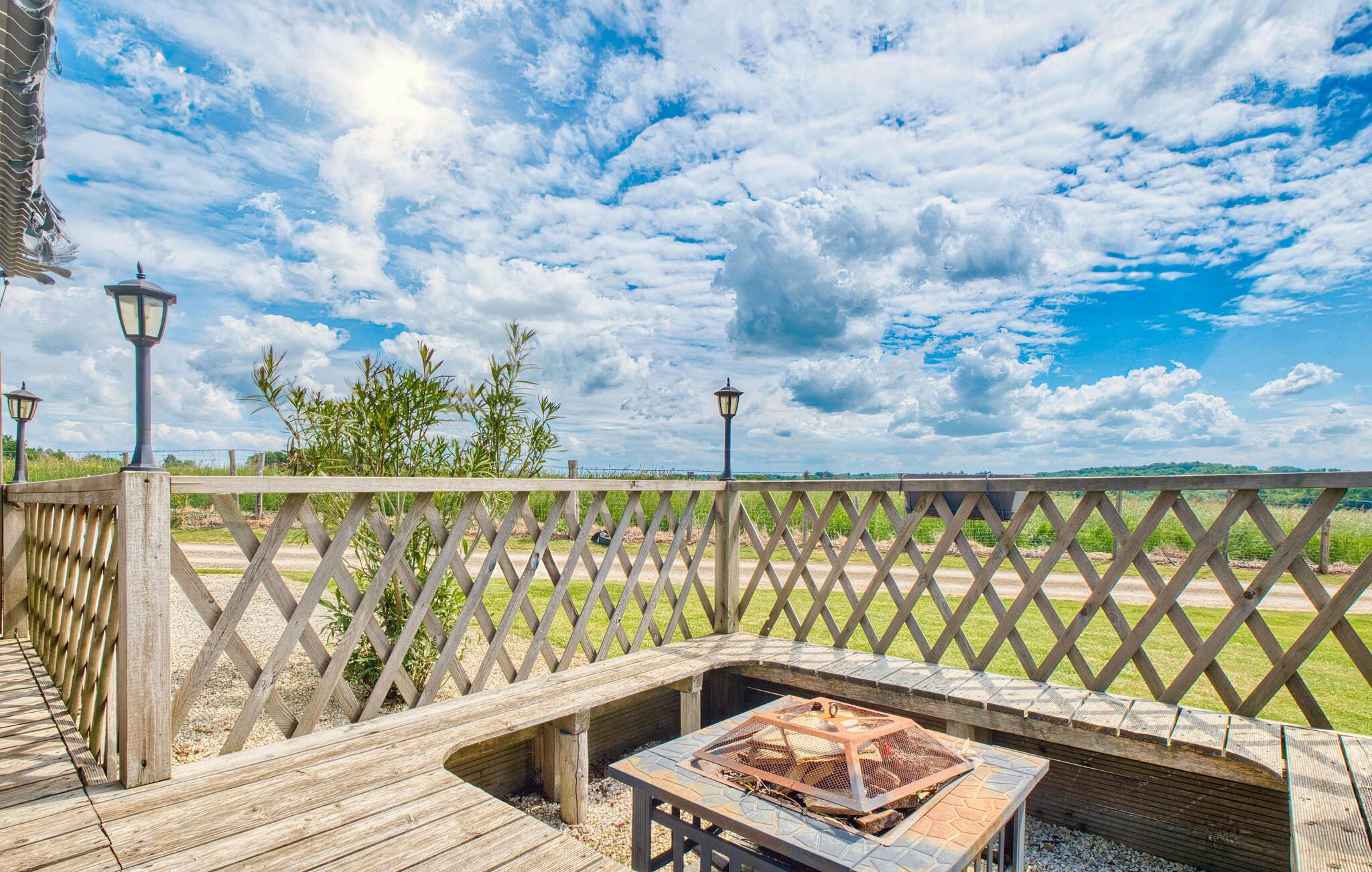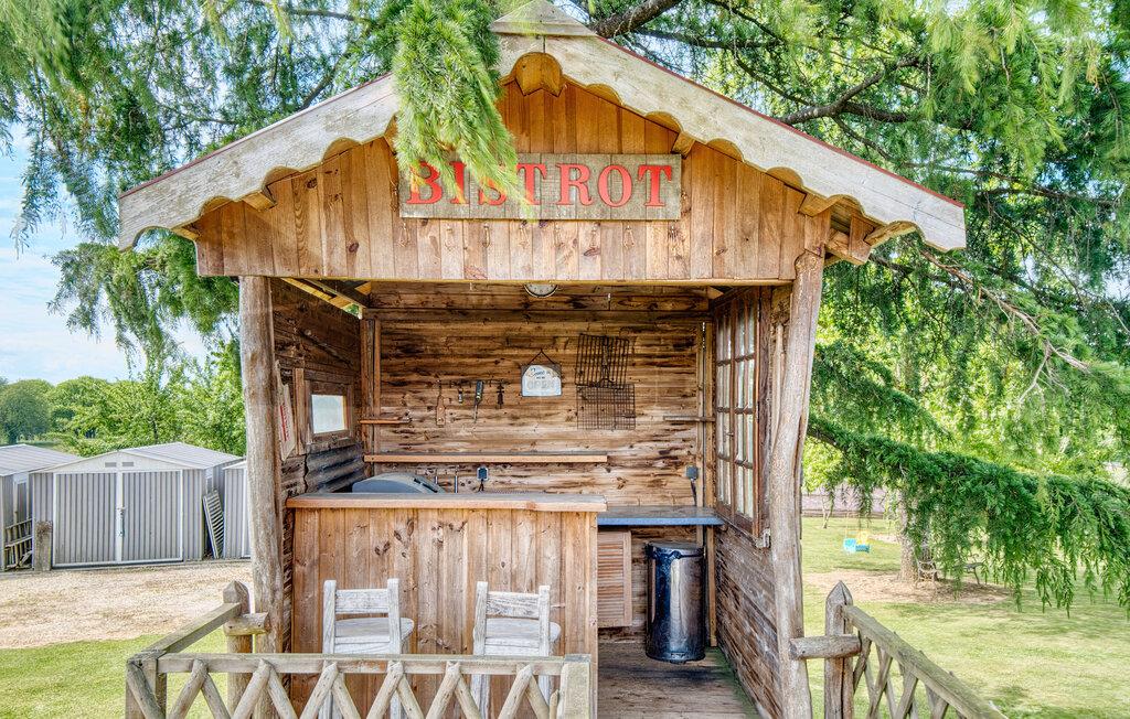 Brug udendørsområdet til socialt samvær og afslapning. Svøm i poolen med træterrasse, nyd jeres måltider i skyggen af ??pergolaen eller slap af på verandaen med en betagende udsigt over marker og bakker. For børnene er der et legehus, en rutsjebane, en vippe samt et bordtennisbord og en badmintonbane. Havebaren af ??træ lægger op til at nyde kølige drinks om eftermiddagen.