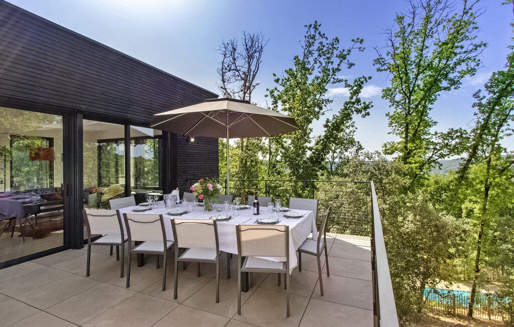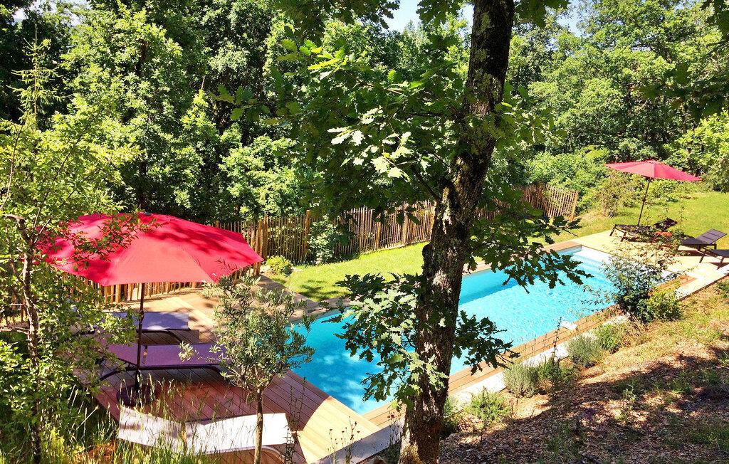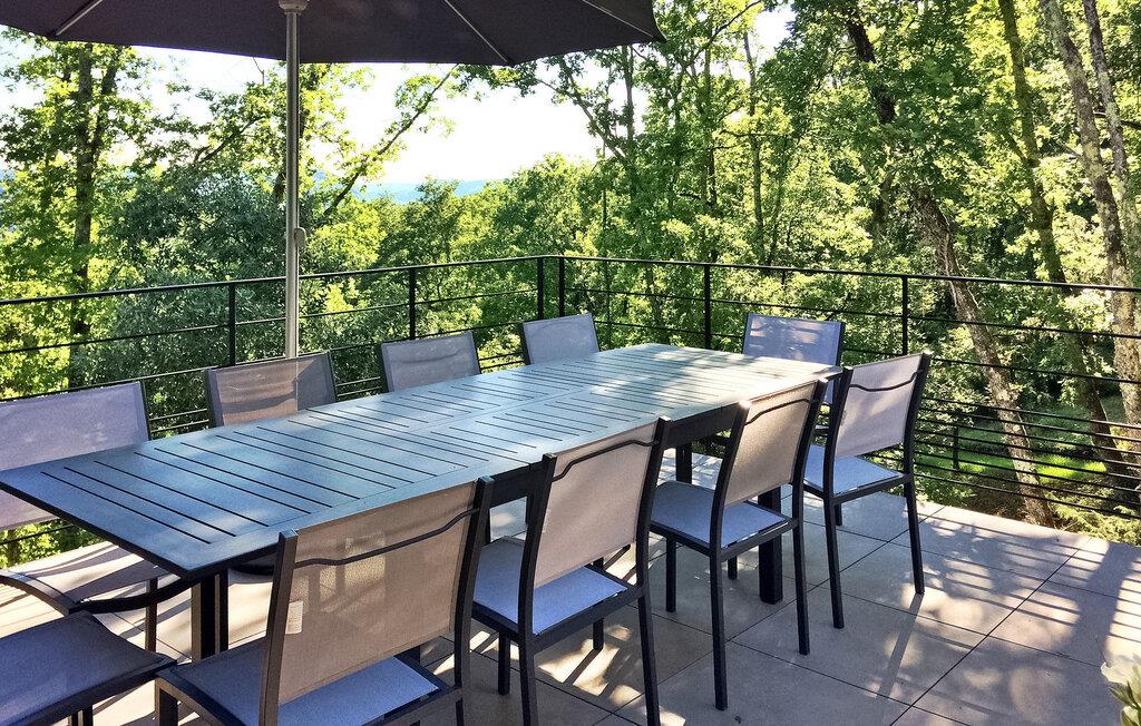 Nyd en pragtfuld ferie i denne rummelige villa i Dordogne, perfekt til en gruppe, der søger afslapning og komfort. Denne moderne villa har en privat opvarmet og lukket pool, der tilbyder en dejlig udsigt over dalen. Villaen byder på en række faciliteter. Stueetagen består af et rummeligt opholdsrum med spiseplads samt et komfortabelt opholdsområde. Dobbelt karnapper åbner ud til terrassen, udstyret med solgardiner, mens det halvåbne køkken giver adgang til det fri gennem en glasdør. Villaen indeholder også et ensuite soveværelse i stueetagen med udgang til terrassen. På haveniveau omfatter villaen yderligere soveområder, herunder et soveværelse perfekt til at rumme 4 børn. Udendørs byder på rigelig plads til afslapning og nydelse. Du vil finde en opvarmet swimmingpool sikret med en dykkeralarm og et hegn. Bemærk venligst, at ejerne bor på en nabogrund med egen indgang. På grund af de stejlt skrånende grunde kræves der særlig opmærksomhed for små børn. Huset er beliggende på landet, den nærmeste landsby er Cazoulès (ingen butikker), nærmeste butikker (supermarked og marked) i Souillac (5 km)