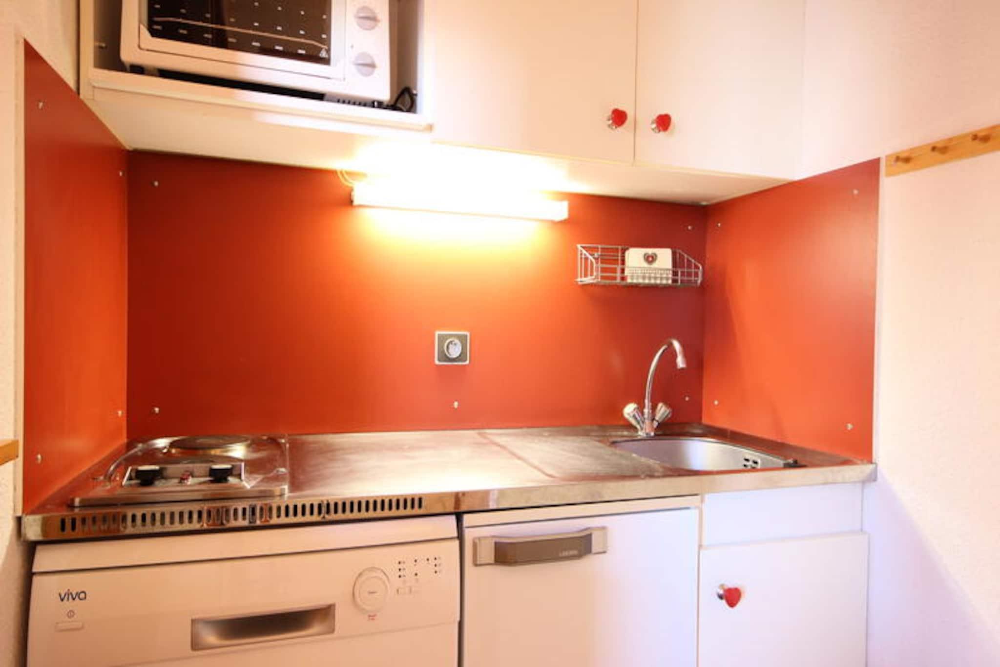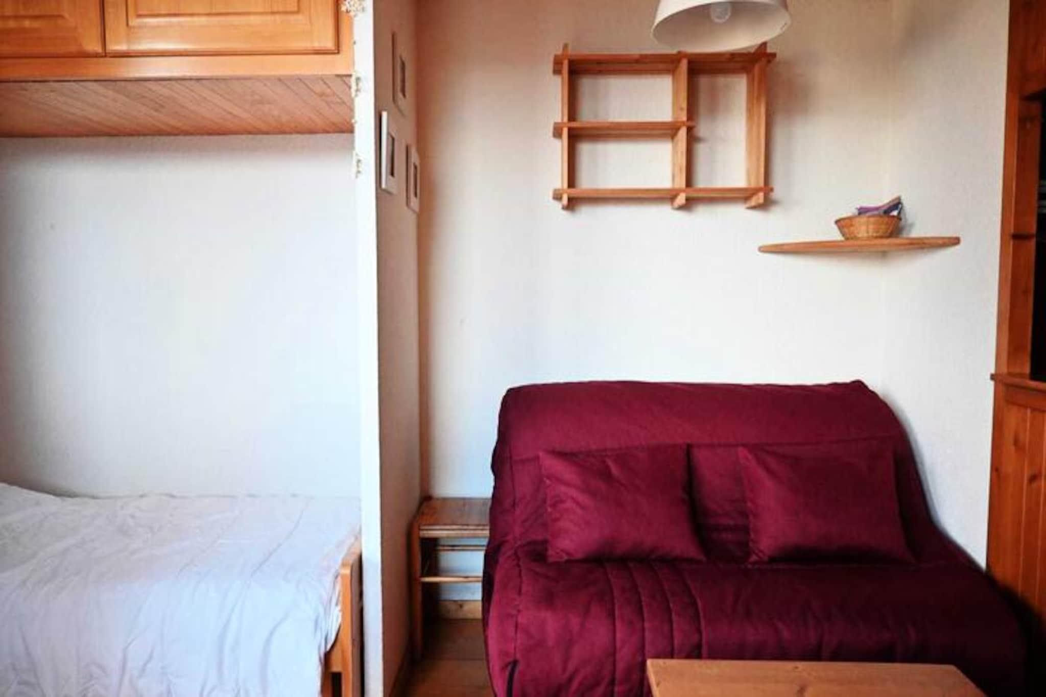 Højt over den charmerende landsby Vallandry tilbyder dette hyggelige studiolejlighed på mezzanin et roligt tilflugtssted med betagende udsigt over de omkringliggende bjerge og det livlige feriestedscentrum. Perfekt placeret, kun 5 minutters gang fra landsbyens centrum, skiskole, pister og skilifter, er det den ideelle base for både vinter- og sommereventyr. Uanset om du er her for at sno dig gennem Paradiskis verdensklassespister eller udforske de frodige alpine stier, sikrer denne bolig, at du altid er tæt på begivenhederne, mens du nyder en fredelig atmosfære. Dette studiolejlighed på 20 m² ligger på 4. sal i Les Michailles-residensen og er omhyggeligt designet til at rumme op til 4 gæster. Opholdsstuen har en komfortabel dobbeltsovesofa, mens mezzaninen tilbyder to enkeltmadrasser på en dobbeltsengbund. En hyggelig sovealkove med en enkeltseng giver fleksibilitet, hvilket gør det til et godt valg for familier eller små grupper. Køkkenet er fuldt udstyret med elektriske komfurer, en miniovn, en opvaskemaskine og et køleskab, så du kan tilberede solide måltider efter en dag med eventyr. Et badeværelse med badekar og et separat toilet bidrager til bekvemmeligheden, mens den nordvendte balkon inviterer dig til at slappe af og nyde den fantastiske udsigt over alperne. Med et skirum til dit udstyr og et tv til hyggelige aftener indendørs kombinerer dette studie praktiskhed med komfort. Boligen ligger også tæt på en shuttlebusstoppested, hvilket gør det nemt at udforske det bredere område. Om sommeren forvandles bjergene til et paradis for vandrere og naturelskere med stier, der fører til panoramaudsigter og skjulte alpine perler. Uanset om du søger spændingen ved pisterne eller roen i bjerglandskaber, lover dette studie i Vallandry en uforglemmelig flugt i hjertet af de franske alper.