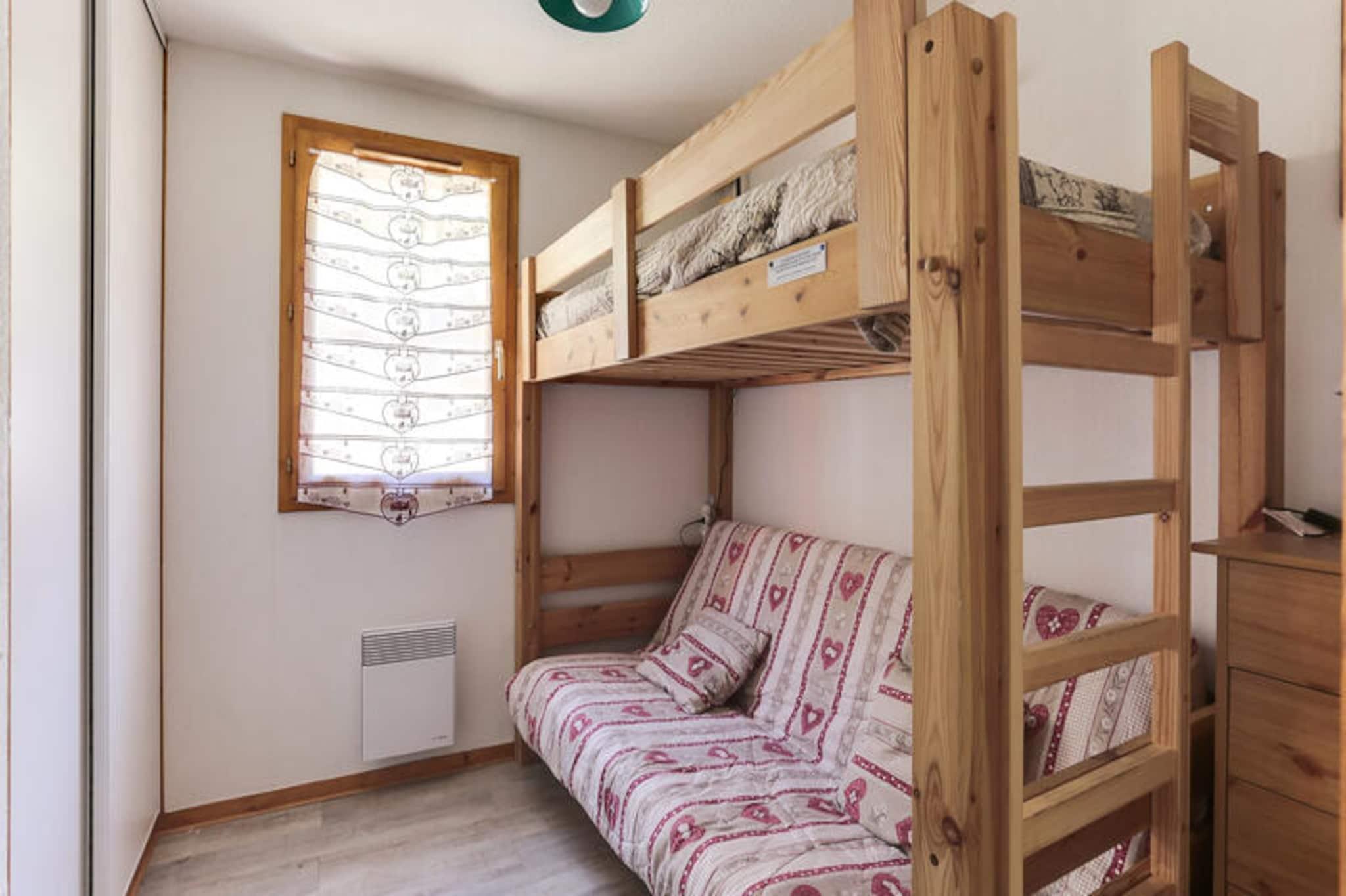 Højt over Tarentaise-dalen, hvor den alpine luft er frisk og forfriskende, inviterer denne charmerende lejlighed i chaletstil dig til at opleve Vallandrys magi. Med sin sydvendte balkon, der tilbyder en fantastisk udsigt over pisterne, er denne bolig et paradis for både vintersportsentusiaster og sommereventyrere. Uanset om du er her for at grave dig gennem uberørt sne eller udforske frodige bjergstier, lover dette rolige tilflugtssted uforglemmelige øjeblikke i hjertet af de franske alper.\n\nIndenfor er den fuldstændig renoverede lejlighed på 50 m² omhyggeligt designet til at rumme op til otte gæster. Det åbne køkken, udstyret med moderne apparater, herunder induktionskogeplade, ovn, mikrobølgeovn og opvaskemaskine, er problemfrit forbundet med den hyggelige opholdsstue. Tre indbydende soveværelser tilbyder fleksible sovearrangementer, mens stuen giver ekstra plads til afslapning. Et badeværelse med badekar og separat toilet sikrer bekvemmelighed for alle. Med gratis Wi-Fi, et tv med flere kanaler og en vaskemaskine er hver eneste detalje tænkt over for din komfort.\n\nLejligheden ligger kun en kort gåtur fra pisterne, skiskolen og de lokale butikker og er ideel til at fordybe sig i den pulserende landsbyatmosfære. Om vinteren kan du nyde direkte adgang til det berømte Paradiski-område, mens sommeren byder på muligheder for vandreture, cykling og dyrelivsobservation i den nærliggende Vanoise Nationalpark. Overdækket parkering gør dit ophold nemmere og gør det nemt at udforske det omkringliggende område.\n\nUanset om du søger spændende alpine eventyr eller fredelige øjeblikke omgivet af natur, tilbyder denne bolig den perfekte blanding af komfort og beliggenhed. Lad Vallandrys skønhed inspirere din næste flugt til bjergene.