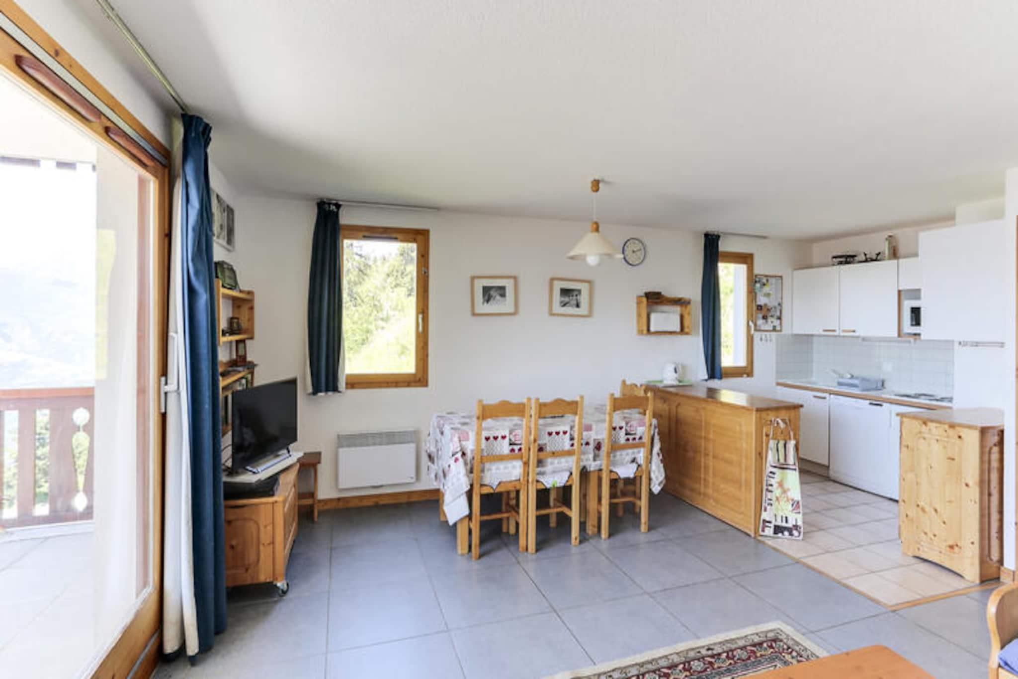 I de franske alpers fredfyldte omfavnelse tilbyder denne charmerende 4-værelses lejlighed i Vallandry et roligt tilflugtssted, kun en kort gåtur fra feriestedets centrum. Forestil dig morgener fyldt med frisk bjergluft, mens du træder ud på din vestvendte terrasse og nyder den betagende udsigt over alperne. Uanset om du er her for spændingen ved skiløb eller den fredelige tiltrækning af sommervandreture, lover denne bolig en perfekt blanding af komfort og bekvemmelighed. Det nærliggende shuttle-stoppested og den fælles parkering gør det nemt at udforske området, mens den rolige beliggenhed sikrer afslappende aftener efter dages eventyr. Denne smukt indrettede lejlighed er 75 m² stor og har plads til op til otte gæster, hvilket gør den ideel til familier eller vennegrupper. Stueetagen har et hyggeligt soveværelse med en dobbeltseng, mens du ovenpå finder en alsidig soveplads med enkeltsenge med udtræksseng, køjesenge og to ekstra enkeltsenge. Bemærk venligst, at den øverste køje ikke er egnet til børn under seks år. Lejligheden kan prale af et fuldt udstyret køkken med elektrisk komfur, opvaskemaskine, mikrobølgeovn, ovn og køleskab med fryser, der problemfrit åbner ind i den indbydende stue. Moderne faciliteter såsom fjernsyn, dvd-afspiller, stereoanlæg og vaskemaskine sikrer et behageligt ophold. Vallandrys charme ligger ikke kun i de maleriske omgivelser, men også i nærheden af ??vigtige faciliteter. Resortets centrum, skiskole og skilifter ligger alle inden for 10 minutters gang, mens Paradiski-området tilbyder skiløbsmuligheder i verdensklasse. Om sommeren forvandles regionen til et paradis for vandrere og naturelskere med stier, der snor sig gennem frodige landskaber og tilbyder fantastiske udsigter. Denne ikke-ryger lejlighed, der er tildelt en Paradiski 3 CRYSTALS-vurdering, er et bevis på kvalitet og omhu. Med sit skirum, gennemtænkte faciliteter og fredelige atmosfære er det den perfekte base for at skabe uforglemmelige alpine minder. Uanset om du snor dig gennem frisk puddersne eller udforsker solbeskinnede stier, inviterer denne bolig dig til at opleve bjergenes magi.