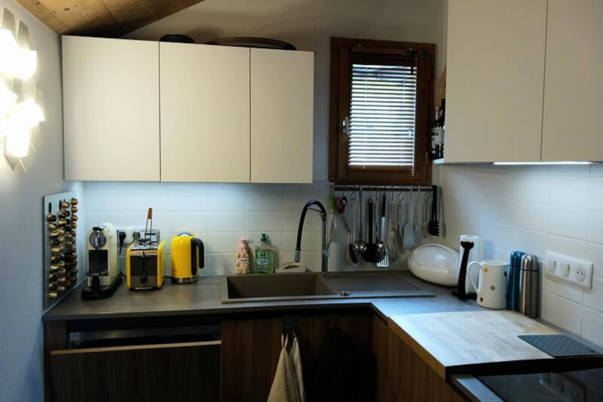 I den fredfyldte alpelandsby Vallandry tilbyder denne charmerende hytte et roligt tilflugtssted med en fantastisk sydvestvendt udsigt over dalen og de majestætiske tinder. Kun 5 minutters gang fra feriestedets centrum, skilifter og pister kombinerer den bekvemmeligheden ved nærhed med fredfyldtheden i et gågadeområde, hvilket sikrer en afslappende og bilfri ferieoplevelse. Uanset om du besøger stedet om vinteren for spændende skieventyr eller om sommeren for at udforske frodige bjergstier, er denne hytte din perfekte base. Med en størrelse på 98 m² kan hytten komfortabelt rumme op til seks gæster, hvilket gør den ideel til familier eller små grupper. Stueetagen har tre hyggelige soveværelser, hver med to enkeltsenge, der sikrer afslappende nætter efter aktive dage. Det fuldt udstyrede køkken inkluderer moderne apparater såsom induktionskogeplader, mikrobølgeovn, opvaskemaskine og Nespresso-maskine, så du nemt kan tilberede lækre måltider. Den indbydende opholdsstue med brændeovn og tv er perfekt til afslapning, mens Wi-Fi-adgang holder dig forbundet. To badeværelser med brusere og to separate toiletter bidrager til bekvemmeligheden. Gå ud på den sydvestvendte terrasse for at nyde den betagende bjergudsigt eller nyd en stille stund omgivet af naturen. Chaleten har også et skirum til dit udstyr. I nærheden finder du butikker, restauranter og en skiskole, alt sammen inden for gåafstand. Om sommeren forvandles området til et paradis for vandrere og naturelskere med stier, der snor sig gennem den maleriske Tarentaise-dal. Med sin blanding af komfort, beliggenhed og spektakulære udsigter lover denne chalet en uforglemmelig alpin ferie. Uanset om du jagter pudrede pister eller solrige bjergeventyr, venter Vallandry på at skabe dyrebare minder.