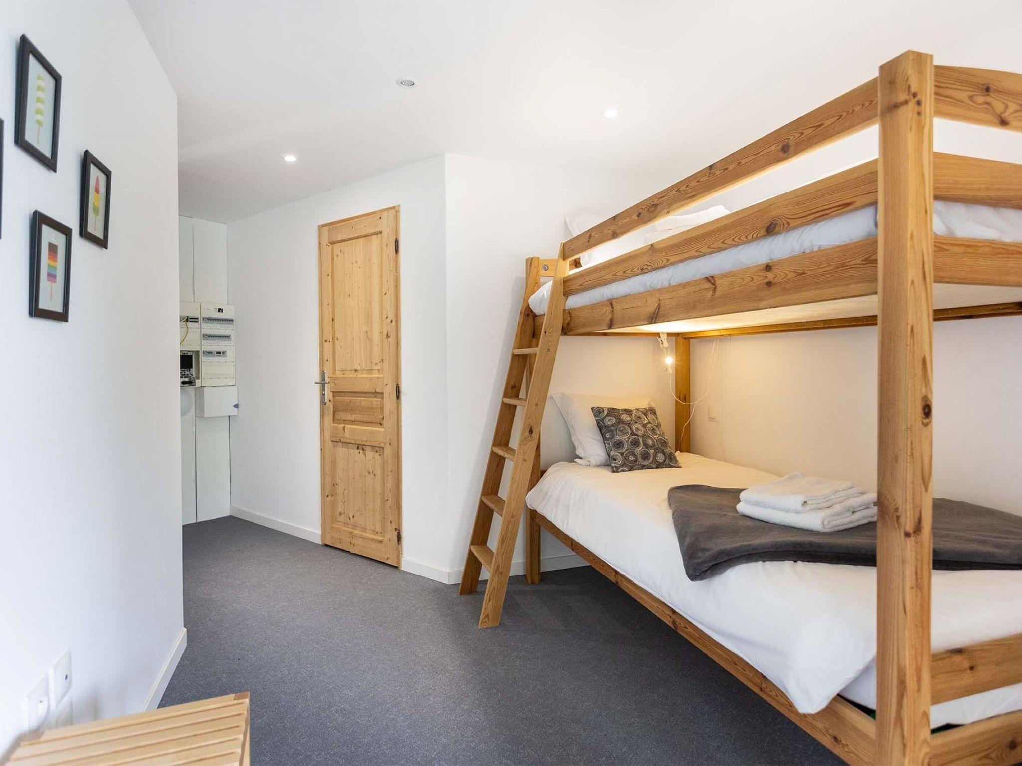 "Aiguille Rouge", 7-room apartment 160 m2 on 3 levels. Spacious, comfortable furnishings: large living/dining room 53 m2 with 1 double sofabed and TV (flat screen). Exit to the terrace. Kitchen (oven, dishwasher, toaster, microwave, freezer, electric coffee machine, Capsules for coffee machine (Nespresso)). Upper floor: 4 rooms, each room with 1 french bed (1 x 160 cm, length 200 cm), shower/WC. 2nd upper floor: 2 rooms, each room with 1 x 1 bunk beds (90 cm, length 200 cm). Terrace. View of the mountains. Facilities: washing machine, dryer, iron, hair dryer. Internet (WiFi, free). Parking.