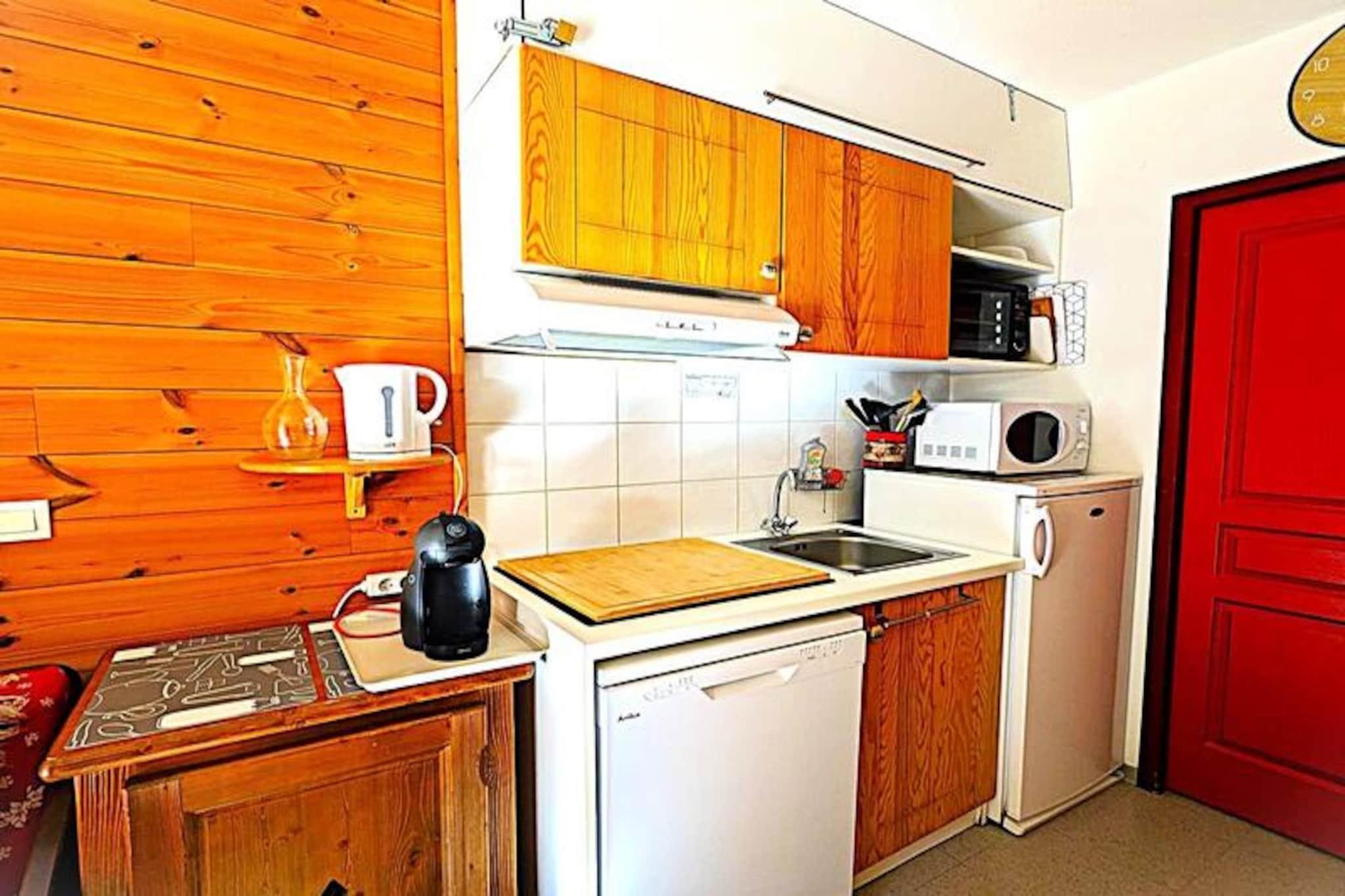 Højt over dalbunden, hvor toppene af Écrins Nationalpark rejser sig i majestætisk pragt, tilbyder denne charmerende lejlighed et hyggeligt alpint tilflugtssted for familier og venner. Fra din private balkon kan du nyde den storslåede udsigt over snedækkede bjerge, der lokker eventyrere til året rundt. Uanset om du er her for spændende vintersport eller sommervandreture gennem uberørte stier, placerer denne ejendom dig i hjertet af naturens storhed. \n\nIndvendigt er lejligheden omhyggeligt designet til at rumme op til seks gæster. Indgangen fører til en sovealkove med to køjesenge, perfekt til børn eller venner. Et separat toilet og et badeværelse med badekar sikrer bekvemmelighed for alle. Det åbne køkken og opholdsstue med to enkeltsenge og direkte adgang til balkonen skaber et indbydende rum at slappe af efter en dag udendørs. Dobbeltværelset med indbyggede skabe tilføjer et strejf af komfort og praktisk anvendelighed, mens skiboksen holder dit udstyr klar til det næste eventyr. \n\nDenne bolig ligger kun 200 meter fra pisterne og er ideel for skientusiaster. Restauranter, butikker og shuttle-stoppesteder er alle inden for rækkevidde, hvilket gør det nemt at udforske nærliggende landsbyer og feriesteder. Om sommeren forvandles regionen til et paradis for vandrere, mountainbikere og paraglidere, med stier, der fører til Glacier Blanc og Noir, Lac de l'Eychauda og videre. \n\nUanset om du snor dig gennem frisk puddersne eller udforsker kulturarven i Écrins Nationalpark, tilbyder denne lejlighed en perfekt base for uforglemmelige alpine oplevelser. Kom og fordyb dig i roen og eventyret i Pelvoux-feriestedet.
