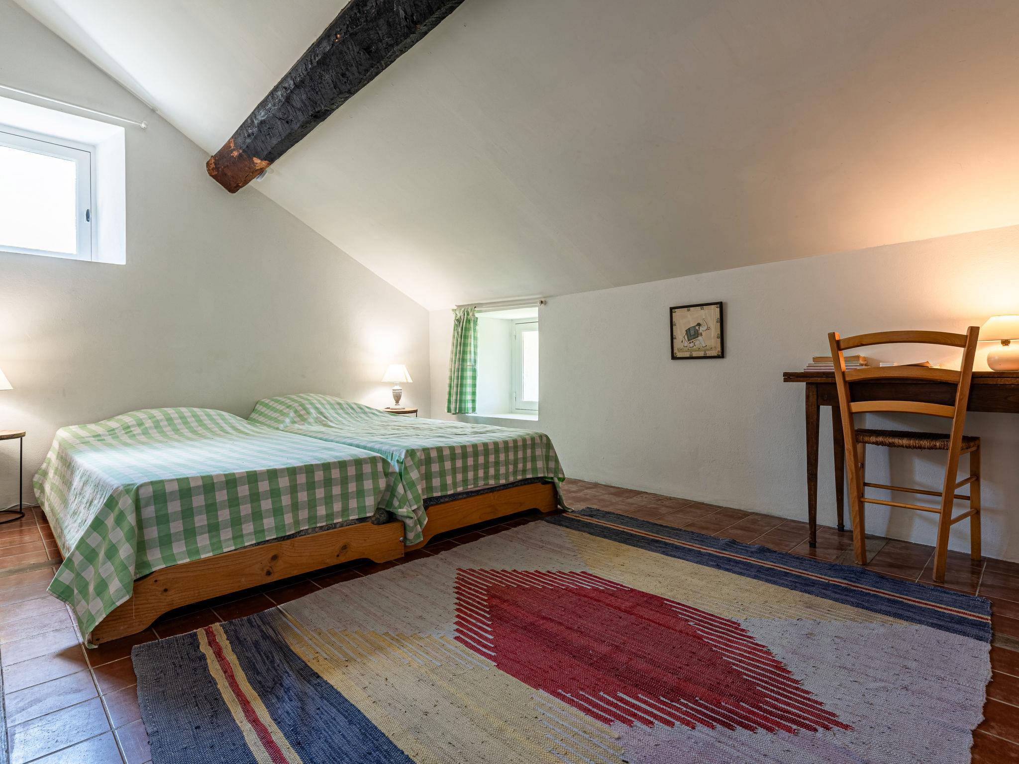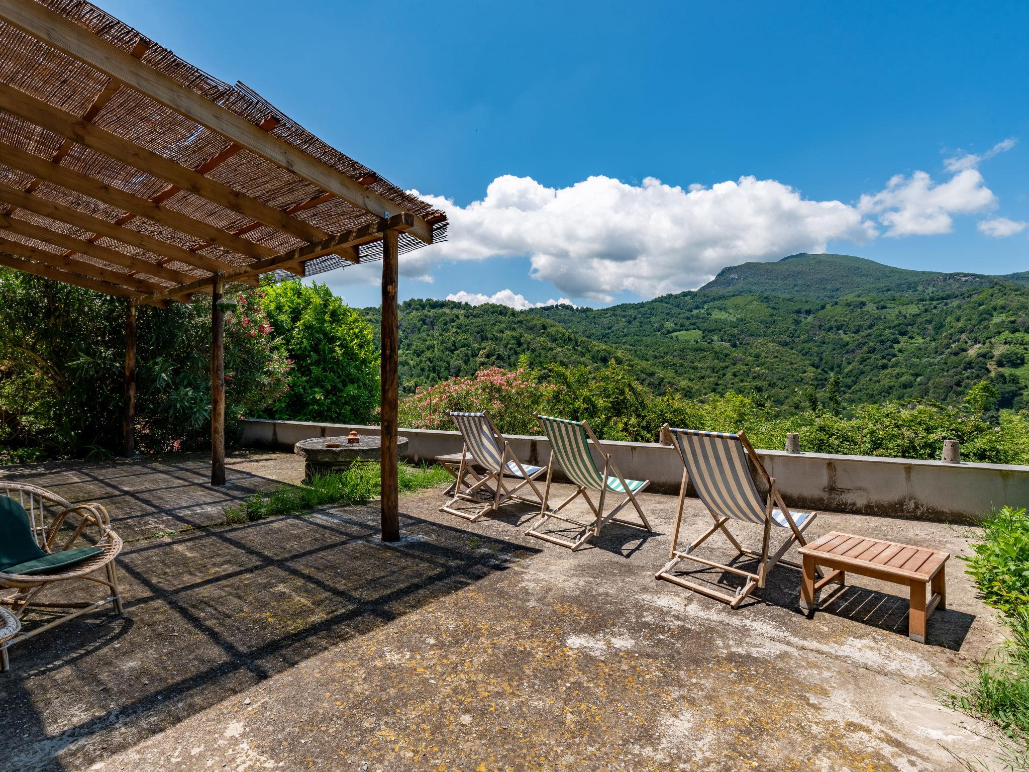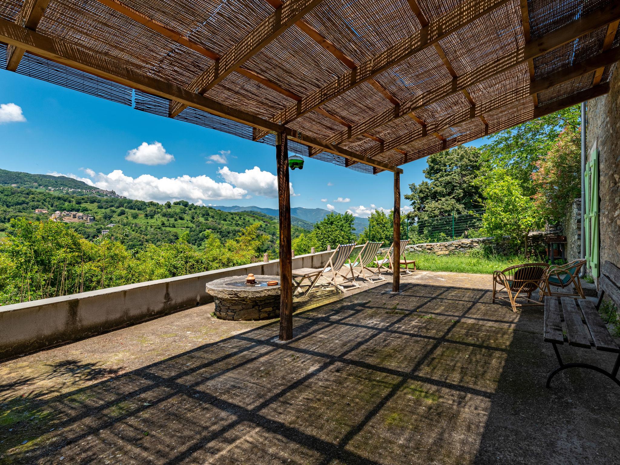 "Maison Penta", 5-room house 90 m2 on 3 levels. Bright, comfortable and rustic furnishings: living/dining room with dining table. Exit to the terrace. Open kitchen (oven, dishwasher, toaster, kettle, microwave, electric coffee machine). Air-conditioning. Upper floor: (exterior staircase). 1 room with 1 french bed (160 cm, length 200 cm). 1 room with 2 beds (90 cm, length 190 cm). Bath/WC. Heating, air-conditioning. 2nd upper floor: with sloping ceilings, 3 rooms, each room with 2 beds (90 cm, length 190 cm). Shower/WC. Heating, air-conditioning. Terrace 50 m2 partly roofed. Terrace furniture, sitting area. Very beautiful view of the mountains, the valley and the countryside. Facilities: washing machine. Internet (WiFi). Please note: suitable for families. Non-smokers only. Smoke alarm. Offer by a private individual according to Art. 155, IV of CGI.