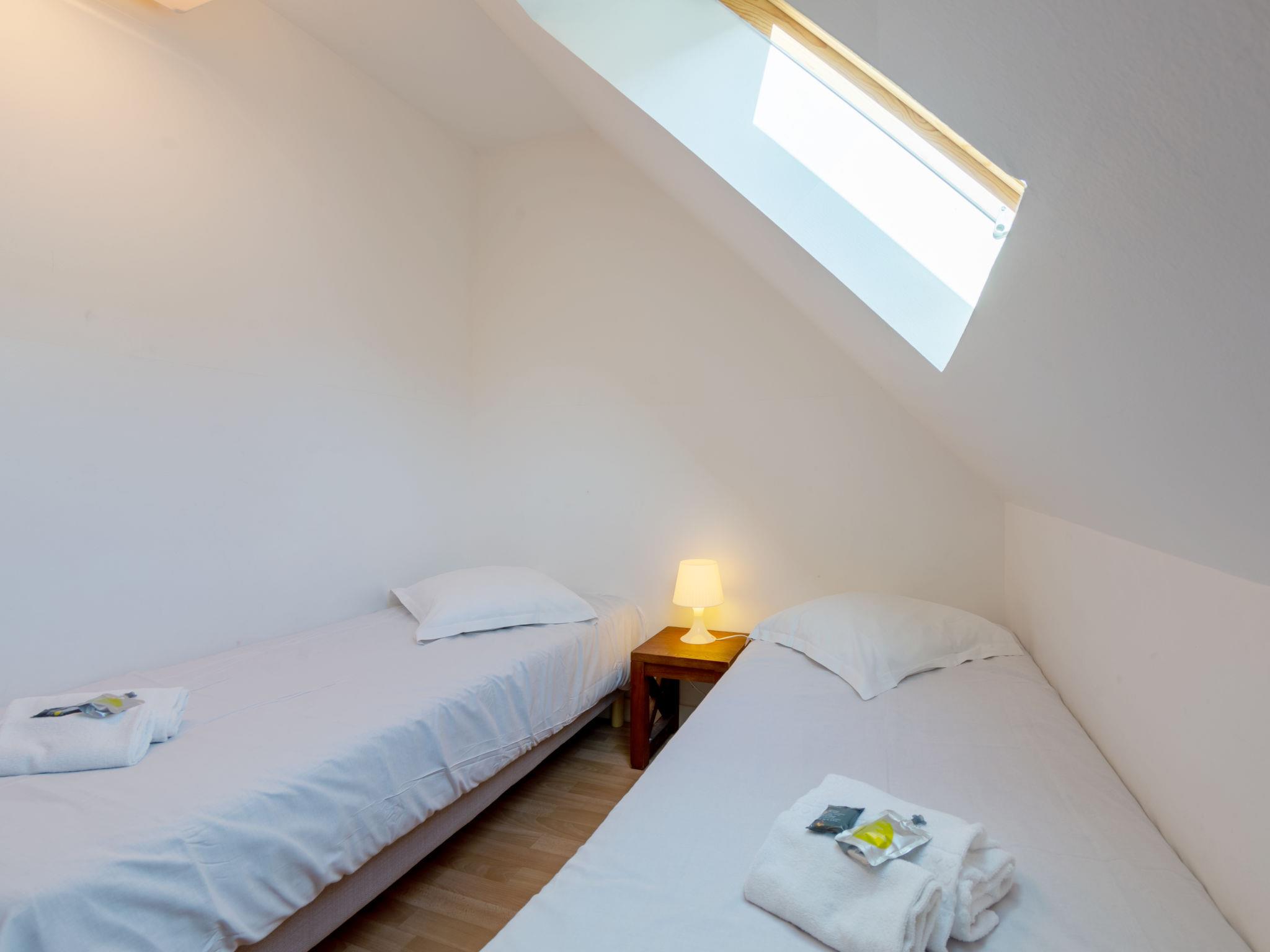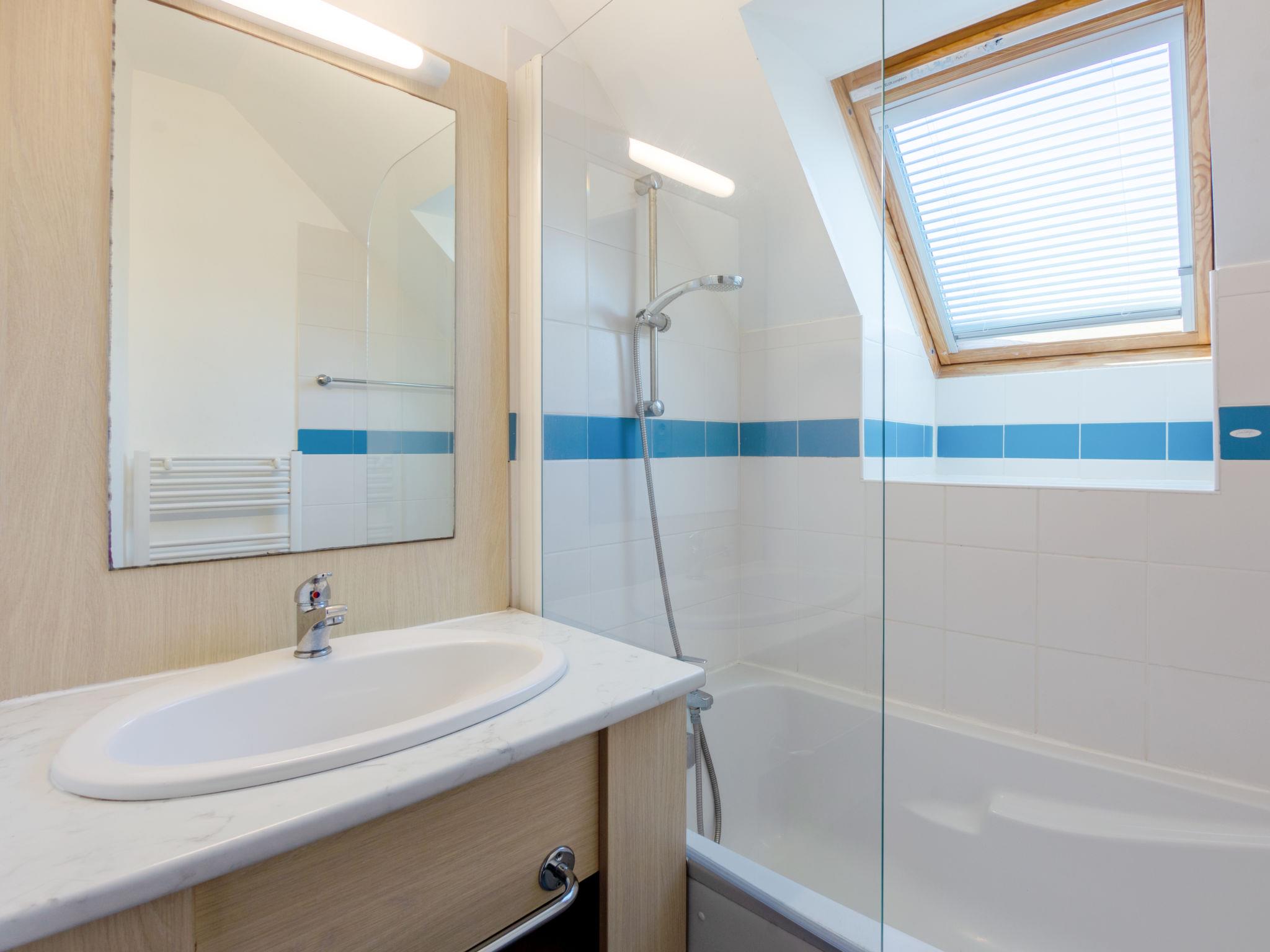 Resort "Les Terrasses". 36 houses in the residence. 50 apartments in the residence. 500 m from the centre of Pentrez-Plage, 1 km from the centre of Saint Nic, 20 km from the centre of Douarnenez, in an elevated position, 500 m from the sea. For shared use: property (fenced) with lawn, swimming pool heated, secured (14 x 6 m, depth 100 - 150 cm, seasonal availability: 15.Apr. - 01.Nov.). Terrace. In the complex: reception, internet access, WiFi (extra). Washing machine, tumble dryer (for shared use, extra). Bread roll service. Shop 1 km, supermarket 5 km, bakery 1 km, sandy beach 500 m. Please note: residence with electric gates. The photograph shows a typical example. The holiday properties may differ in living space, floorplan, equipment and furnishing.