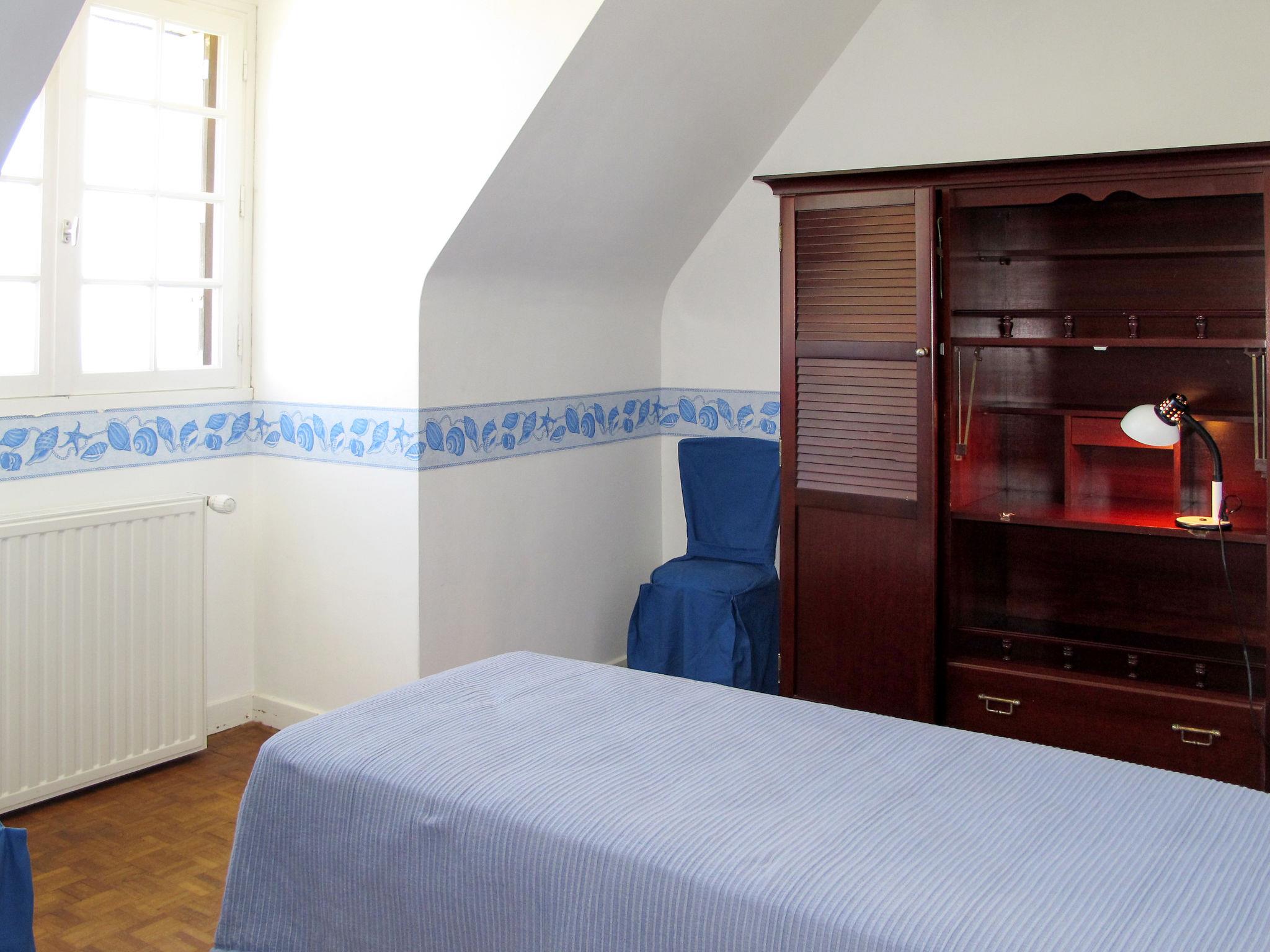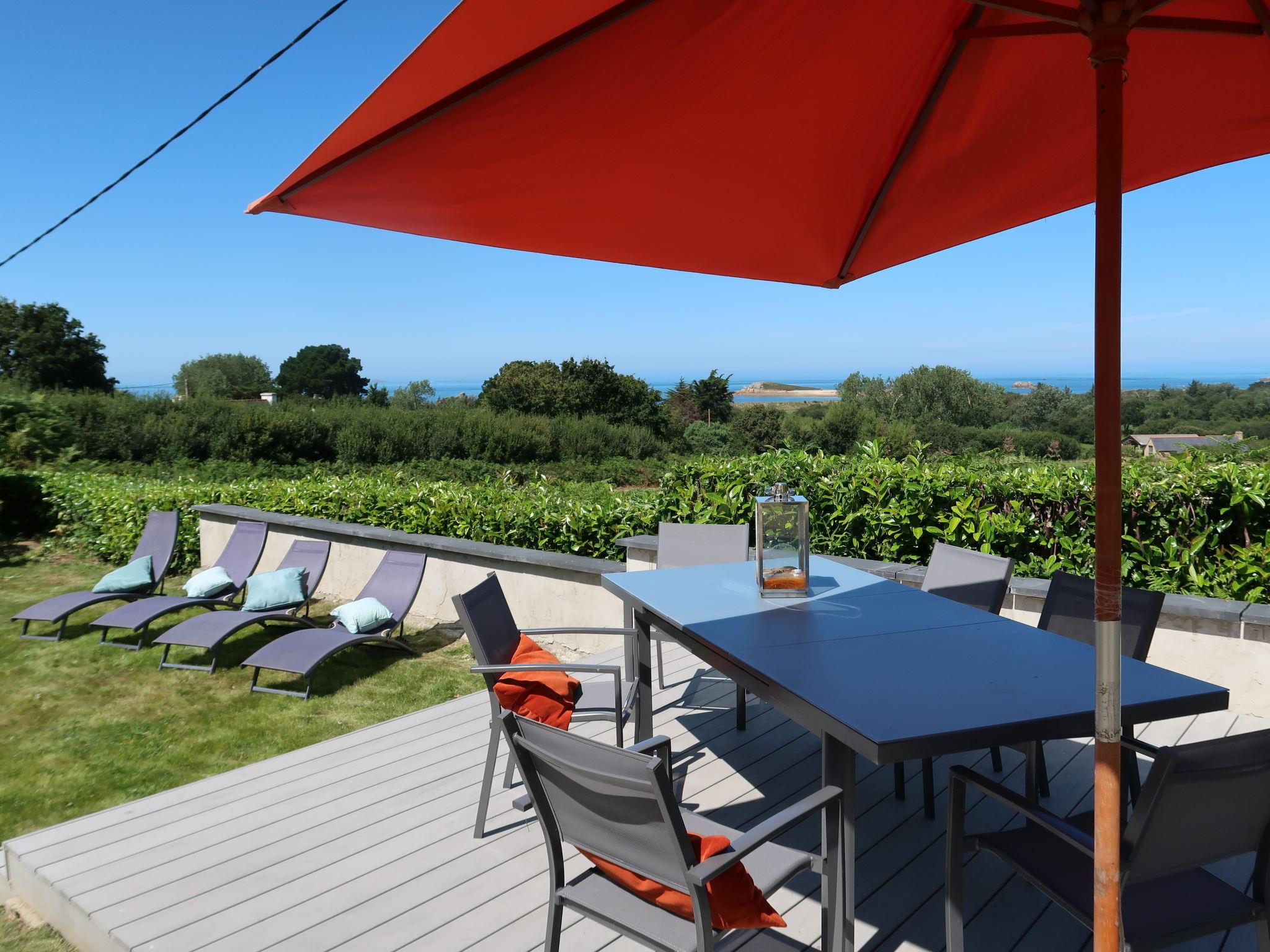 "La Rotonde", 6-room house 200 m2 on 2 levels. Beautiful and cosy furnishings: living/dining room with veranda with open-hearth fireplace, dining table and satellite TV. Exit to the veranda. 1 room with 1 french bed (140 cm). Kitchen (oven, dishwasher, 4 ceramic glass hob hotplates, toaster, kettle, microwave, freezer, electric coffee machine) with small dining table. Bathroom, sep. WC. Upper floor: 1 room with sloping ceilings with 1 french bed (160 cm, length 190 cm). 1 room with sloping ceilings with 1 french bed (140 cm). 1 room with sloping ceilings with 1 bed. 1 room with sloping ceilings with 1 bed (120 cm). Shower/WC. Oil heating. Terrace 16 m2, terrace 12 m2. Terrace furniture, barbecue (portable), deck chairs (8). Marvellous view of the sea. Facilities: washing machine, children's high chair, baby cot, hair dryer. Internet (WiFi, free). Please note: non-smoking house. Smoke alarm.