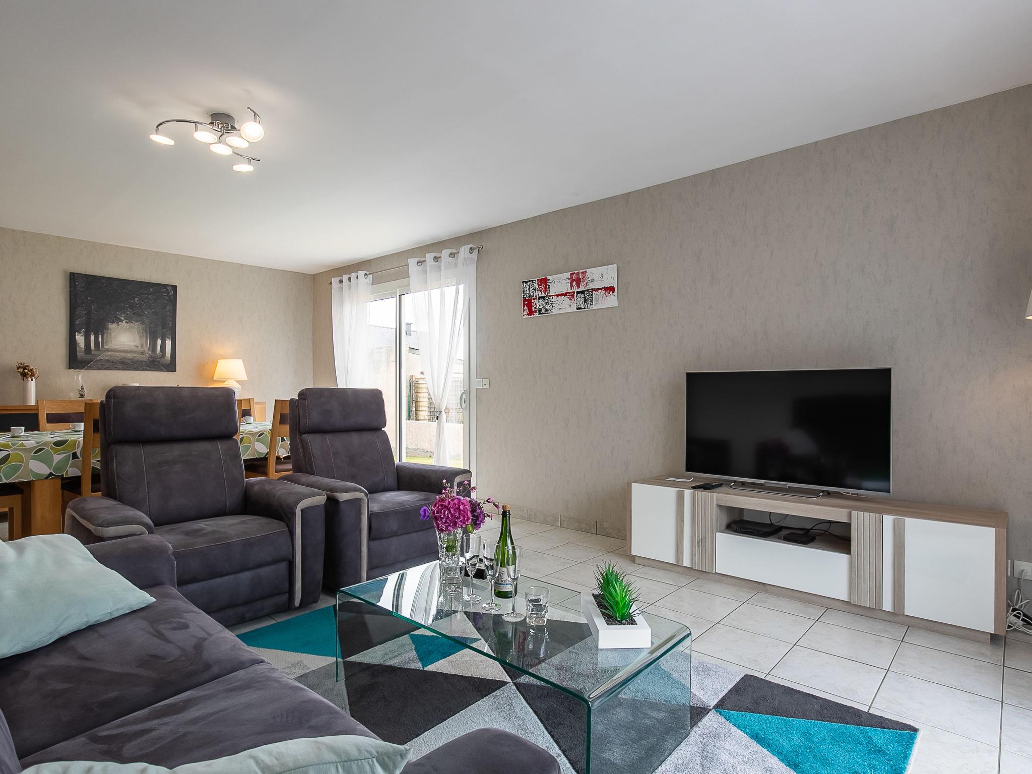 "Les Camélias", 4-room house 126 m2 on 2 levels. Renovated in 2018, beautiful and cosy furnishings: living/dining room with dining table and TV (flat screen), radio. Exit to the terrace. 1 room with 1 french bed (160 cm, length 190 cm). Open kitchen (oven, dishwasher, 4 gas rings, toaster, kettle, freezer, electric coffee machine) with dining table. Exit to the terrace. Shower, sep. WC. Top floor: 1 room with sloping ceilings with rooflight with 1 french bed (160 cm, length 200 cm). 1 room with sloping ceilings with rooflight with 3 beds (90 cm, length 200 cm). Shower, sep. WC, double hand-basin. Gas heating. Terrace, south-west facing position. Terrace furniture, barbecue (portable), deck chairs (2), box-room. Facilities: washing machine, dryer, children's high chair, baby cot, hair dryer. Internet (WiFi, free). Please note: non-smoking house. Smoke alarm.