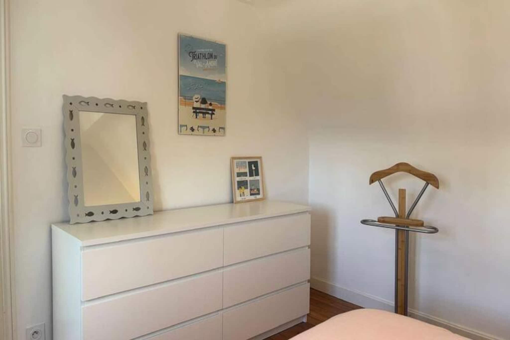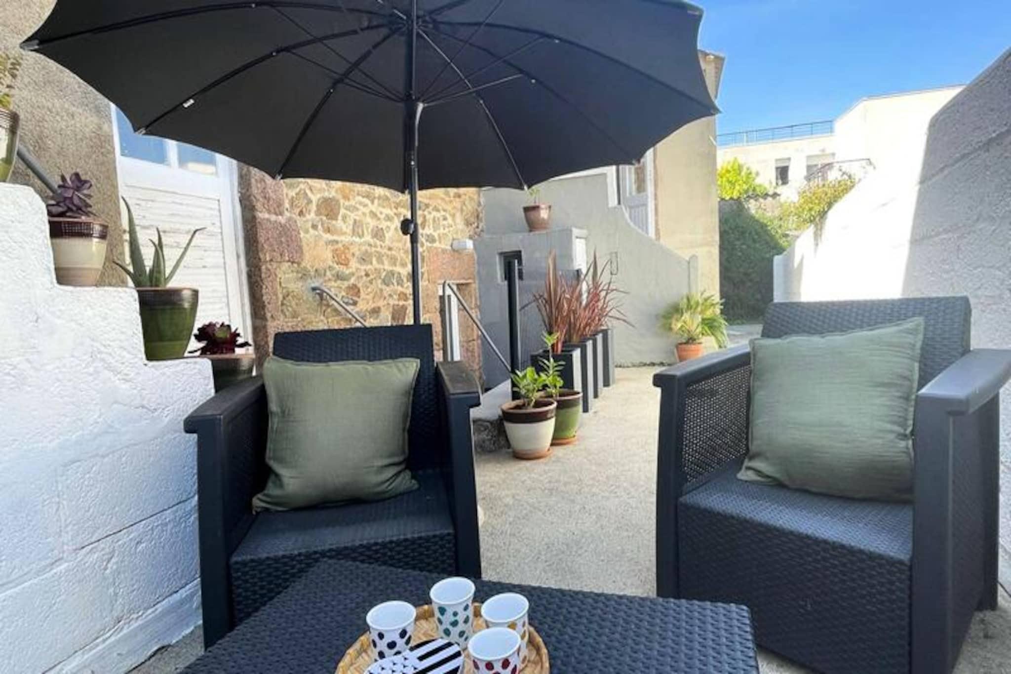 En skjult perle i hjertet af Perros-Guirec, dette charmerende hus inviterer dig til at opleve den fredfyldte skønhed ved Bretagnes rosa granitkyst. Beliggende på en stille gade, tilbyder ejendommen et fredeligt tilflugtssted, kun få skridt fra lokale butikker og en kort 10-minutters gåtur fra den gyldne sandstrand på Trestraou-stranden. Forestil dig at vågne op til den blide lyd af havfugle og nyde din morgenkaffe på den solrige terrasse, før du tager ud for at udforske kystens vidundere. Dette hjem er perfekt til dem, der søger en blanding af ro og bekvemmelighed. \n\nMed 80 m² gennemtænkt designet plads, kan huset komfortabelt rumme op til fire gæster. Stueetagen har en hyggelig stue, der problemfrit forbinder med spiseområdet, et fuldt udstyret køkken og et vaskerum for ekstra bekvemmelighed. Ovenpå finder du to indbydende soveværelser: et med en blød dobbeltseng og et andet med to enkeltsenge, ideelt til familier eller små grupper. Moderne bekvemmeligheder såsom Wi-Fi, tv og en Nespresso-maskine sikrer et behageligt ophold, mens den solrige terrasse og havemøblerne giver de perfekte rammer til spisning under åben himmel eller afslapning med en god bog. \n\nHuset ligger nær den betagende Côte de Granit Rosa og er en port til endeløse eventyr. Uanset om du er tiltrukket af vandsport, naturskønne kyststier eller den pulserende lokale restaurantscene, er alt inden for rækkevidde. Udforsk nærliggende attraktioner som kasinoet og thalassoterapicentret, eller slap blot af på de uberørte strande, der gør denne region så speciel. \n\nDette dejlige hjem tilbyder den perfekte balance mellem afslapning og udforskning, hvilket gør det til et ideelt valg til din næste ferie. Lad charmen ved Perros-Guirec og skønheden i Bretagne skabe uforglemmelige minder for dig og dine kære.