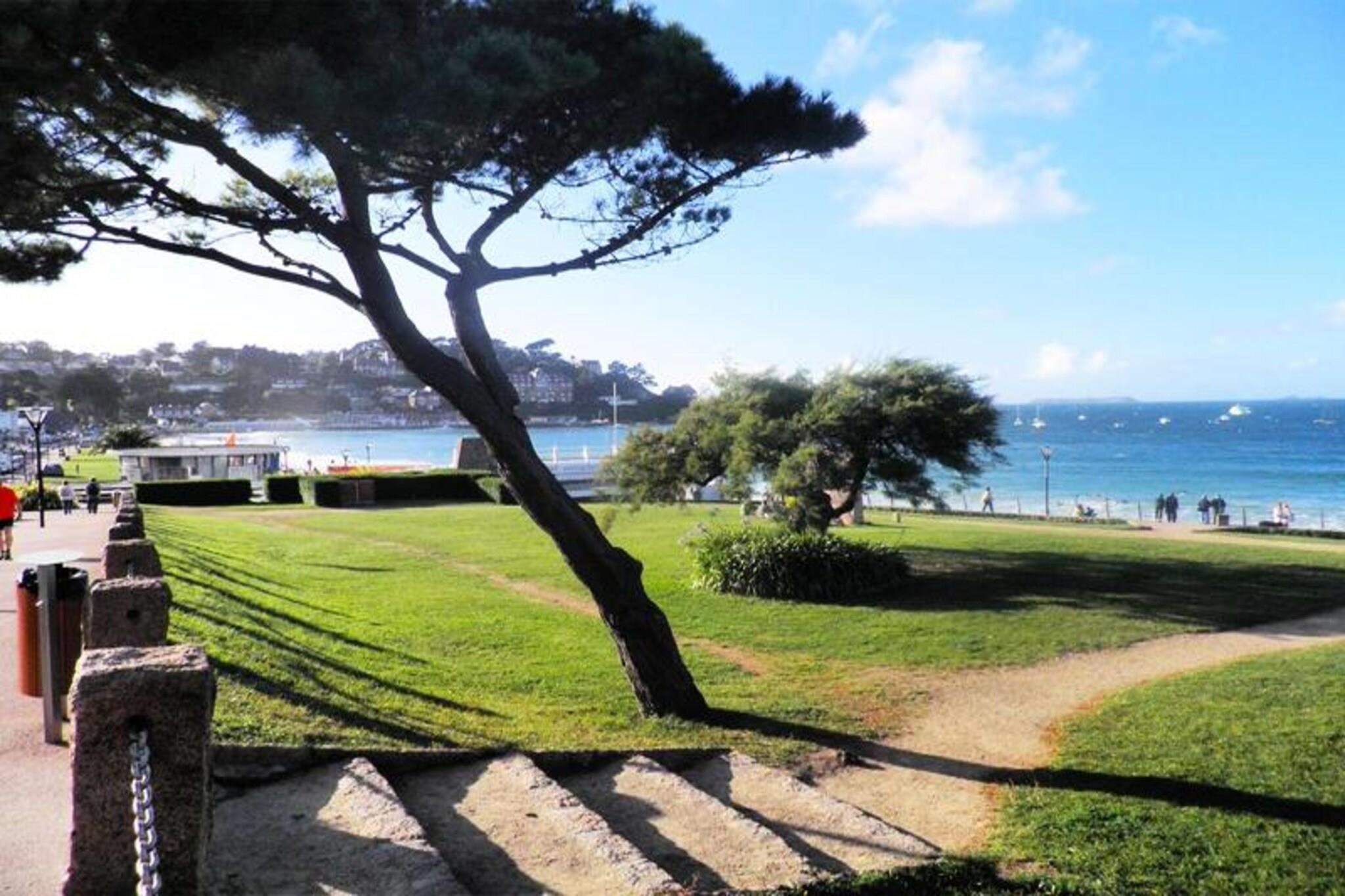 I den charmerende kystby Perros-Guirec tilbyder dette dejlige etplanshus et roligt tilflugtssted, kun 800 meter fra den gyldne sandstrand på Trestraou-stranden. Omgivet af Bretagnes naturlige skønhed inviterer denne ejendom dig til at slappe af og fordybe dig i regionens rige kulturarv og betagende landskaber. Uanset om du slentrer langs den nærliggende GR34-kyststi eller udforsker den fortryllende Sept-Îles-øgruppe, føles hvert øjeblik her som et skridt ind i postkort-perfekte omgivelser. Indenfor er det 70 m² store hjem omhyggeligt designet til komfort og bekvemmelighed. Den lyse stue og spisestue skaber et indbydende rum til afslapning, mens det fuldt udstyrede køkken gør madlavning til en leg. To hyggelige soveværelser, et med en dobbeltseng og det andet med to enkeltsenge, sikrer afslappende nætter for op til fire gæster. Det moderne brusebadeværelse med bruseniche og håndklædetørrer tilføjer et strejf af luksus. Udenfor er den private terrasse og haven perfekte til udendørs spisning, komplet med havemøbler, parasol og grill. Yderligere faciliteter inkluderer Wi-Fi, et fjernsyn, en vaskemaskine og privat parkering. Ud over ejendommen tilbyder Perros-Guirec et væld af attraktioner. Beundre de historiske villaer, der ligger langs strandene, eller tag en tur til Ploumanac’h, der er kendt for sine lyserøde granitklipper. Bymidten, kun 1,5 km væk, er fyldt med butikker, restauranter og bretonsk charme. Uanset om du søger kysteventyr, kulturelle opdagelser eller blot en fredelig ferie, er dette hus den ideelle base for en uforglemmelig ferie i Bretagne.