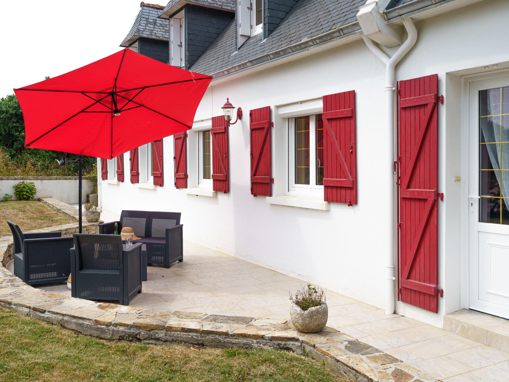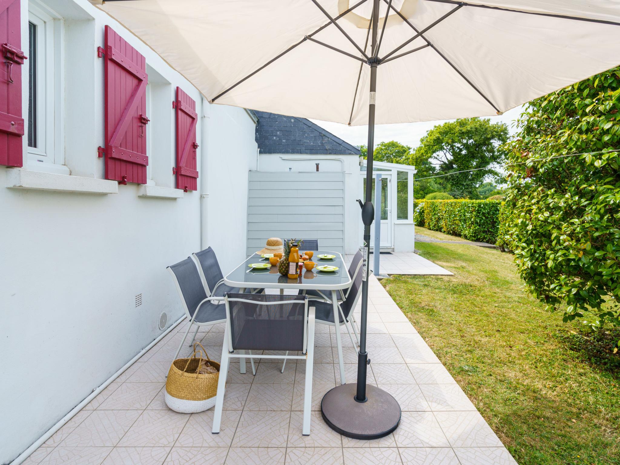 Beautiful, cosy single-family house "Les Volets Rouges", surrounded by meadows and fields. In the hamlet Derles 3 km from the centre of Peumerit, 5 km from the centre of Plonéour-Lanvern, 12 km from the centre of Pont-l'Abbé, 5.6 km from the sea. Private: property 3'700 m2 (fenced), beautiful garden to relax. Storeroom available. Parking (for 2 cars) on the premises. Supermarket 5 km, restaurant 1.2 km, bakery 5 km, bus stop 3 km, sandy beach 5.6 km, indoor swimming pool 12 km. Surf school 9 km. Nearby attractions: Baie d'Audierne 9 km.