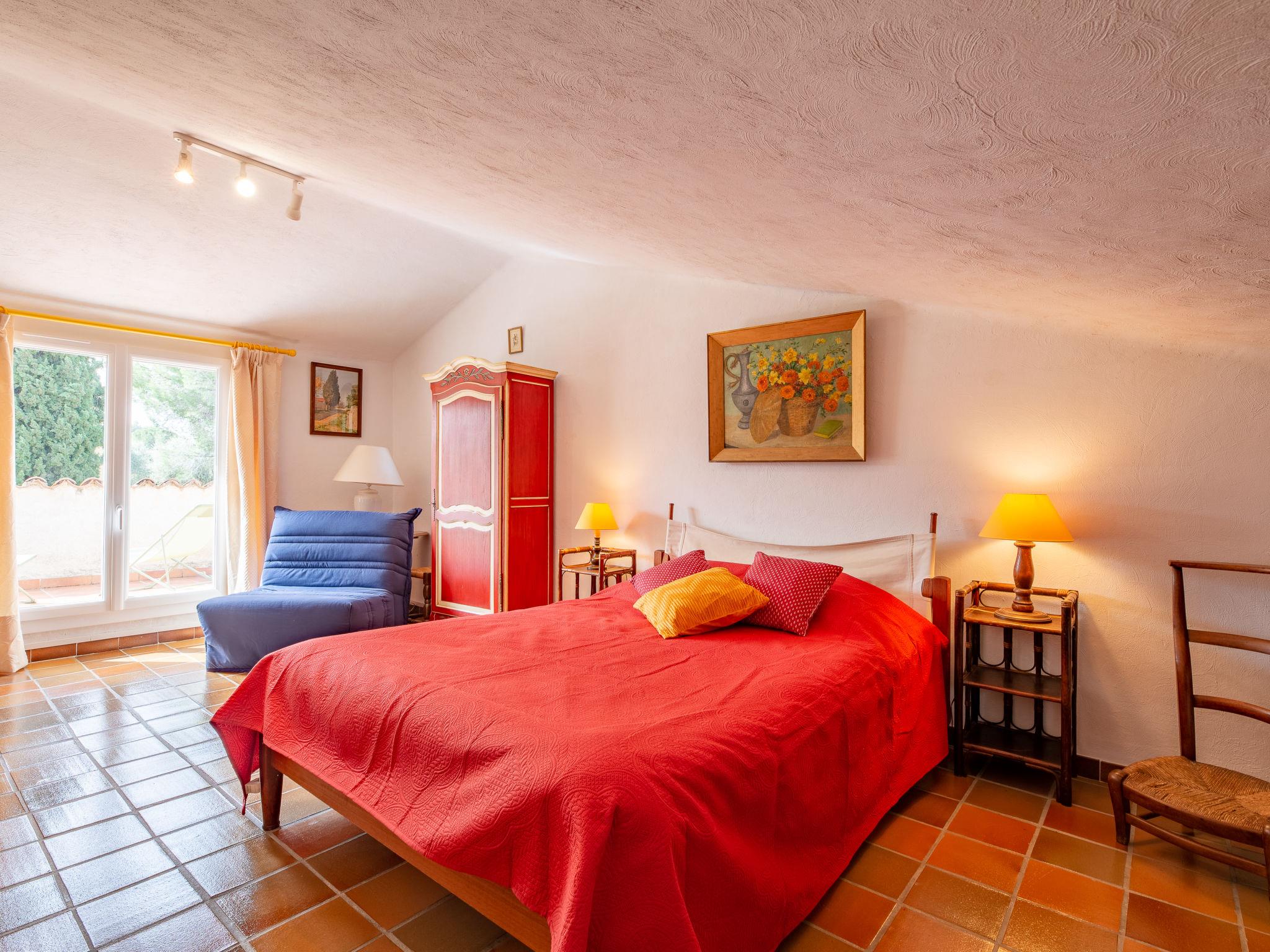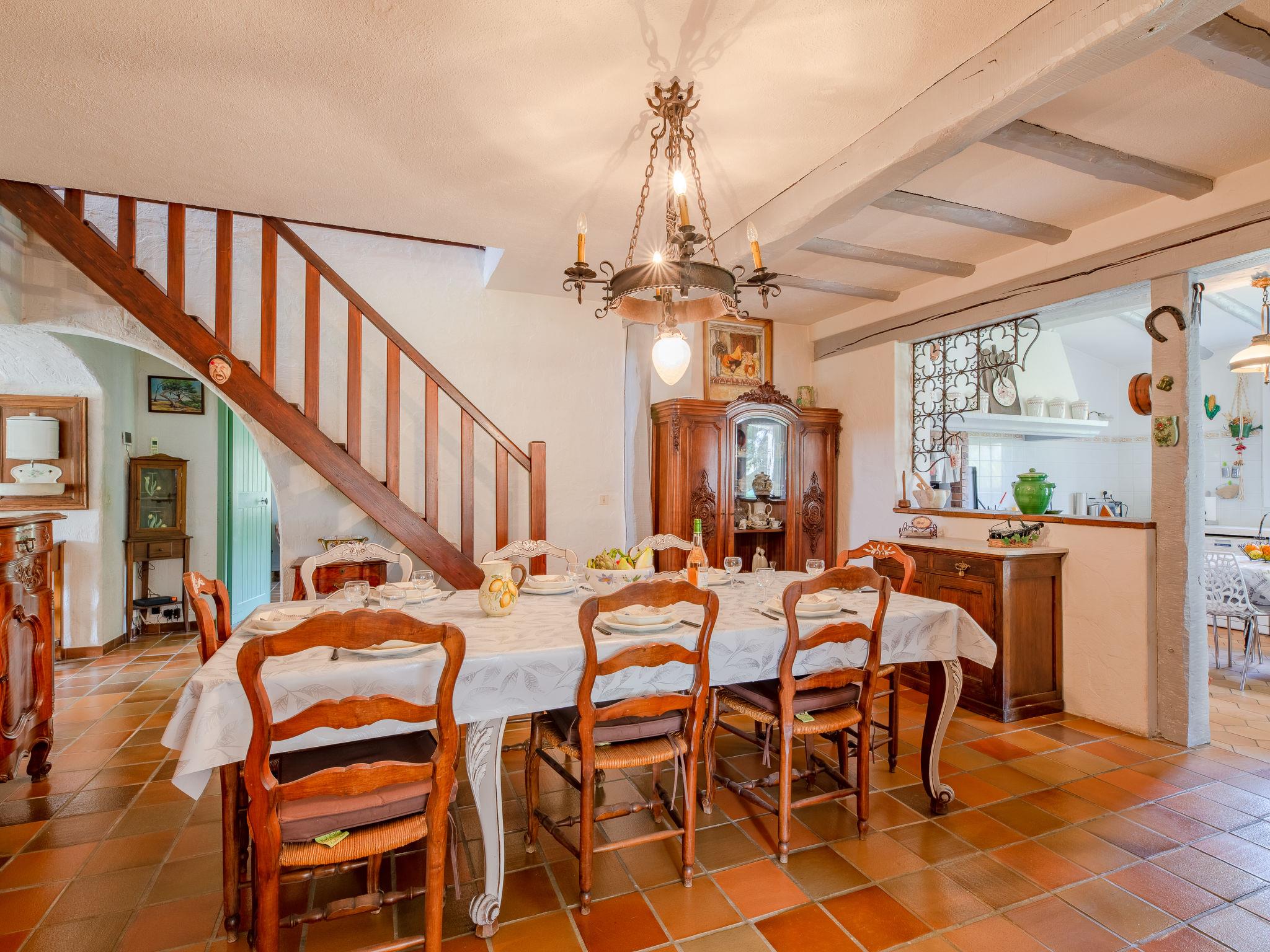 "La Palombière", 5-room house 145 m2. Romantic furnishings: living room with open-hearth fireplace (only for decoration). Exit to the garden. Living/dining room with TV and flat screen. 1 room with 1 french bed (160 cm, length 200 cm), fan and electric shutters. 1 room with 2 beds (80 cm, length 200 cm), TV, flat screen, fan and electric shutters. Open kitchen in the entrance (1 hot plate, oven, dishwasher, 3 gas rings, toaster, kettle, microwave, electric coffee machine). Exit to the terrace. Bath/WC, shower/WC. Upper floor: 1 room with 1 french bed (140 cm, length 190 cm), fan and electric shutters. Exit to the balcony. 1 room with 1 french bed (140 cm, length 190 cm), fan and electric shutters. Sep. WC. Gas heating. Large terrace 30 m2 partly roofed, south-east facing position. Terrace furniture, barbecue electric barbecue, deck chairs (8). Beautiful panoramic view of the countryside. Facilities: washing machine, mosquito net. Internet (WiFi). Please note: suitable for families. Non-smoking house. Maximum 1 pet/ dog allowed. Smoke alarm. Offer by a private individual according to Art. 155, IV of CGI. FR69662