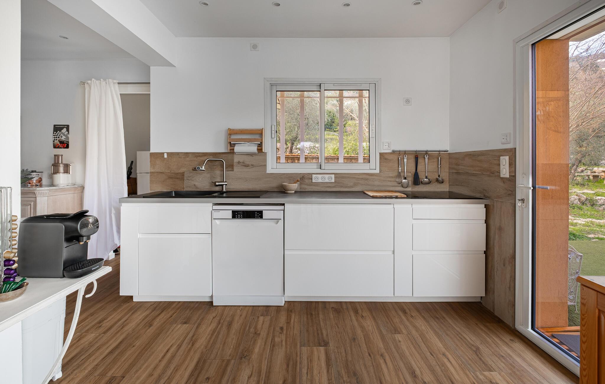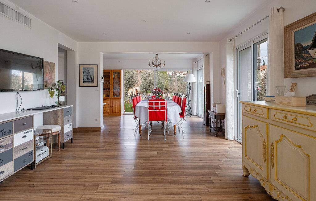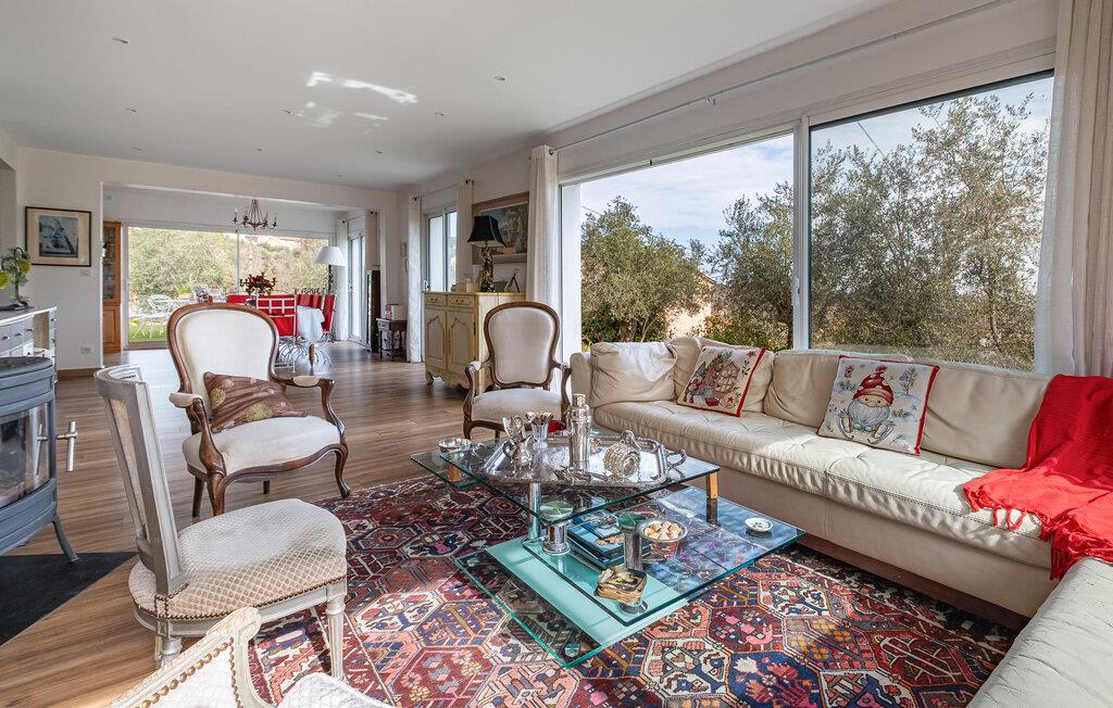 Lad jer inspirere af den elegante og lyse stemning i dette stilfulde feriehus, hvor I også vil Finde jer godt til rette med en større familie eller gruppe af venner. Fremtryl lækre retter i det åbne køkken og fejr dagens måltider sammen ved det lange spisebord. Find jer godt til rette i den elegante opholdsstue og nyd gode samtaler med et glas vin.