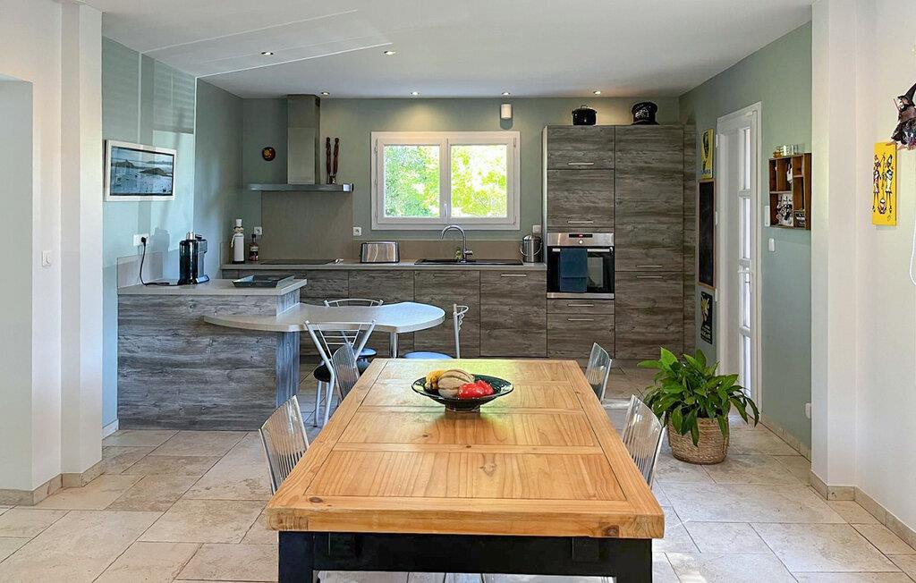 Denne ferieoase ligger på idyllisk grund og byder jer velkommen med en positiv atmosfære, hvor I nemt kan lægge hverdagen bag jer med jeres kære. Tryll lækre måltider frem sammen i det rummelige køkken, brug det indbydende spisebord til afslappede måltider og sjove spilleaftener og reflekter over en lang dag med et glas vin.