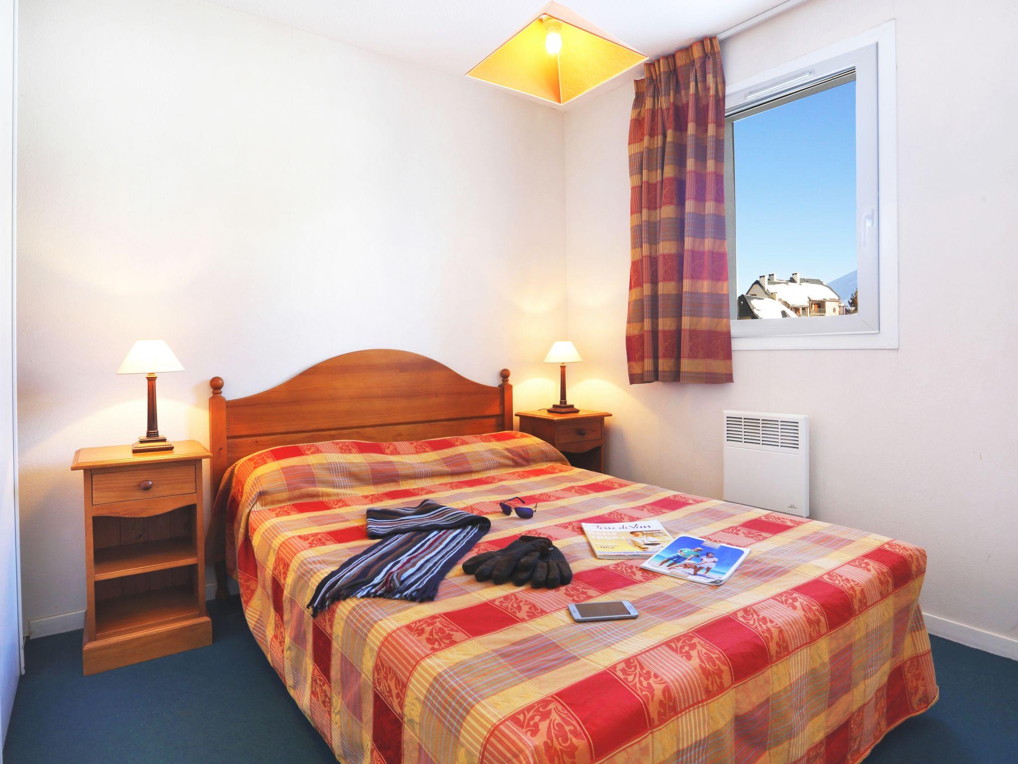 "Le Royal Peyragudes", 2-room apartment 36 m2. Living/sleeping room with 2 pull-out beds (2 x 80 cm, length 190 cm), dining table and TV can be hired (flat screen). Exit to the balcony. 1 room with 1 french bed (140 cm, length 190 cm). Alcove with 1 x 2 bunk beds (80 cm, length 190 cm). Kitchenette (dishwasher, 2 ceramic glass hob hotplates, toaster, microwave, electric coffee machine). Bathroom, sep. WC. Electric heating. Small balcony. Balcony furniture. Facilities: iron, children's high chair (extra). Internet (WiFi, extra). Please note: non-smokers only. Maximum 1 pet/ dog allowed. Smoke alarm. The property is one of a type of property or apartment. Instead of an enclosed bedroom, some sleeping areas are located in an open-plan area (gallery, alcove, etc.).
