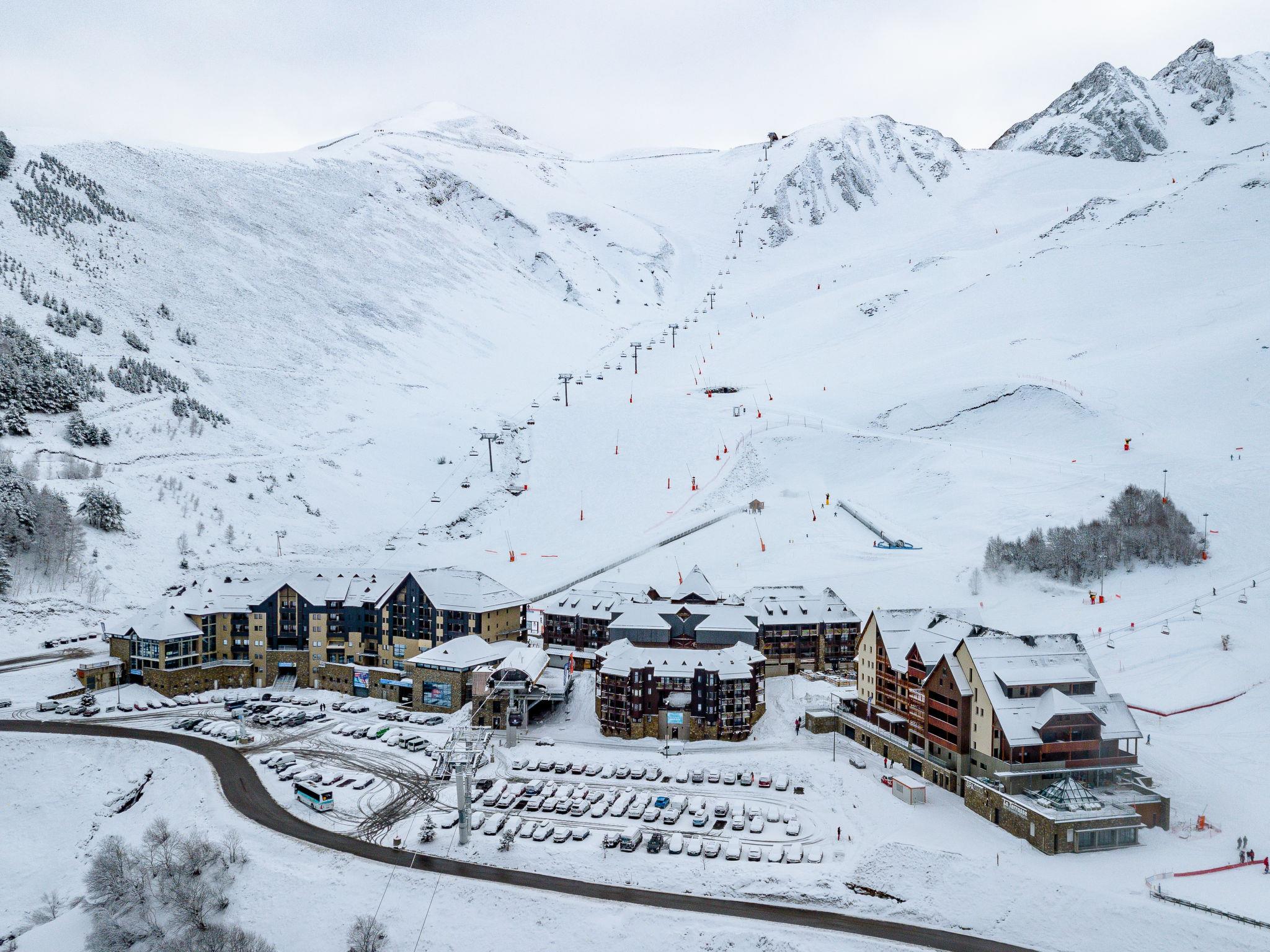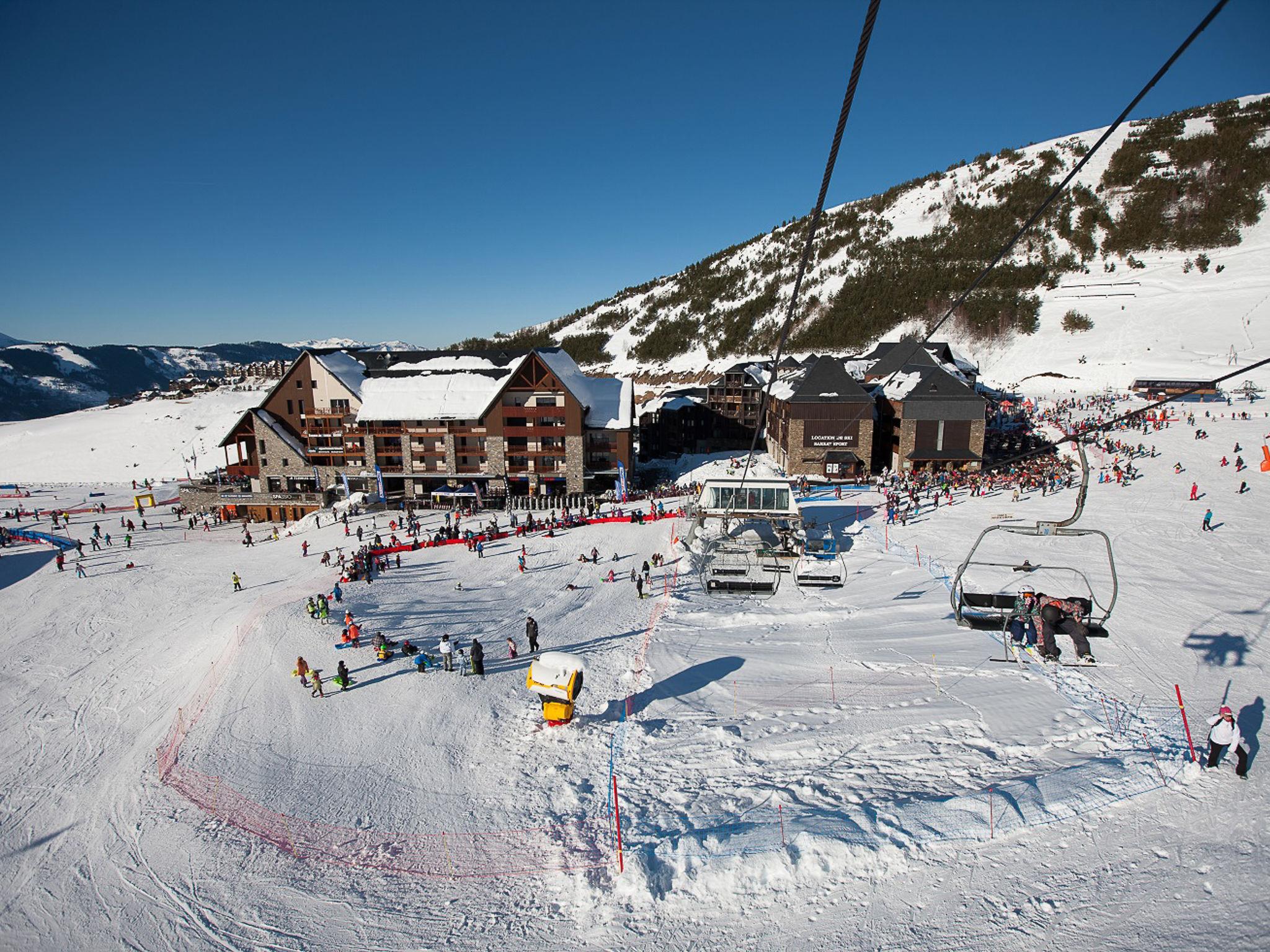 Access included to "Le Spassio" spa center (swimming pool and sauna) 100m from the residence - closed Mondays and Fridays in low season and Fridays in high season open from 1 to 7 p.m. Residence "Résidence Privilège", 4 storeys, renovated. 109 apartments in the residence. In the resort Peyragudes, 100 m from the skiing area. For shared use: indoor pool (12 x 8 m, depth 140 cm, pool opening hours: 13:00-19:00). In the complex: reception, WiFi (extra). Lift, storage room for skis, central heating system, washing machine, tumble dryer (for shared use, extra). Motor access (mountain road). In Winter: please take snow chains. Parking at the house. Shop, grocery, supermarket, restaurant 200 m, railway station "Luchon" 15 km. Chair lift, skisport facilities, slopes 100 m. Nearby attractions: Luchon 15 km, Tarbes 75 km, Toulouse 140 km. Well-known ski regions can easily be reached: Peyragudes. Hiking paths: Les Pyrénées. Please note: car recommended. In case of good snow conditions, the house is accessible on skis. The photograph shows a typical example. The holiday properties may differ in living space, floorplan, equipment and furnishing.