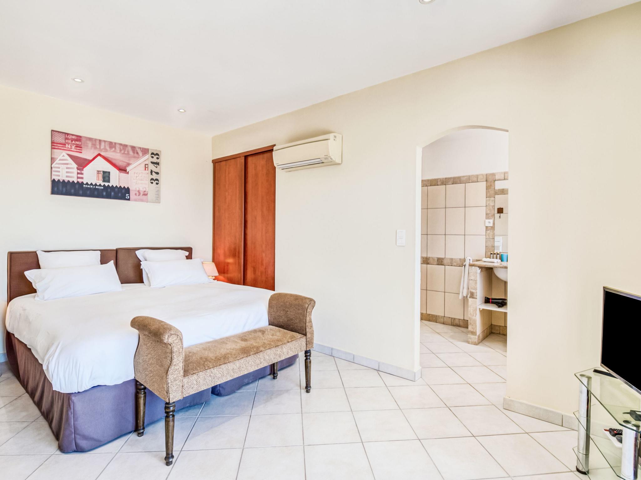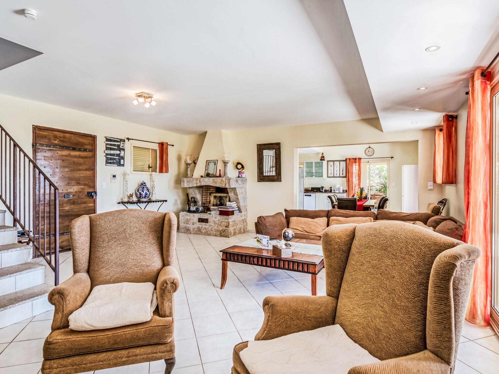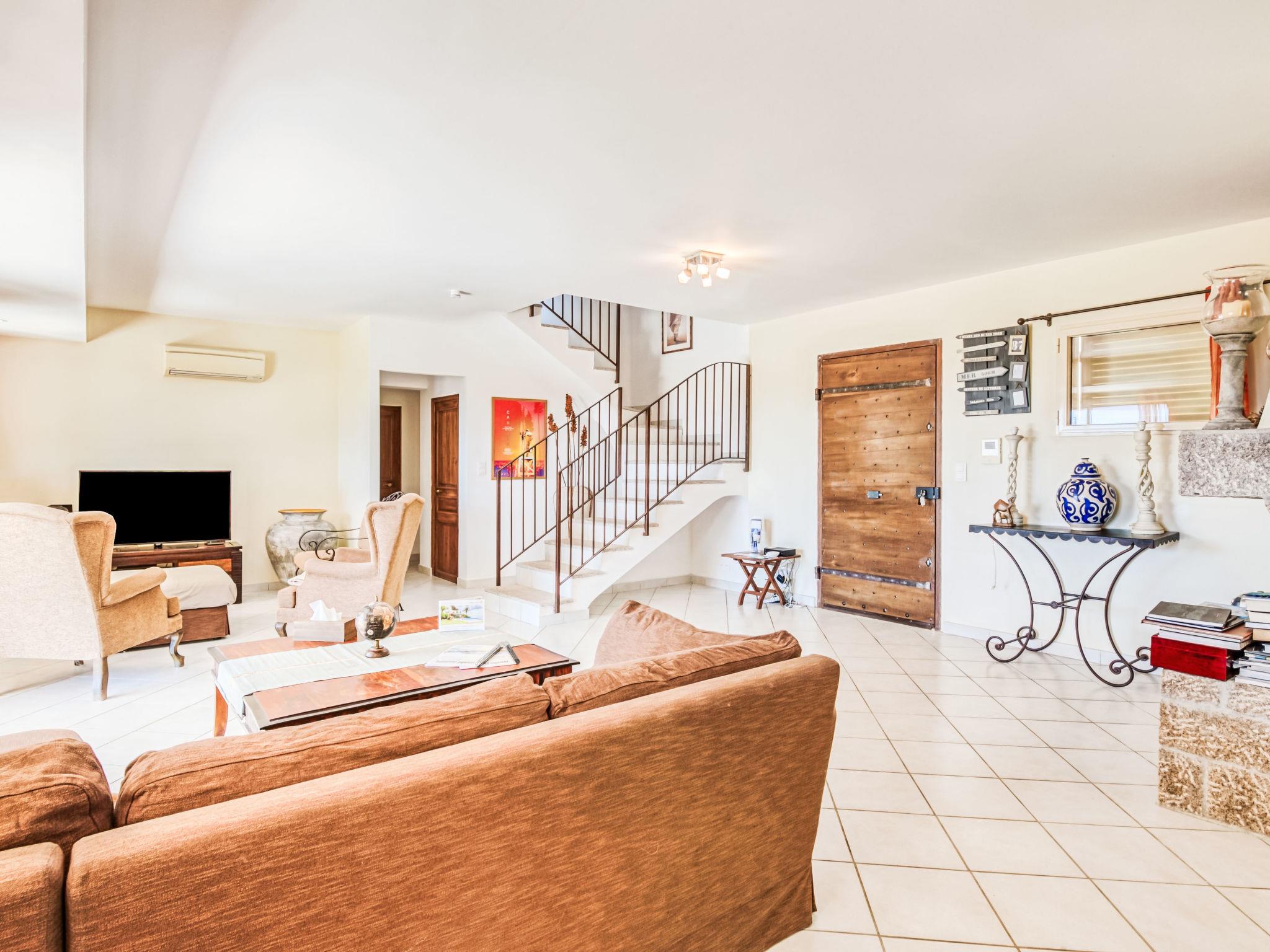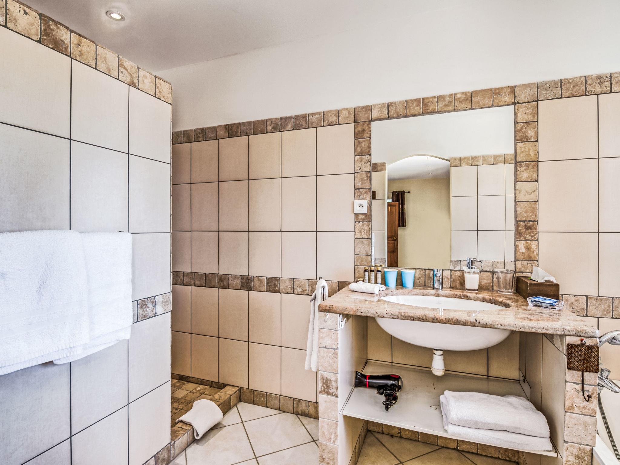 6-room villa 250 m2 on 2 levels. Beautiful and cosy furnishings: large living/dining room with TV (flat screen). Exit to the terrace. 2 rooms, each room with 1 french bed (180 cm, length 200 cm), shower/WC. Exit to the terrace. 1 room with 2 beds (90 cm, length 190 cm), shower/WC. Exit to the terrace. 1 room with 2 beds (90 cm, length 190 cm), shower/WC. Large, open kitchen (4 hot plates, oven, dishwasher, microwave, freezer, electric coffee machine). Upper floor: 1 room with 1 french bed (160 cm, length 200 cm). Exit to the balcony. Bathroom, sep. WC. Air-conditioning, forced-air heating. Large terrace 50 m2. Terrace furniture, deck chairs (10). View of the garden. Facilities: washing machine, iron, children's high chair, baby cot for up to 3 year olds, hair dryer. Internet (WiFi, free). Please note: two of the bedrooms on the ground-floor, are located in the adjoining house, with separate entrance.
