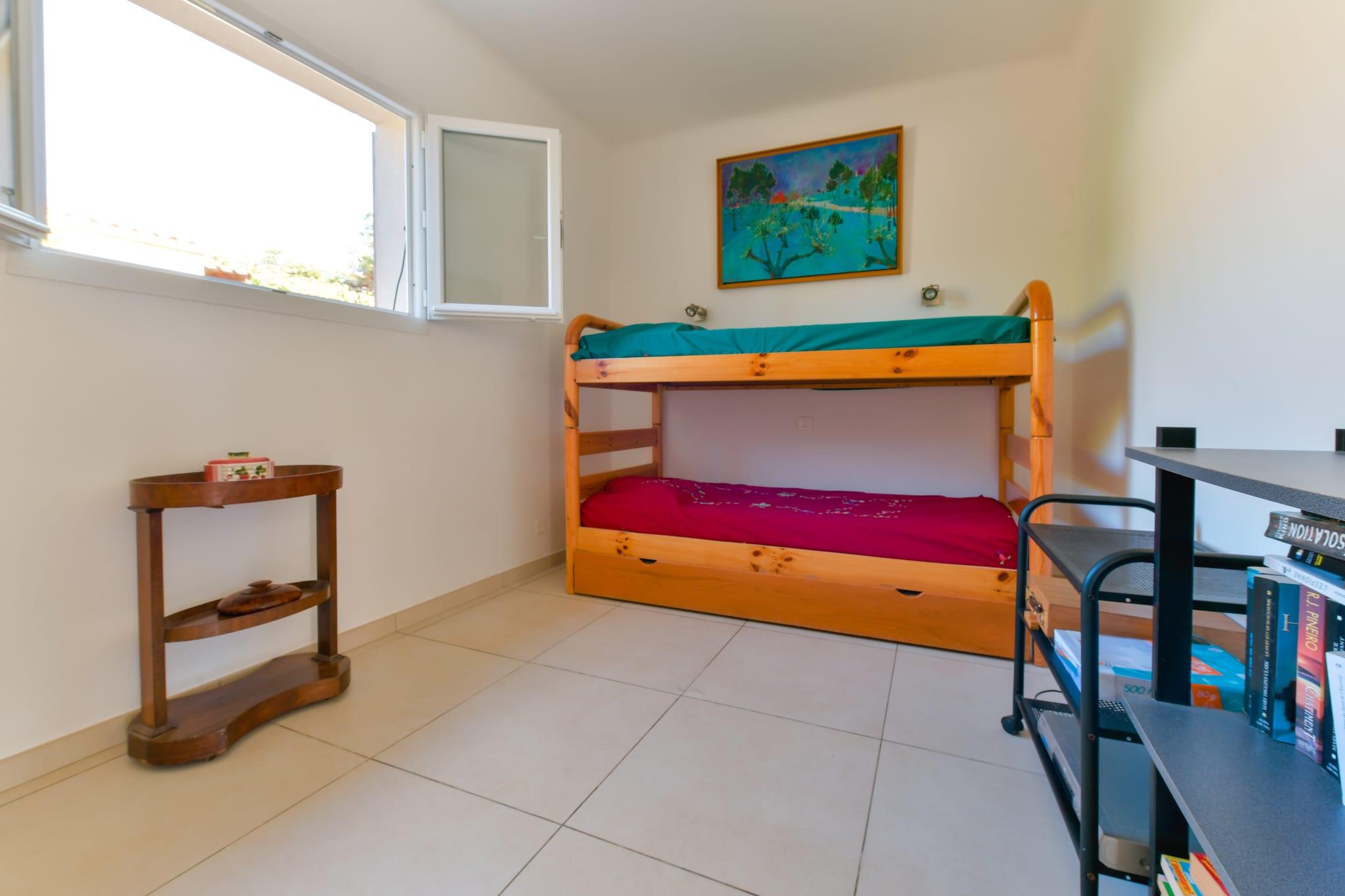 På en grund på 2000 m² nyder denne smukke villa på 120 m² en privilegeret beliggenhed ved havet. Den hyggelige have og attraktive terrasser er meget velegnede til afslappende aftener med dine kære. Boligen er ideel til solrige ferier med familie eller venner.I regionen kan du nyde smukke gåture, cykelture eller en doven dag på stranden ved havet (4 km). Porticcios centrum ligger 5 km væk, og du vil finde typiske italienske restauranter og gode butikker.Du har direkte adgang til en lille bugt/stille strand fra haven. Hovedvillaen har køkken, spiseplads og opholdsstue med tv. Dette rum fuldendes af en meget godt eksponeret overdækket terrasse med spisebord. Annekset indeholder et soveværelse med en dobbeltseng, et separat brusebad og et lille soveværelse på 7 m² med en stor seng