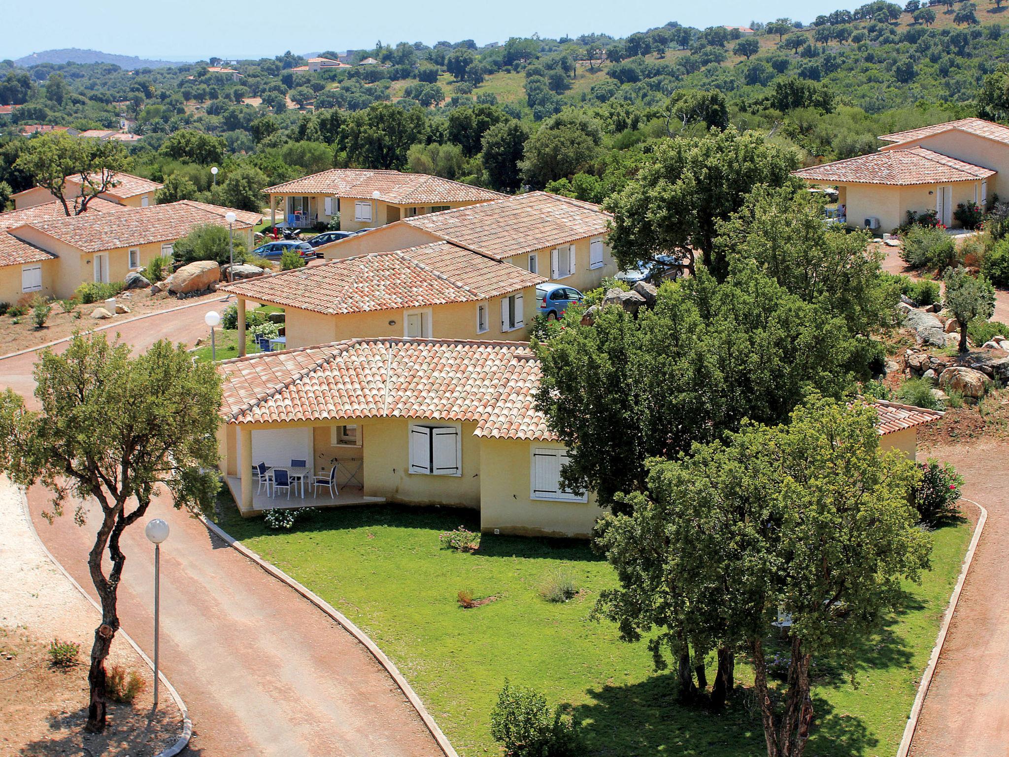 Small resort "San Martinu". 30 houses in the residence. 1 km from the centre of Ste. Lucie de Porto Vecchio, on the outskirts, 3 km from the centre of Pinarellu, 15 km from the centre of Porto Vecchio, 3 km from the sea. For shared use: property 2 ha (fenced) with plants and trees, swimming pool (15 x 6 m, seasonal availability: 01.Jun. - 15.Sep.). In the complex: reception, internet access, washing machine (for shared use, extra). Parking on the premises. Shop 1 km, sandy beach 3 km. Please note: the photograph shows a typical example. The holiday properties may differ in living space, floorplan, equipment and furnishing. Wifi available at the reception only.