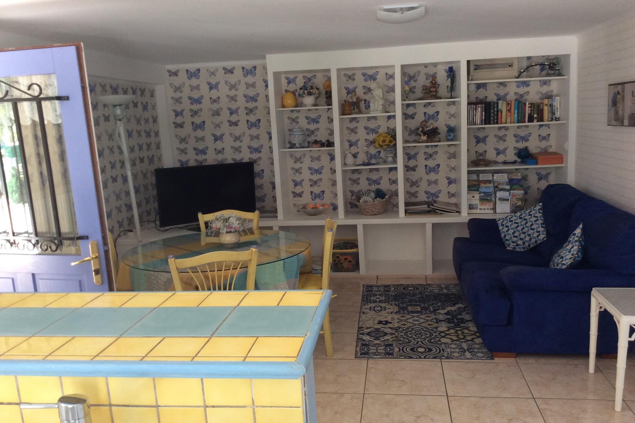 Hyggeligt og børnevenligt ophold Dette charmerende feriehus ligger i Piolenc og har 2 soveværelser og byder op til 5 gæster velkommen. Det er ideelt for familier, der tilbyder en fælles swimmingpool og en række børnevenlige faciliteter, herunder en boulebane, bordtennis, legeredskaber, en børneseng og en høj stol. Udforsk kultur og natur Blot 6 km væk inviterer den romerske by Orange dig til at udforske dets historiske teater, slentre forbi rådhuset eller slappe af på en café. Eventyrere kan tage til Gorges de l'Ardèche (30 km) til kajaksejlads og kanosejlads. Supermarkeder og restauranter ligger bekvemt 1,5 km fra huset. Afslappende udendørsliv Nyd en privat terrasse og en møbleret have, perfekt til udendørs måltider eller til at slappe af i solen. Køl af i den fælles pool eller nyd et måltid fra stengrillen. Liggestole og fredelige omgivelser gør dette til den perfekte base for en afslappende familieferie.
