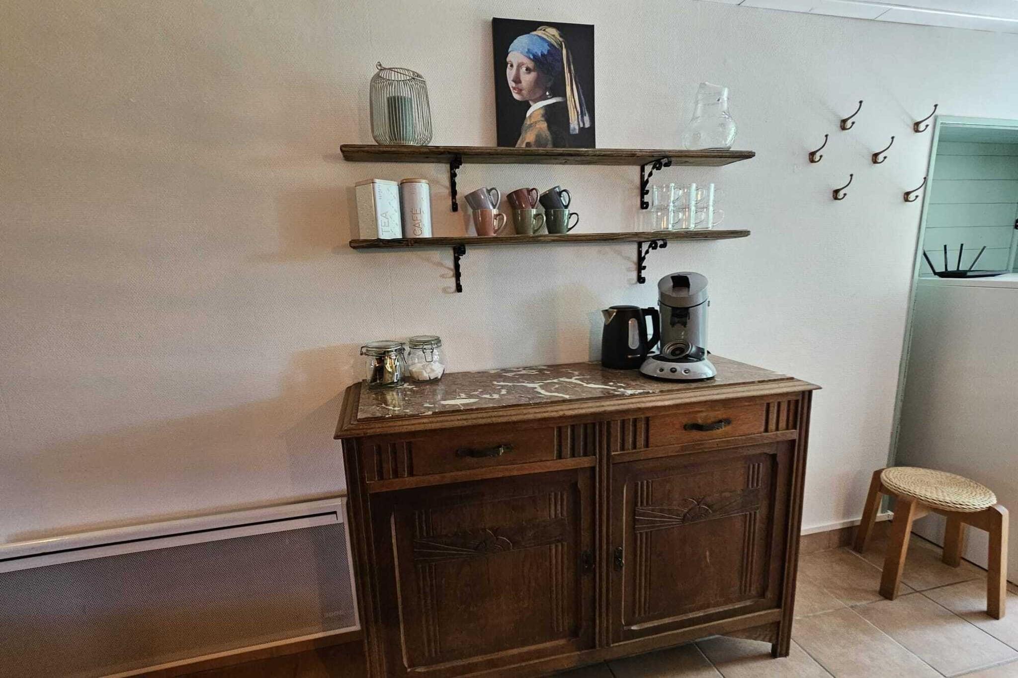 Stueetage: (Køkken(komfur(Komfur med fire kogeplader, gas), ovn, mikrobølgeovn, opvaskemaskine , køle-fryseskab), stue / spisestue(Fjernsyn, DVD-afspiller)) På 1. etage: (soveværelse(dobbeltseng(140 x 190 cm)), soveværelse(dobbeltseng(140 x 200 cm)), soveværelse(enkeltseng(95 x 180 cm), enkeltseng(95 x 180 cm)), badeværelse(bruser), toilet, Repos) Børneværelse, kakkelovn, vaskemaskine(deles med andre gæster), varme, terrasse(overdækket), have(300 m2), have(> 1000 m2), havemøbler, grill