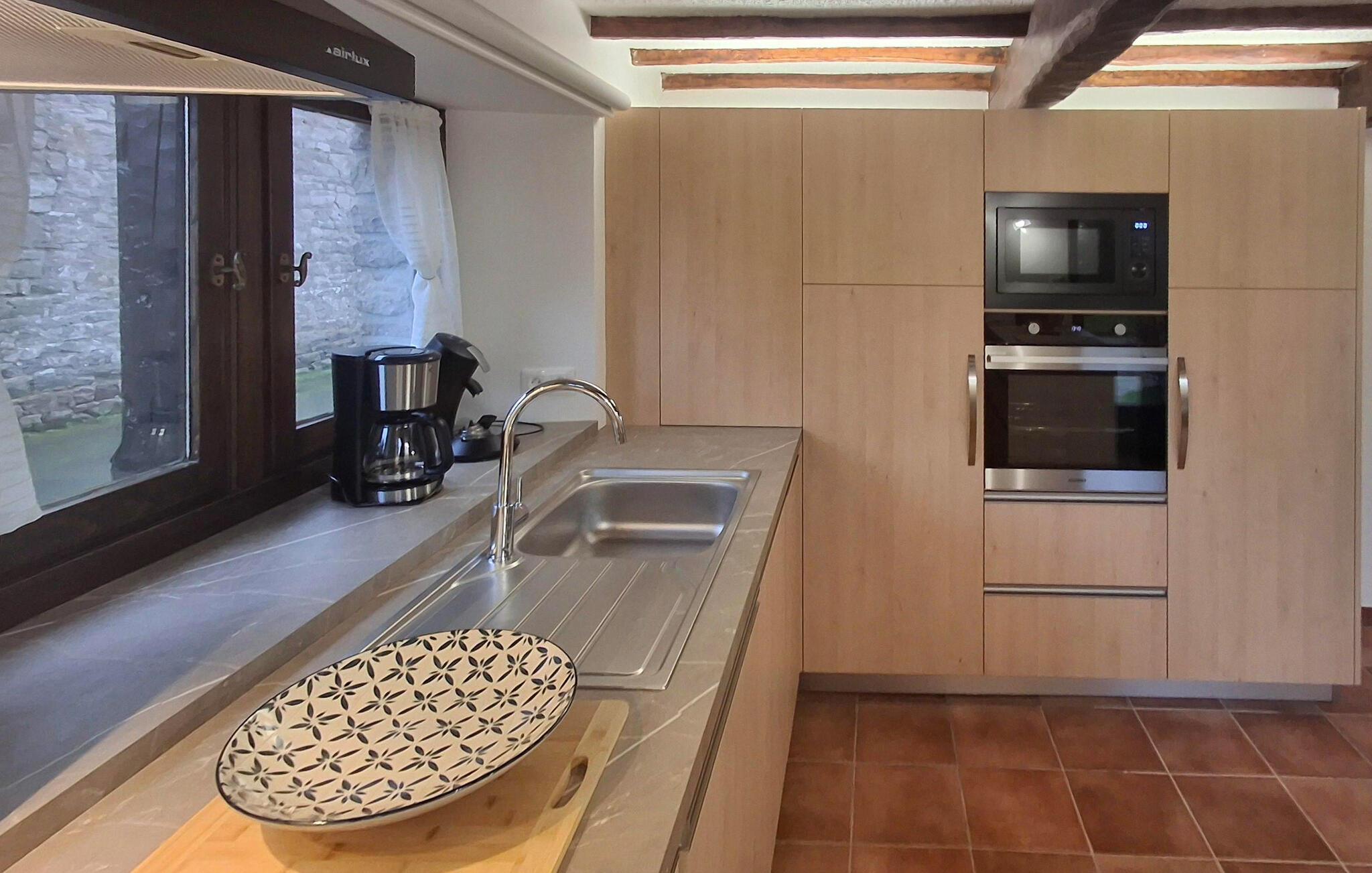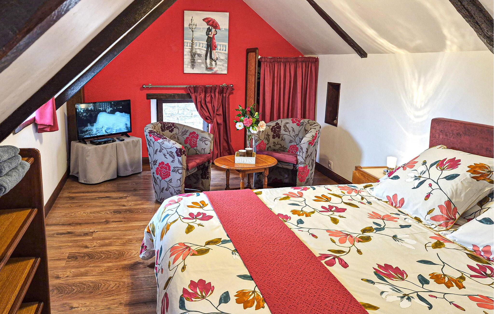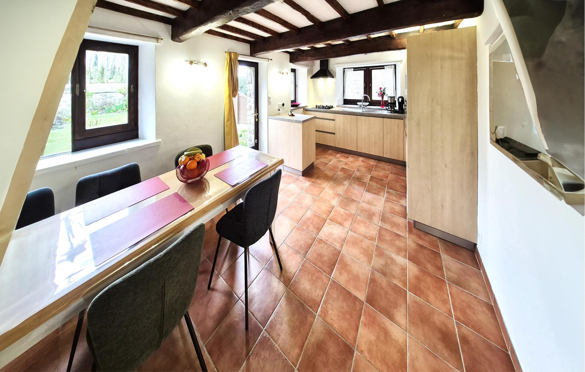 Dette hyggelige rækkehus er en del af en flot restaureret ejendom og ligger i en have udsmykket med sæsonens blomster. Det indbydende interiør udstråler rustik charme, som I kan nyde under hyggelige måltider, sjove aftener med madlavning og afslappende timer foran den knitrende pejs.