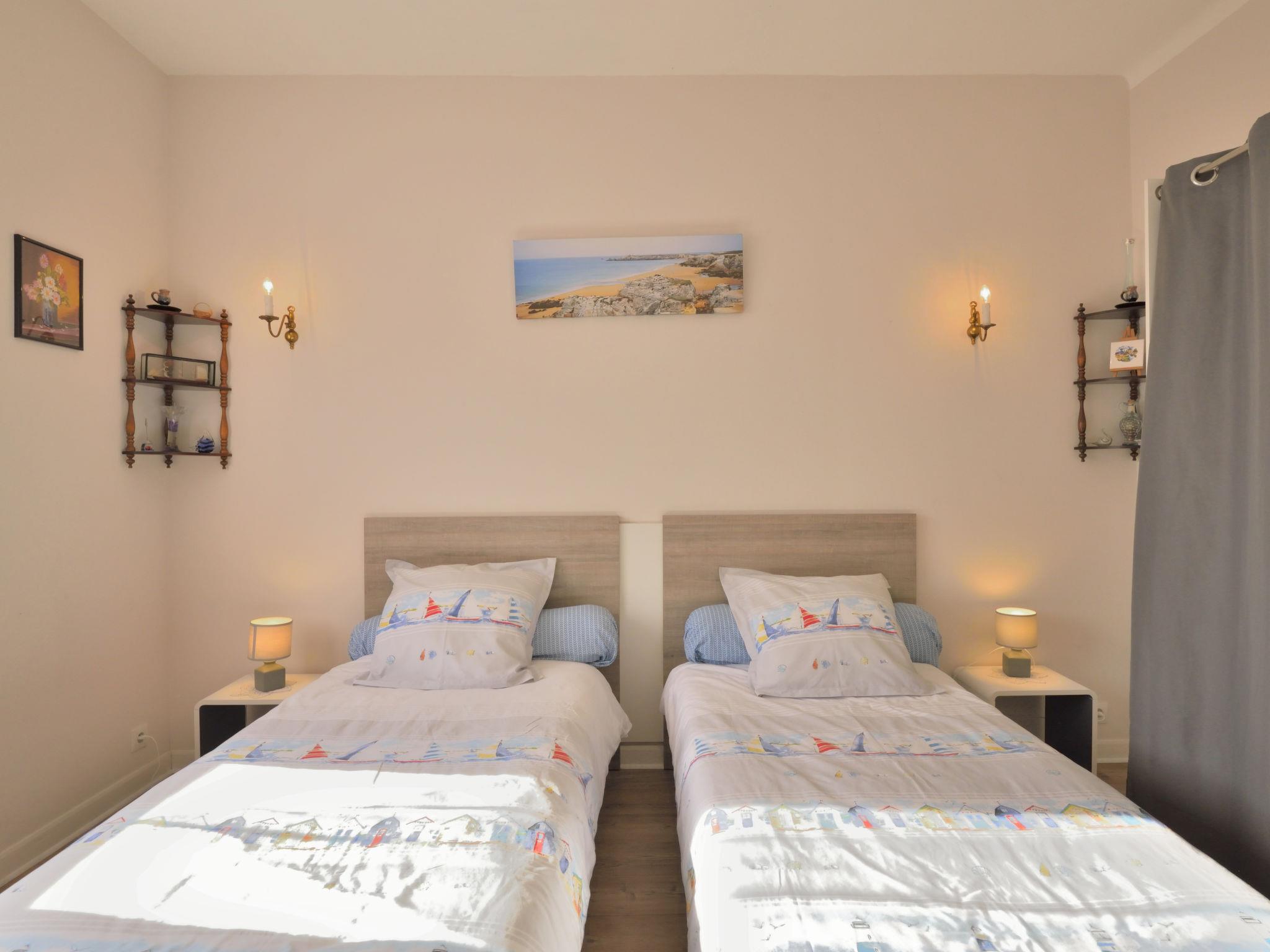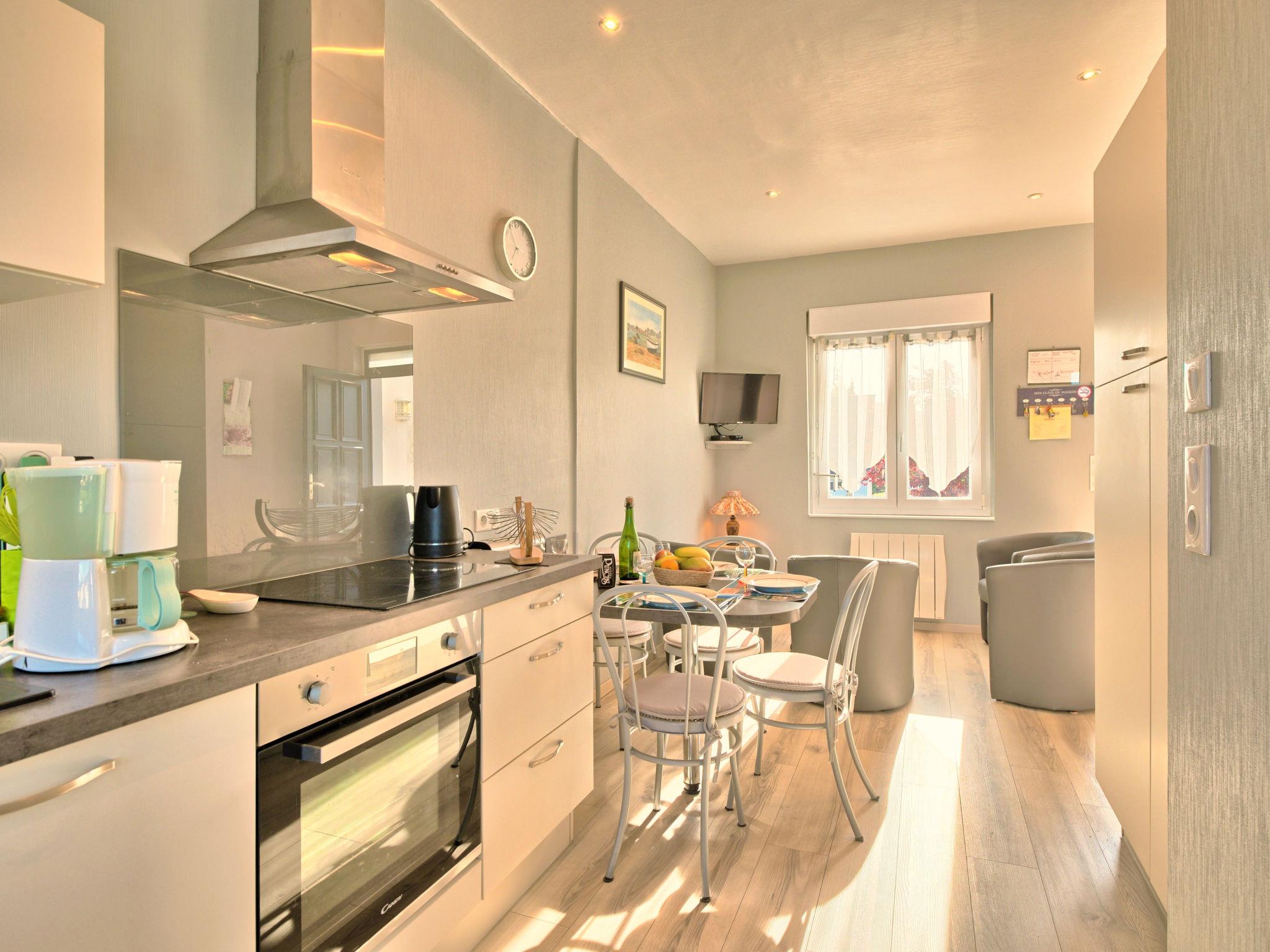 "La Corvette", 3-room house 65 m2. Practical and cosy furnishings: living room with satellite TV and radio. 1 room with 1 french bed (140 cm, length 190 cm). 1 room with 2 beds (90 cm, length 190 cm). Open kitchen (oven, dishwasher, 3 ceramic glass hob hotplates, toaster, kettle, microwave, freezer, electric coffee machine) with dining table. Shower/WC. Electric heating. Patio. Terrace furniture, barbecue (portable), deck chairs (4), box-room. Facilities: washing machine, iron, children's high chair, baby cot, hair dryer. Please note: 1 small pet/ dog allowed. Smoke alarm. Offer by a private individual according to Art. 155, IV of CGI. 14440