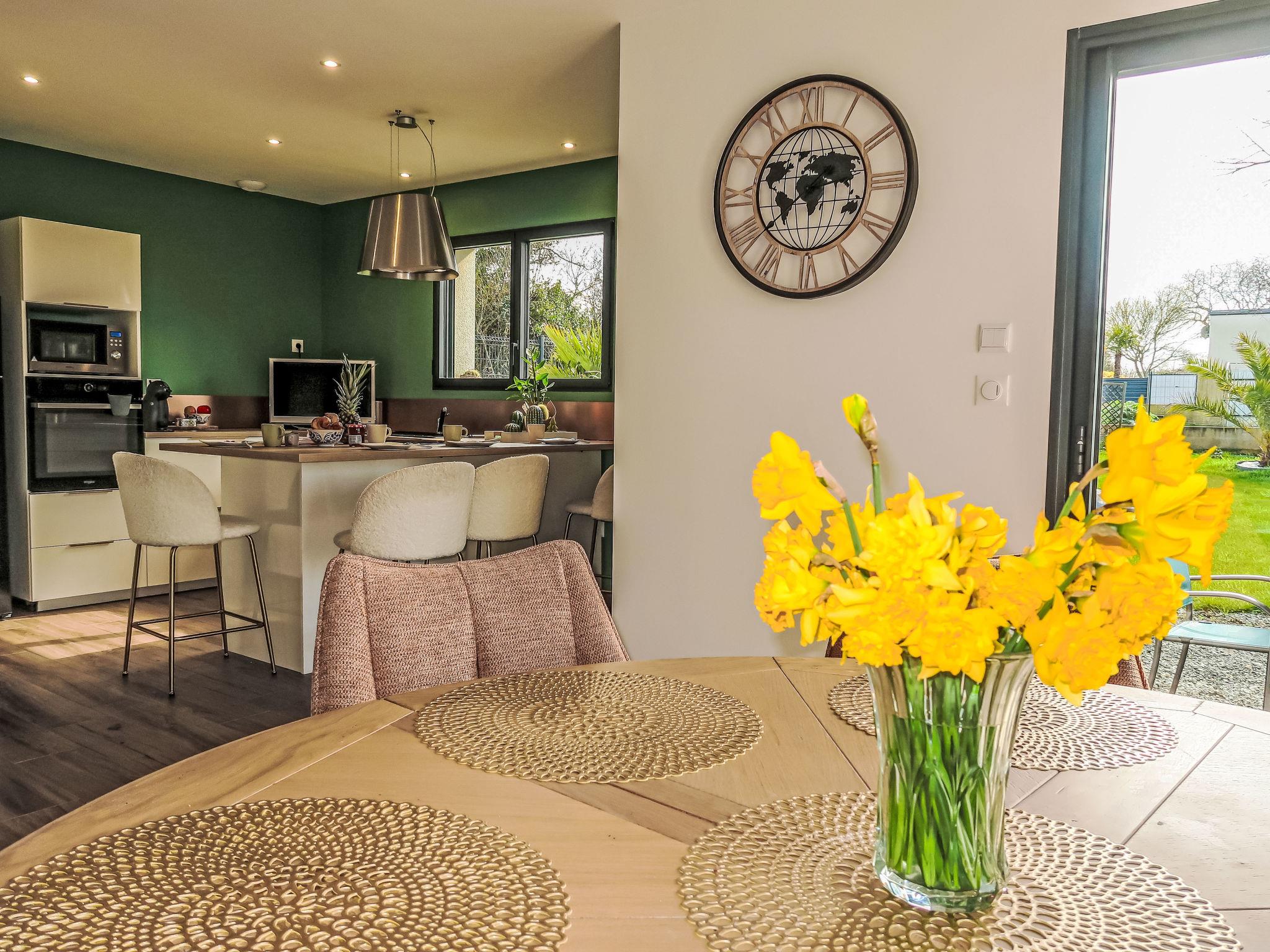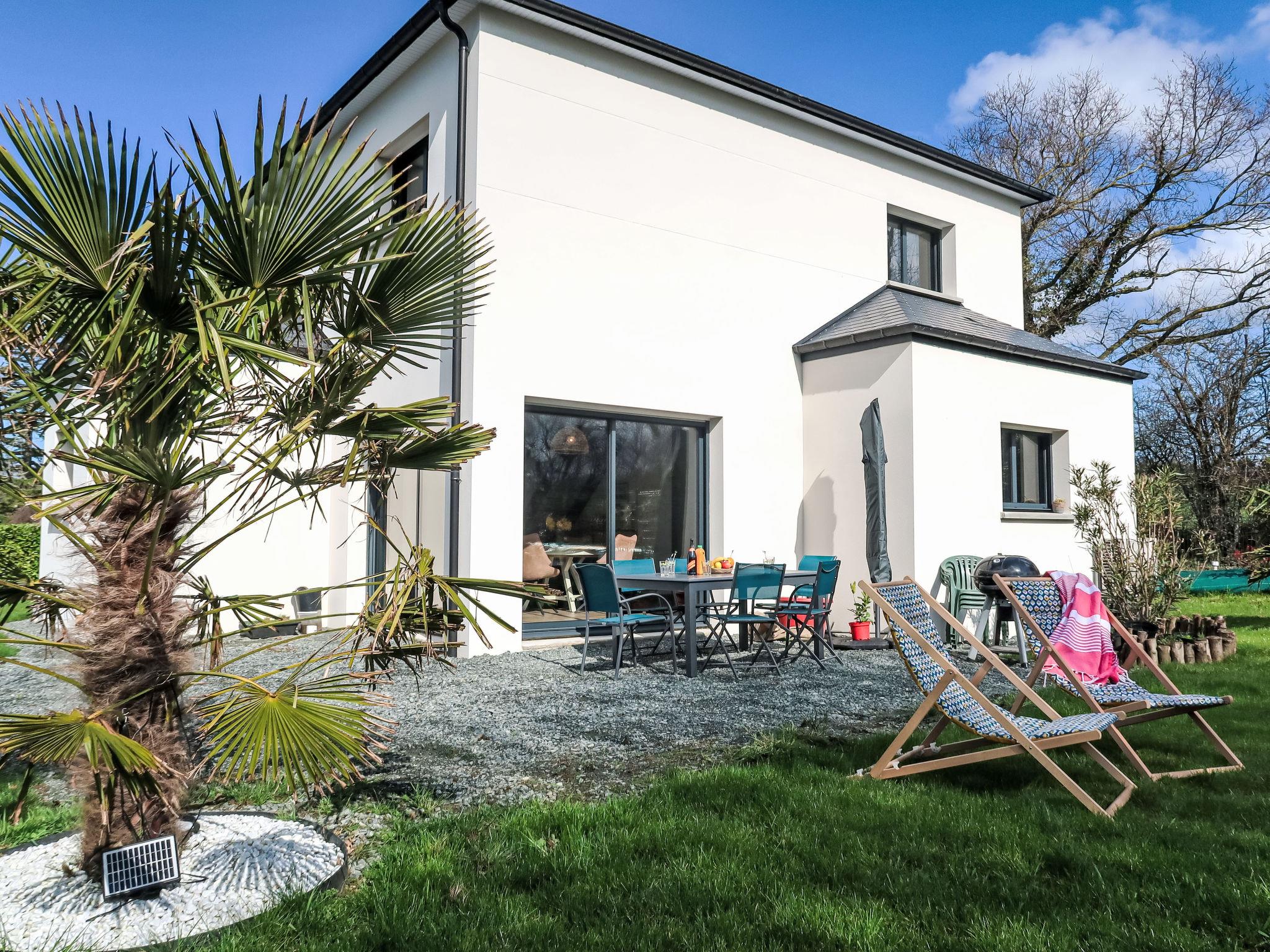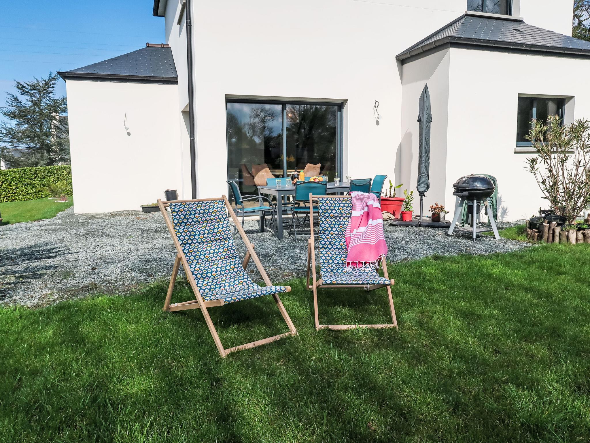 "Ty Heol", 4-room house 117 m2, south facing position. Spacious and bright, comfortable furnishings: entrance hall. Large living/dining room with dining table and TV (flat screen). Exit to the garden. Open kitchen (oven, dishwasher, 3 induction hot plates, toaster, kettle, microwave, freezer, electric coffee machine, cooking island). Shower, sep. WC, double hand-basin. Underfloor heating. Upper floor: 2 rooms, each room with 1 french bed (140 cm, length 190 cm). 1 room with 1 french bed (160 cm, length 190 cm). Shower, sep. WC, double hand-basin. Terrace furniture, barbecue (portable), deck chairs (4). Distant view of the sea. Facilities: washing machine, hair dryer. Internet (WiFi, free). Please note: non-smoking house. Smoke alarm. Offer by a private individual according to Art. 155, IV of CGI. 22186000304 WG