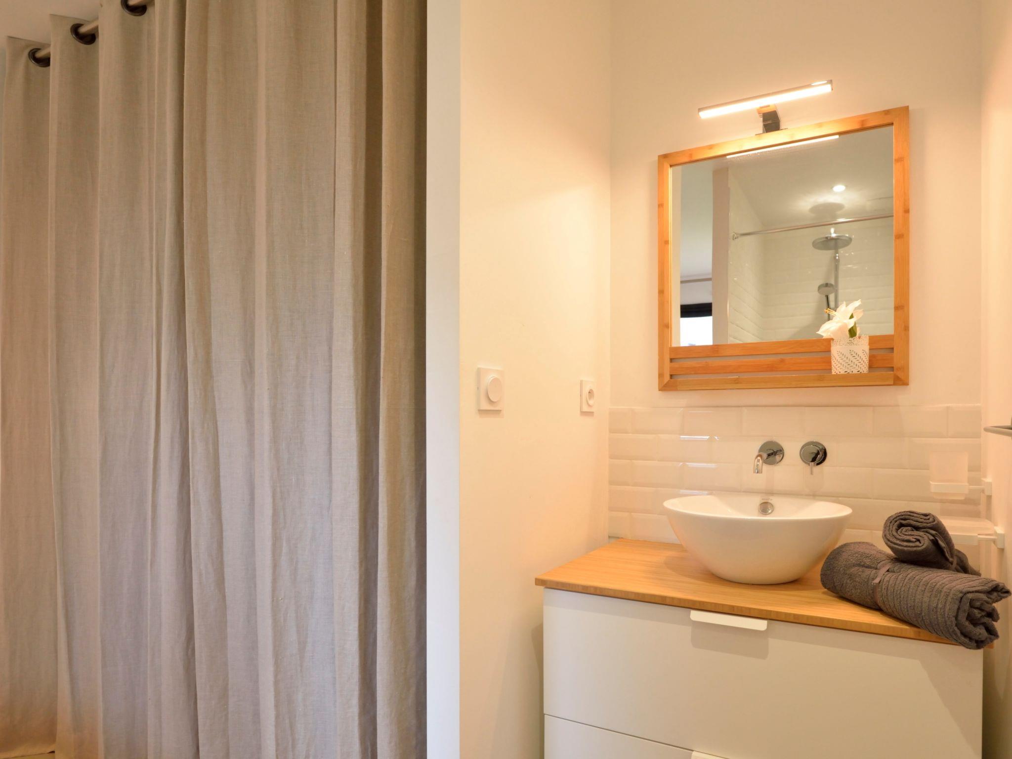 "L'Appart'Mer", 3-room apartment 69 m2, on the ground floor. Comfortable and tasteful furnishings: entrance hall. Lounge with TV (flat screen). 1 room with 2 beds (90 cm, length 200 cm), shower. 1 room with 1 french bed (160 cm, length 190 cm), shower. Kitchen (oven, dishwasher, 3 induction hot plates, toaster, kettle, microwave, freezer, electric coffee machine, Capsules for coffee machine (Nespresso)) with bar. Sep. WC. Electric heating. Small terrace 25 m2. Terrace furniture, barbecue, deck chairs (4). Facilities: hair dryer. Internet (WiFi, free). Parking at the house. Please note: non-smokers only. Smoke alarm. Offer by a private individual according to Art. 155, IV of CGI.