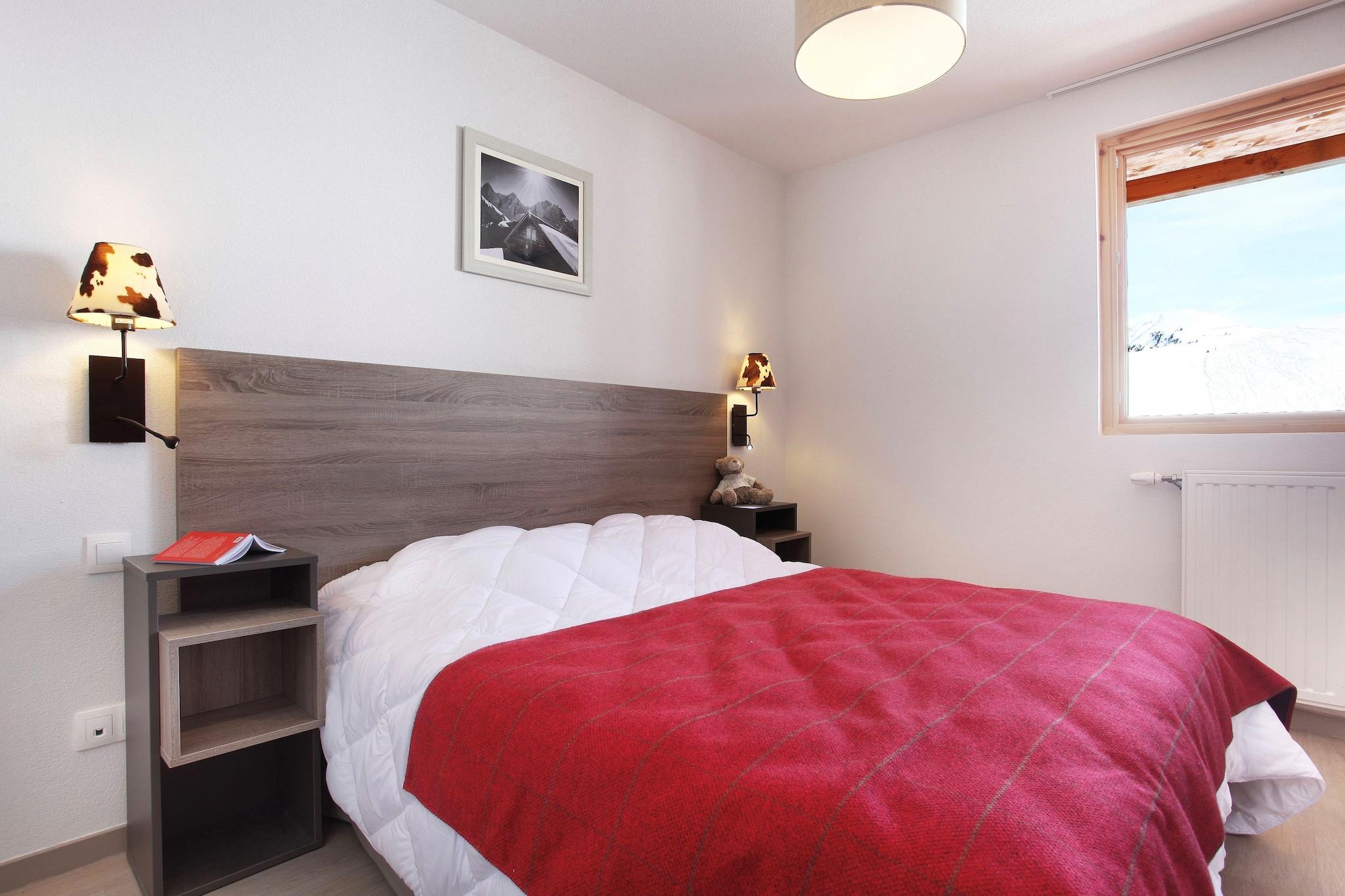 Denne indbydende indkvartering er beliggende i det store skiområde Paradiski, som forbinder skisportsstederne Les Arcs og La Plagne. Et vidunderligt skiområde for alle niveauer og aldre. Résidence Front de Neige er en helt ny indkvartering beliggende direkte på pisten i et område kaldet Plagne Villages. Et supermarked, skiskole og busstoppested for shuttlebussen til Plagne Centre er alle inden for gåafstand. Komplekset består af en række rækkehuse med i alt omkring 140 komfortable lejligheder. Det har også en attraktiv indendørs swimmingpool med boblebad (gratis) og en spa med tyrkisk bad og spa-behandlinger (mod betaling). Alle lejligheder har balkon eller terrasse og er moderne indrettede. En to-personers sovesofa er altid til stede i stuen samt et komplet tekøkken. Der er et udvalg af lejligheder for 2 til 6 personer. FR-73210-166 er en lejlighed til 2 personer. Lejlighed FR-73210-167 har et soveværelse og er egnet til 4 personer. Lejligheden til 6 personer FR-73210-168 består af FR-73210-166 og FR-73210-167 med en forbindelsesdør. Endelig er der også lejlighed FR-73210-169 til 6 personer som har to soveværelser.