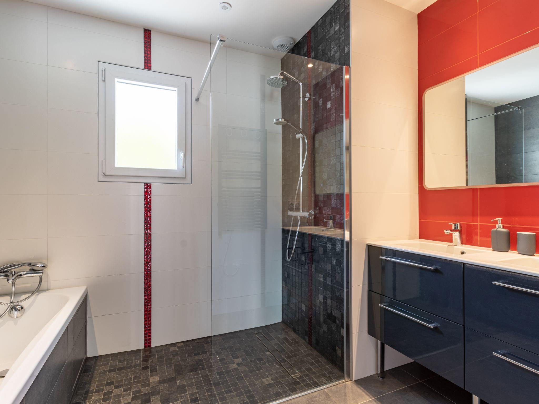 4-room villa 140 m2. Beautiful and modern furnishings: large living/dining room 70 m2 with TV (flat screen). Exit to the terrace. 1 room with 1 french bed (140 cm, length 190 cm), bath/shower and double hand-basin. Exit to the terrace. 2 rooms, each room with 1 french bed (140 cm, length 190 cm), hand-basin and shower. Exit to the terrace. Open kitchen (dishwasher, 4 induction hot plates, toaster, kettle, microwave, electric coffee machine). 2 sep. WC's. Underfloor heating. Facilities: washing machine, children's high chair, baby cot. Internet (WiFi, free). Please note: smoke alarm. Offer by a private individual according to Art. 155, IV of CGI. 83094000177B1