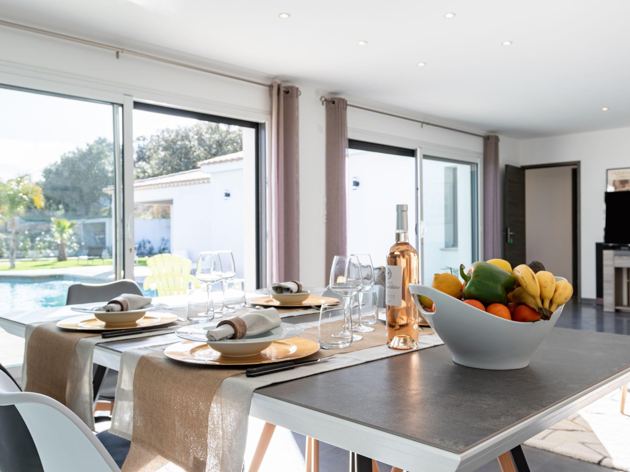 Very modern, beautiful villa "Cedelen", built in 2019. 1 km from the centre of Le-Plan-de-la-Tour, 10 km from the beach, in a cul-de-sac, south-east facing position. Private: property 1'000 m2 (fenced), beautiful garden with wildlife garden and trees, swimming pool (11 x 5 m, depth 160 cm, seasonal availability: 01.Jan. - 31.Dec.) with internal staircase and alarm system. Pool house with shower and WC, boules, terrace (40 m2), garden furniture, barbecue, parking (for 2 cars). Shop 1 km, shopping centre 6 km, bakery 1 km, bus stop 1 km, sandy beach "Sainte Maxime" 10 km. Walking paths from the house 300 m. Nearby attractions: Ste.Maxime 10 km, Sainte Tropez 18 km, Domaine Viticole Les Marquets 30 m. The owner does not accept any groups. Please note: the owner lives on the same property.