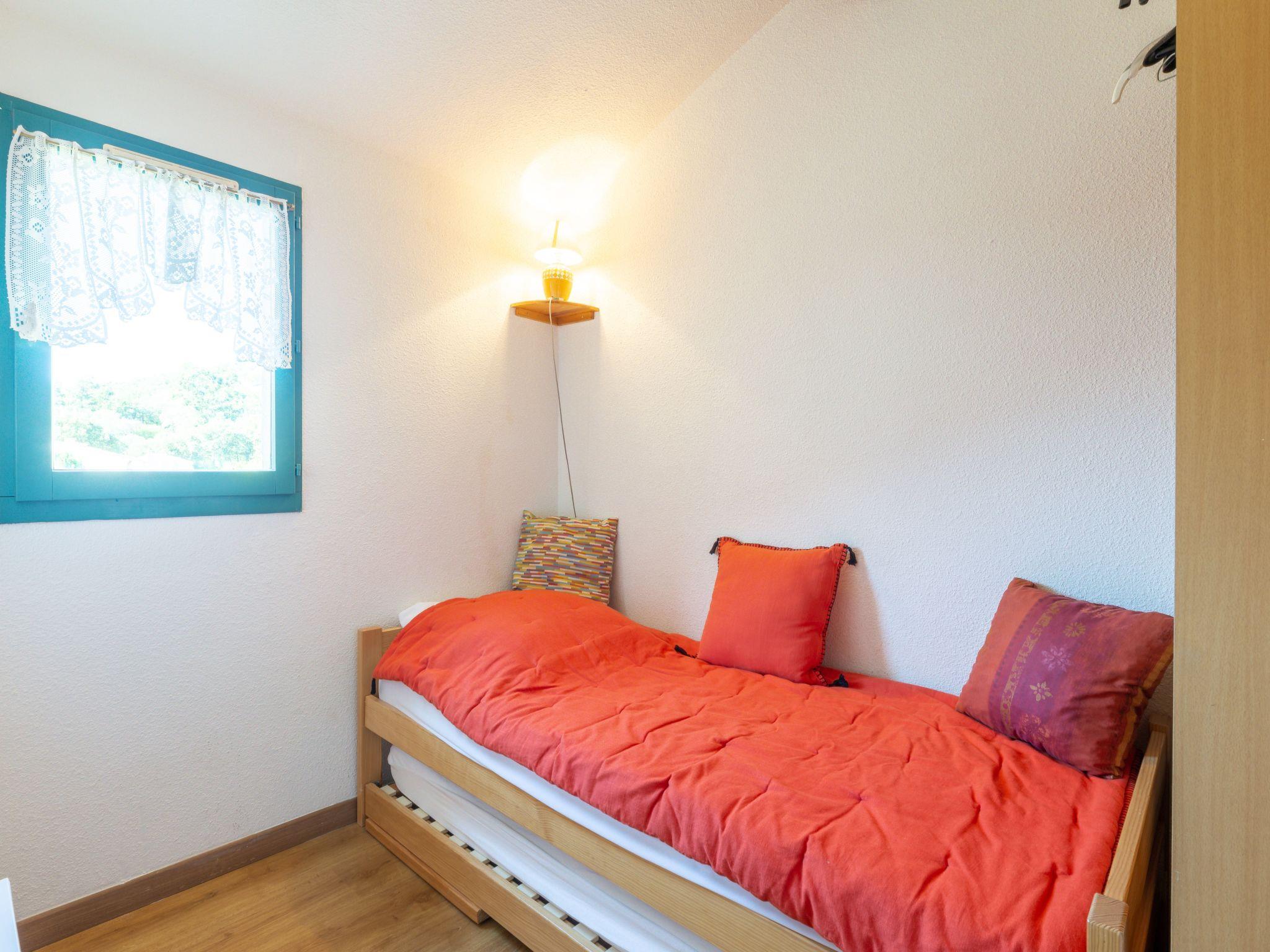 "Les Olivades", 3-room terraced house 35 m2 on 2 levels. Object suitable for 2 adults + 2 children. Living/dining room with dining table and TV (flat screen), CD-player and air conditioning. Exit to the terrace. Kitchenette (3 ceramic glass hob hotplates, toaster, kettle, electric coffee machine, combination microwave). Sep. WC. Upper floor: 1 room with 1 french bed (140 cm, length 190 cm), air conditioning. 1 small room with 1 sofabed (80 cm, length 190 cm), 1 pull-out bed (2 x 80 cm, length 190 cm). Shower/WC. Electric heating. Terrace 15 m2. Terrace furniture. Facilities: washing machine. Please note: smoke alarm. 83094000449R6
