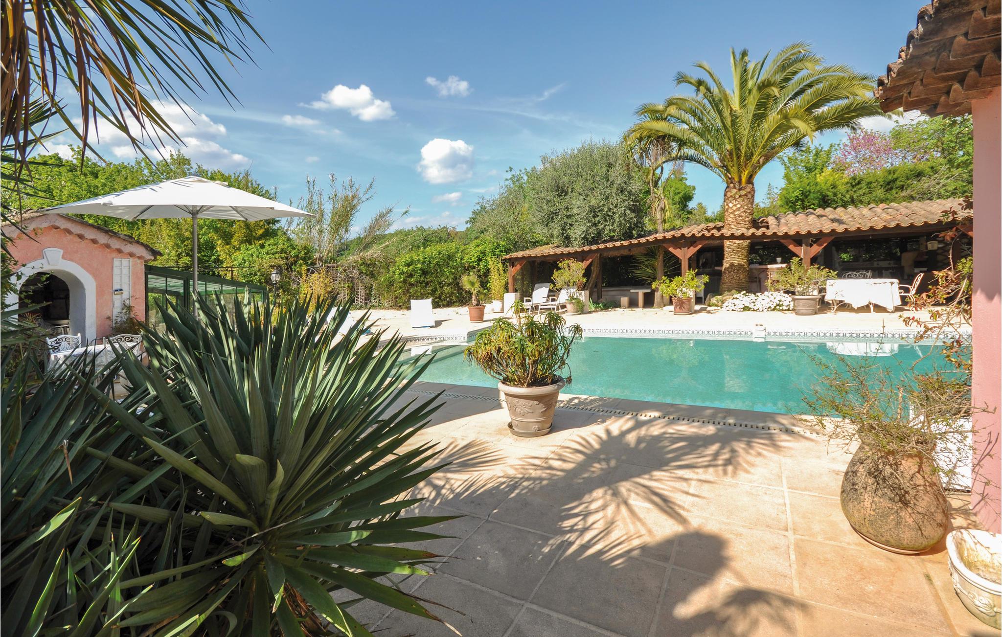 Feriehuset er rummeligt og komfortabelt og ligger på en stor grund med palme- og oliventræer, der fremhæver Provence-stemningen. Forfrisk jer i jeres egen pool eller nyd solen på solsengene. Poolhuset med pizzaovn og grill lover mange hyggelige timer med familien eller vennerne. Poolhuset indeholder også et fuldt udstyret køkken og en udendørs lounge. I en af de tre stuer er der en bar, og ovenpå venter seks dejlige soveværelser. Et billardbord sørger for underholdning.