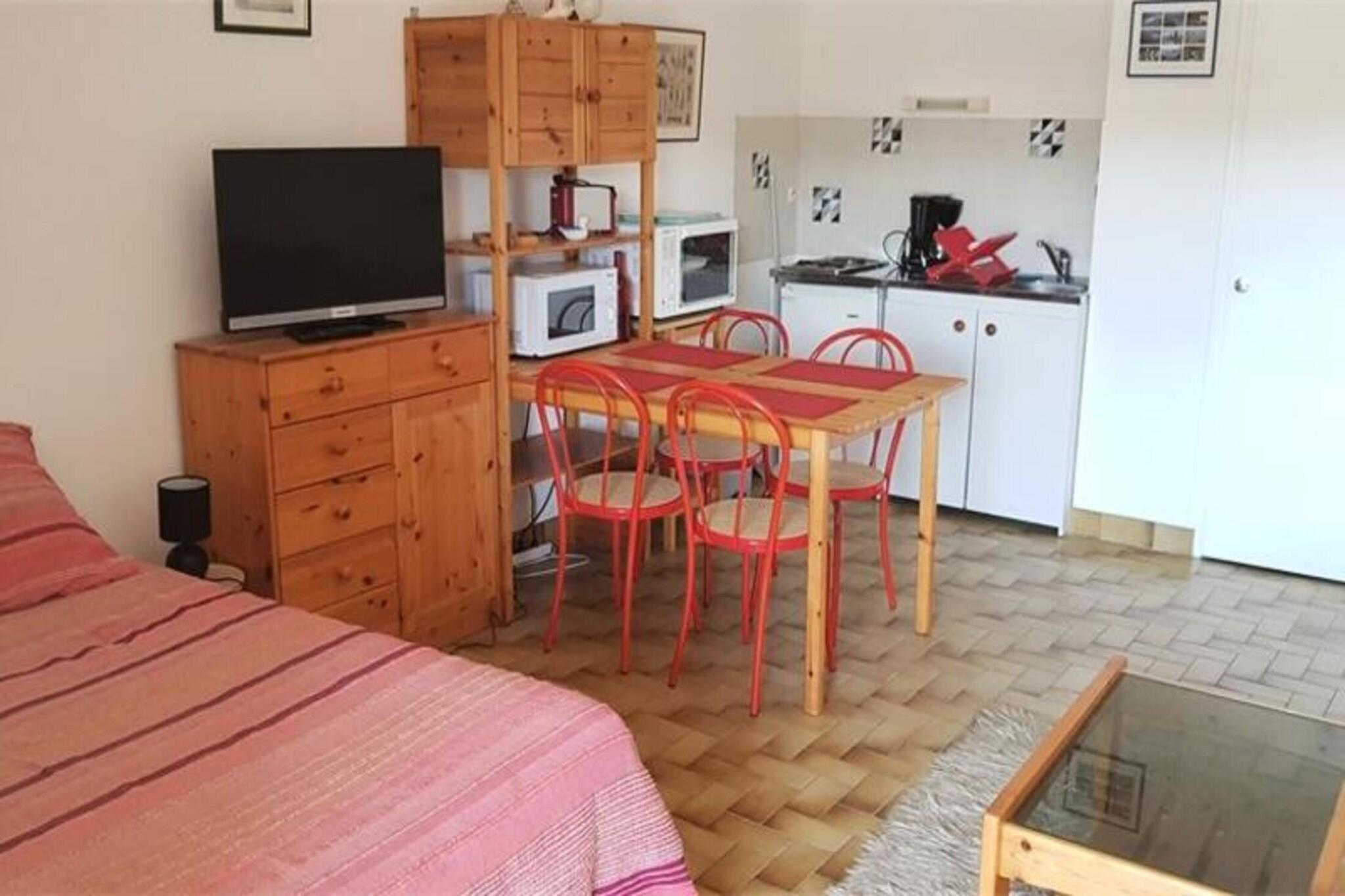 Dette charmerende 35 m² store studie på anden sal i en bolig er det perfekte valg til en kystferie. Med en komfortabel dobbeltseng, en hyggelig opholdsstue med sofa, lænestole og et spisebord til fire, kan det rumme gæster i varme og indbydende omgivelser. Store karnapper fører til en privat balkon med udendørsmøbler, der tilbyder en fantastisk udsigt over Dahouët-havnen. Selvom boligen ikke har en elevator, giver den nem adgang til nærliggende offentlig parkering. Yderligere faciliteter såsom tv og valgfri Wi-Fi sikrer bekvemmelighed under dit ophold. Ideelt beliggende nær lokale attraktioner, denne ejendom er få skridt væk fra dejlige caféer, butikker og restauranter. Nyd afslappede gåture langs den naturskønne havn eller udforsk nærliggende strande til solbadning og svømning. For dem, der søger eventyr, byder området på en række aktiviteter, fra kystvandringer til sejlads. Lokale markeder giver den perfekte mulighed for at opdage friske råvarer og regionale specialiteter. Studiet har et åbent og fuldt udstyret køkken med ovn, mikroovn, elektrisk kogeplade og køleskab, hvilket gør madlavning til en leg. Badeværelset har badekar, håndvask og toilet for ekstra komfort. Valgfri tjenester som rengøring, leje af sengetøj og babyudstyr er tilgængelige for at forbedre dit ophold, hvilket sikrer en afslappende og bekymringsfri oplevelse ved havet.