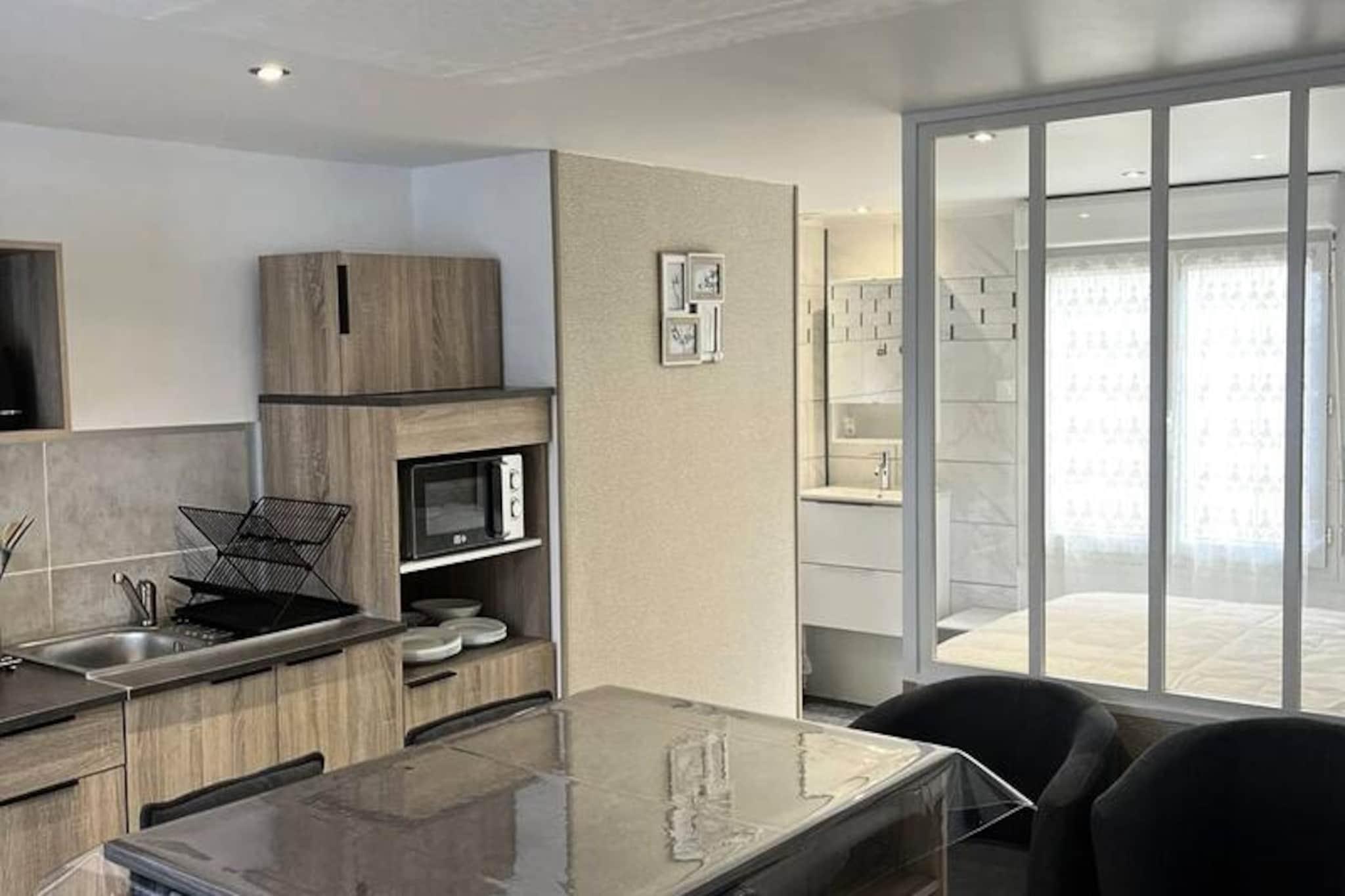 Et charmerende kystnært tilflugtssted venter dig i hjertet af Val André, hvor den blide havbrise og bølgeskvulp skaber den perfekte kulisse for en afslappende ferie. Kun 150 meter fra sandstranden tilbyder dette renoverede studie et hyggeligt tilflugtssted for par eller solorejsende, der søger ro ved havet. Den pulserende badeby ligger lige uden for døren med dens marinespa, casino, biograf og lokale butikker inden for en kilometers rækkevidde, hvilket sikrer en dejlig blanding af afslapning og underholdning. Træd indenfor i dette omhyggeligt designede studie, hvor hver eneste detalje er udtænkt for din komfort. Det åbne køkken er fuldt udstyret med moderne apparater, herunder et gaskomfur med ovn, et køleskab med frostboks, en mikrobølgeovn, en kaffemaskine og en elkedel, hvilket gør det nemt at tilberede dine yndlingsmåltider. Spiseområdet, komplet med et bord og stole til to, inviterer dig til at nyde intime middage, mens soveområdet har en komfortabel seng på 140x190 cm til afslappende nætter. Et privat brusebad og håndvask samt et separat toilet sikrer bekvemmelighed, og tilføjelsen af ??havemøbler giver dig mulighed for at slappe af udendørs med stil. Val Andrés charme rækker ud over studiet. Gå en tur langs den maleriske promenade, forkæl dig selv med foryngende behandlinger i marinespaen, eller prøv lykken på kasinoet. Den nærliggende strand tilbyder muligheder for solbadning, svømning eller blot at nyde den fantastiske udsigt over kysten. Uanset om du udforsker de lokale butikker eller nyder frisk fisk og skaldyr på nærliggende restauranter, er hvert øjeblik her fyldt med Bretagnes ånd. Dette studie er din indgang til en mindeværdig ferie ved havet, der tilbyder både komfort og nærhed til det bedste af Val André. Der tilbydes valgfri leje af sengelinned, rengøringsservice og en babyseng for at gøre dit ophold endnu mere bekvemt. Oplev den franske kysts skønhed og skab varige minder i dette dejlige tilflugtssted.