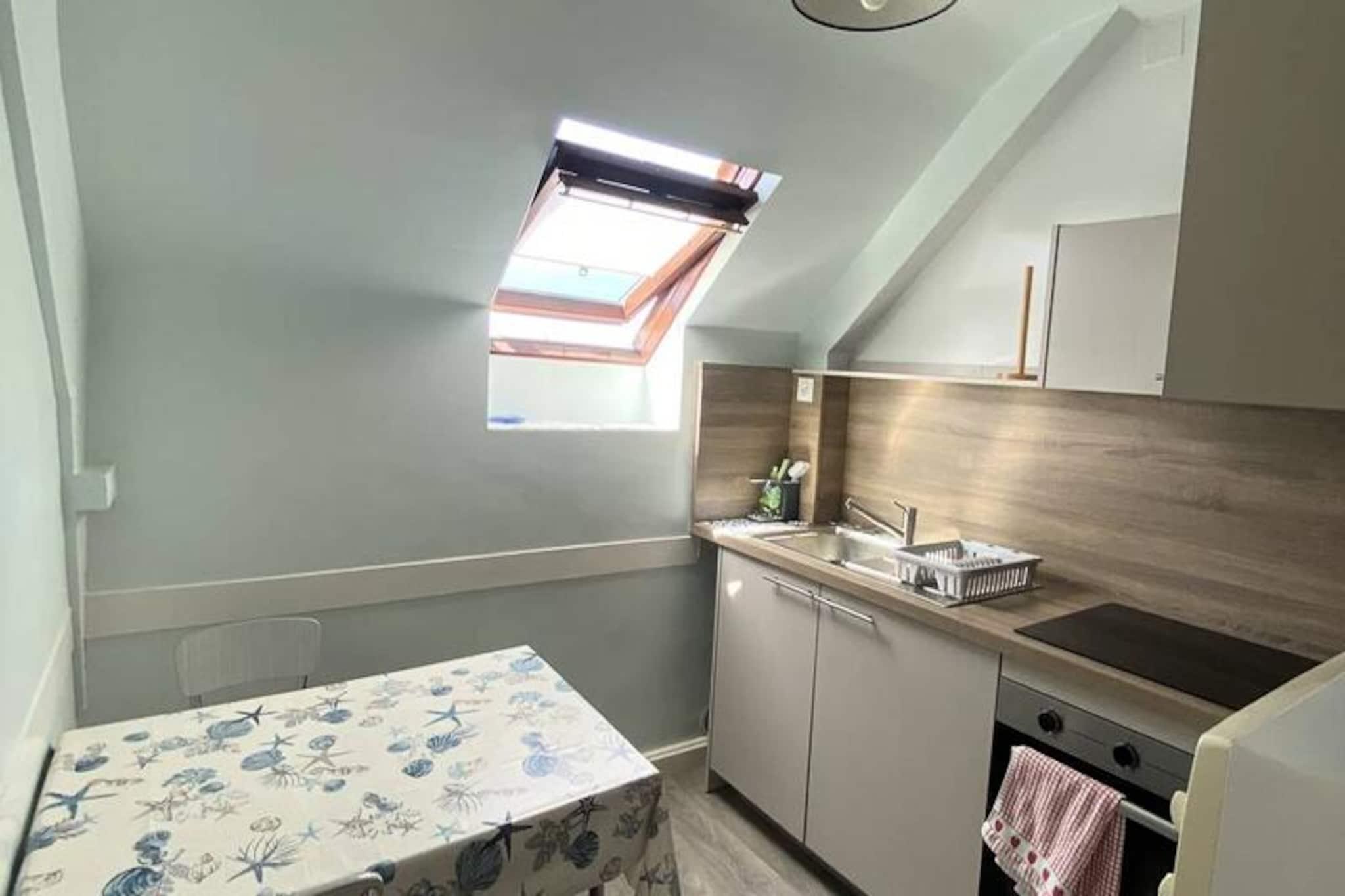 I hjertet af den charmerende badeby Saint-Cast-le-Guildo tilbyder denne hyggelige lejlighed med et soveværelse et dejligt tilflugtssted kun få øjeblikke fra Bretagnes fantastiske kystlinje. Med sin indbydende atmosfære og bekvemme beliggenhed er det den perfekte base for par eller små familier, der ønsker at udforske regionens naturlige skønhed og kulturskatte. Forestil dig at vågne op til lyden af ??måger og nyde din morgenkaffe, inden du tager afsted på en dag med eventyr. Lejligheden, der strækker sig over 32 kvadratmeter, er omhyggeligt designet til at maksimere komfort og funktionalitet. Stuen/spisestuen har en sovesofa, en enkeltseng, en lille spiseplads og et tv, hvilket skaber et indbydende rum at slappe af i efter en dag med udforskning. Det fuldt udstyrede køkken inkluderer moderne apparater såsom ovn, induktionskogeplade, køleskab, kaffemaskine, elkedel, brødrister og mikrobølgeovn, hvilket sikrer, at du har alt, hvad du behøver for at tilberede lækre måltider. Soveværelset har en hyggelig dobbeltseng, mens badeværelset er udstyret med et toilet for ekstra bekvemmelighed. Bemærk venligst, at kæledyr ikke er tilladt, og lejligheden har stejle trapper, som muligvis ikke er egnet til alle. Ekstraudstyr som rengøringsservice, leje af linned og en barneseng er tilgængeligt for at forbedre dit ophold. Saint-Cast-le-Guildo er en skattekiste af attraktioner. Fra den gyldne sandstrand på Pen Guen-stranden til de naturskønne kyststier, der snor sig langs Smaragdkysten, er der ingen mangel på betagende udsigter og udendørsaktiviteter. Udforsk det historiske Fort La Latte, et middelalderslot, der ligger dramatisk på klipperne, eller tag en afslappet slentretur gennem byens charmerende gader fyldt med butikker, caféer og lokale markeder. For golfentusiaster tilbyder den nærliggende Saint-Cast Golfklub en malerisk bane med havudsigt. Uanset om du er her for at slappe af ved havet, nyde frisk fisk og skaldyr eller opdage Bretagnes rige historie, tilbyder denne lejlighed et indbydende fristed at vende tilbage til efter hver dags eventyr. Skab uforglemmelige minder i dette fortryllende hjørne af Frankrig.