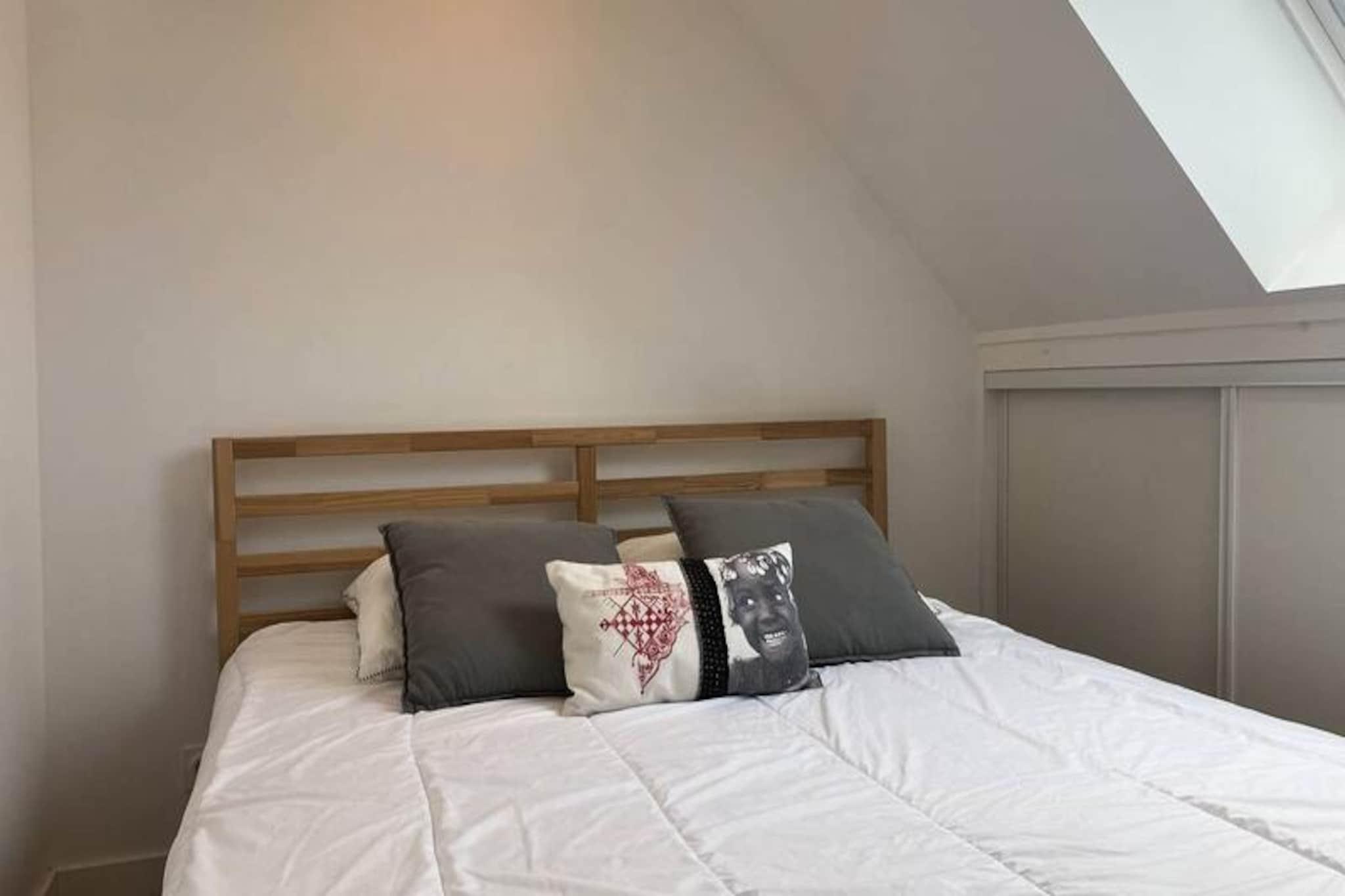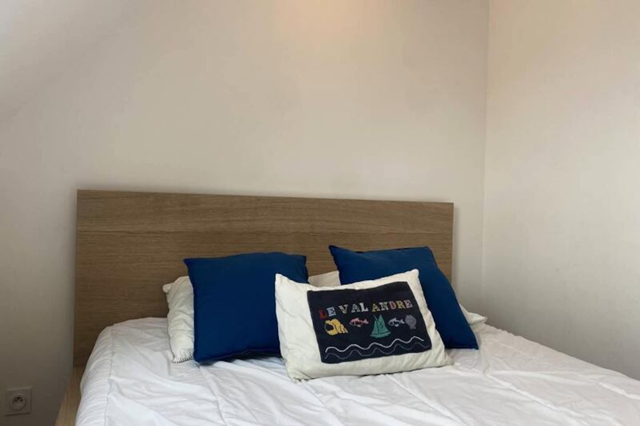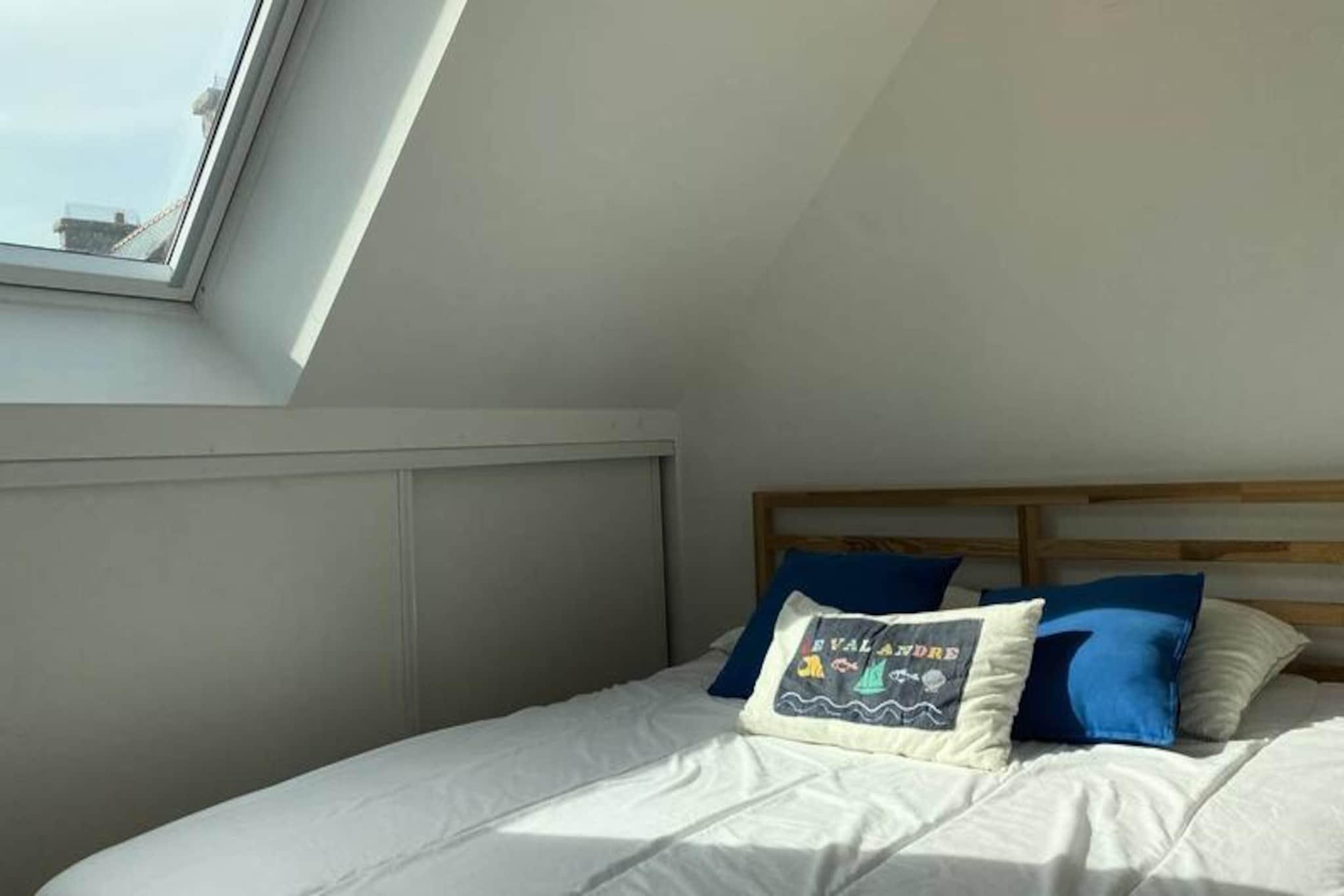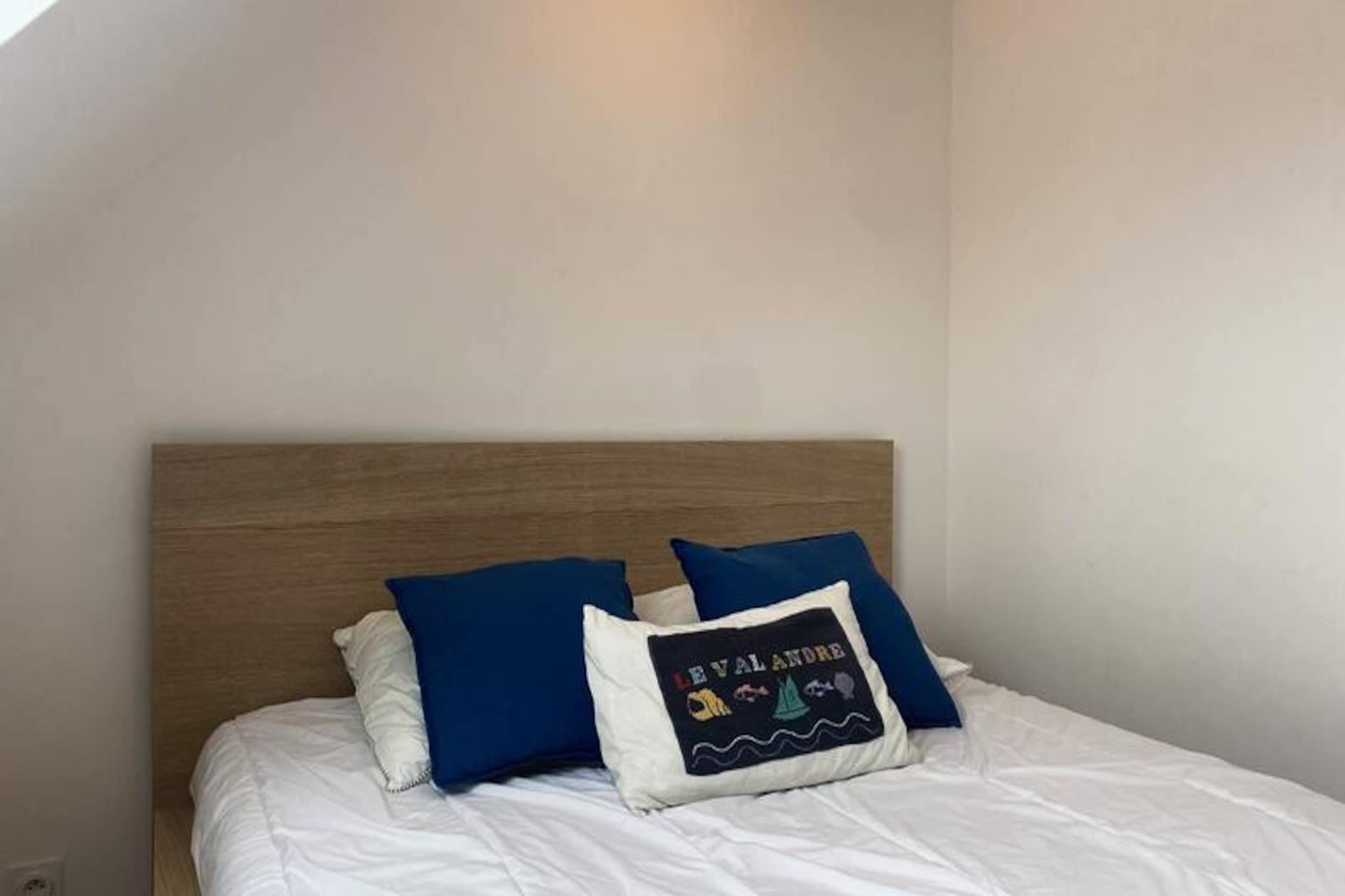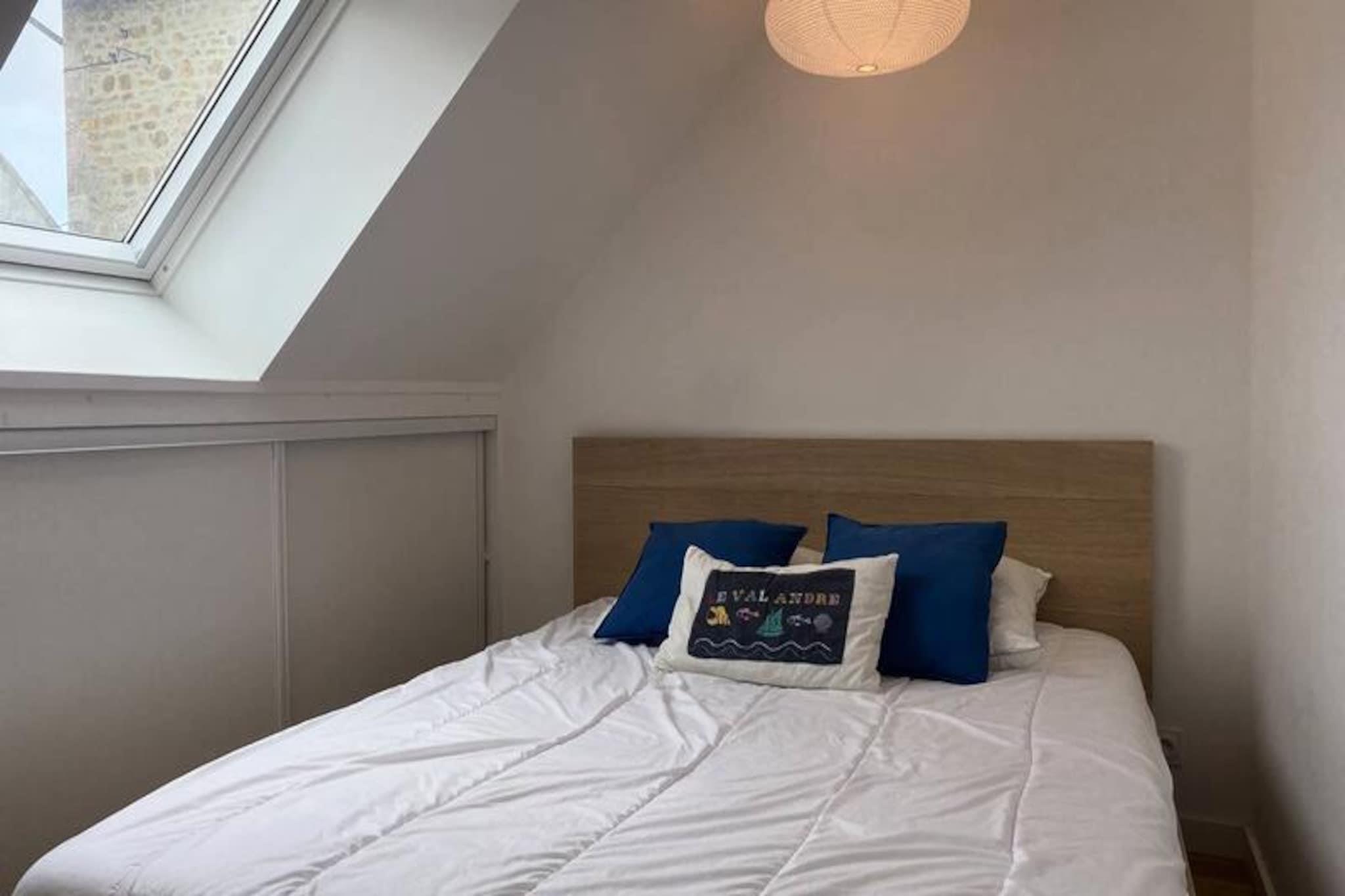 I hjertet af den fortryllende Penthièvre-kyst inviterer dette charmerende familiehjem i Pléneuf-Val-André dig til at opleve skønheden ved Bretagnes kyst. Vågn op til den blide lyd af bølger og løftet om en dag fyldt med udforskning, afslapning og uforglemmelige minder. Kun en kort gåtur væk ligger den vidtstrakte Val-André-strand, perfekt til solbadning, svømning eller blot at nyde den friske havbrise. Den nærliggende Verdelet-klippe og Digue-promenade tilbyder betagende udsigter og rolige gåture langs kysten. Golfentusiaster vil blive begejstrede for den 18-hullers golfbane, der ligger midt i fantastiske naturlige omgivelser. \n\nTræd indenfor i dette varme og indbydende hjem, designet med komfort og praktisk anvendelighed i tankerne. Stueetagen kan prale af et fuldt udstyret åbent køkken med en central køkkenø, ideel til at tilberede måltider til servering i den rummelige spiseplads eller ude i haven. Stuen, komplet med et tv til DVD-afspilning, kan åbnes op til det primære opholdsområde til større sammenkomster. Ovenpå er der fire hyggelige soveværelser, der hver har dobbeltsenge (160x200cm), hvilket sikrer afslappende nætter for alle. Moderne bekvemmeligheder såsom Wi-Fi-adgang, badeværelse på hver etage samt inkluderet sengelinned og håndklæder gør dit ophold ubesværet og behageligt. \n\nUd over ejendommen tilbyder regionen et væld af aktiviteter og seværdigheder. Udforsk de maleriske kyststier, oplev lokale markeder fyldt med bretonske specialiteter, eller nyd frisk fisk og skaldyr på nærliggende restauranter. Uanset om du søger eventyr eller ro, er dette hjem den perfekte base for at afdække skattene i Pléneuf-Val-André og dens omgivelser. Lad Bretagnes charme fange dig og skab varige minder i dette idylliske tilflugtssted.