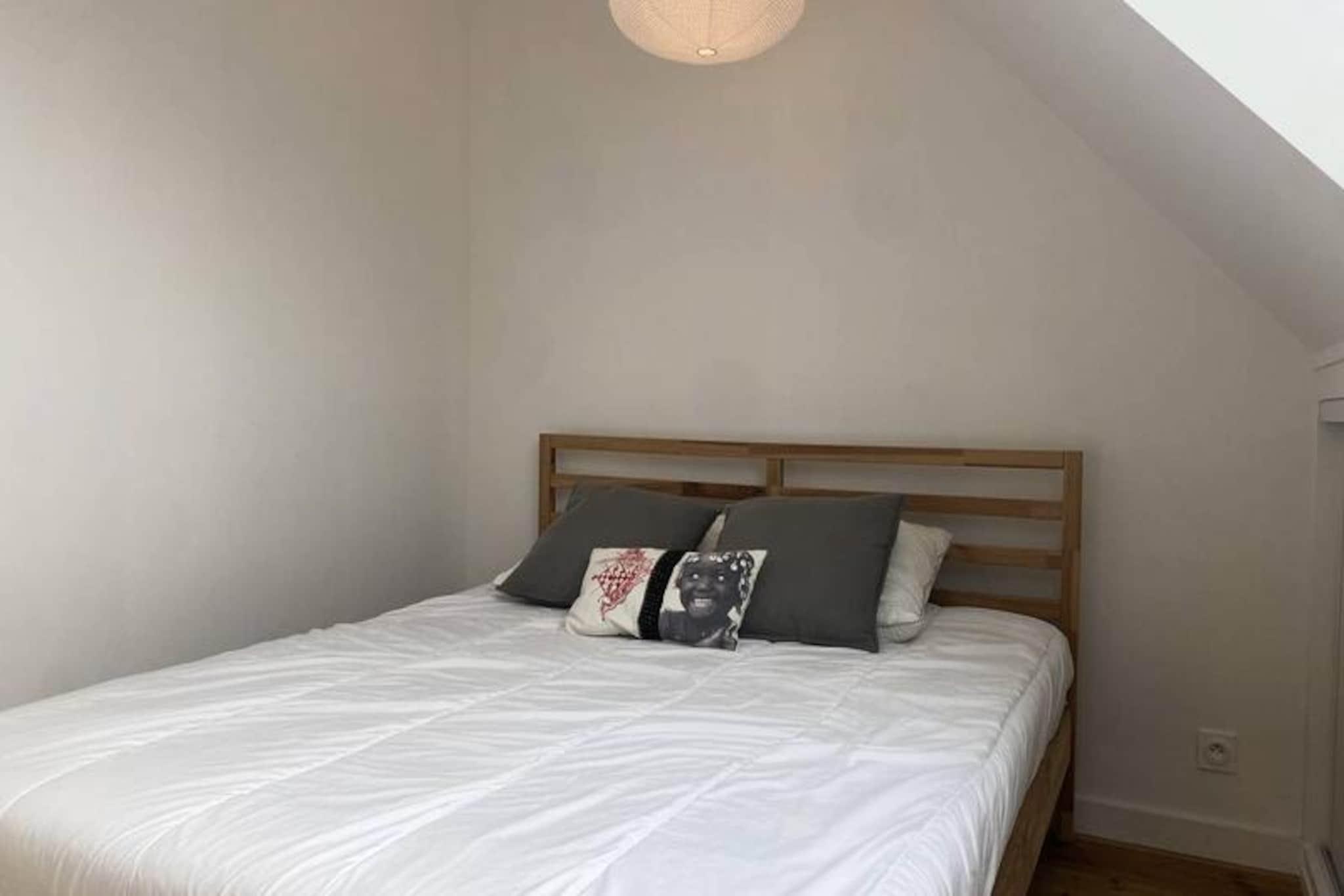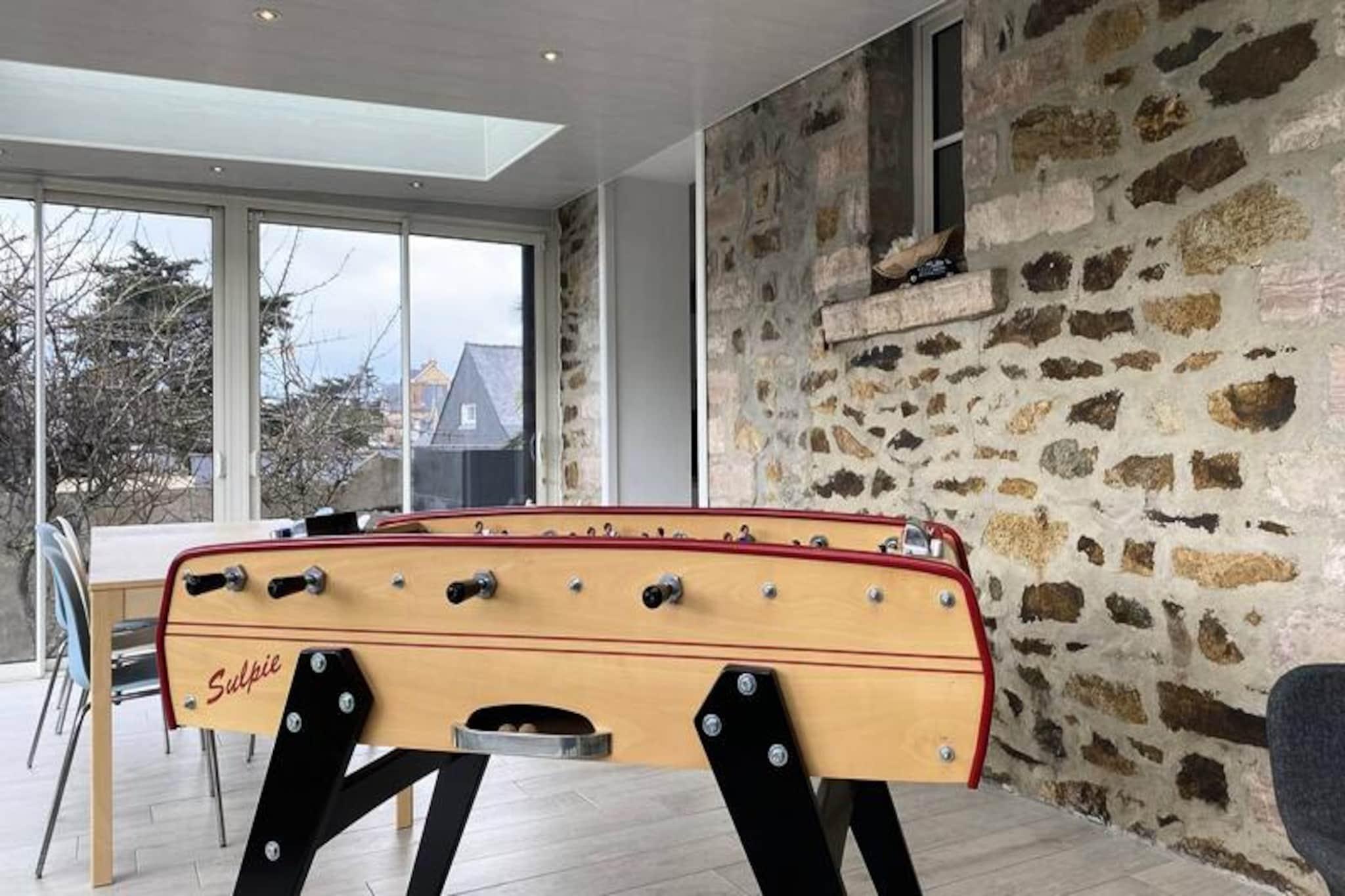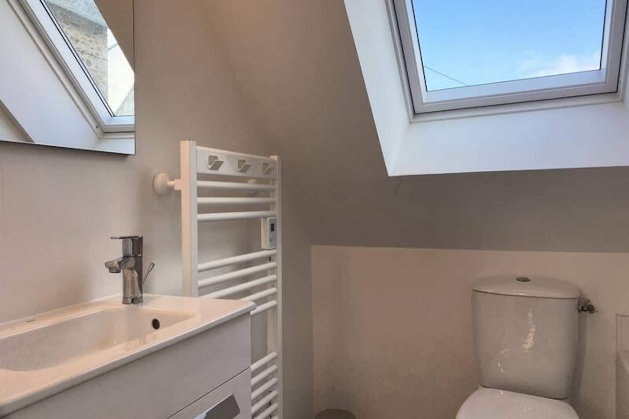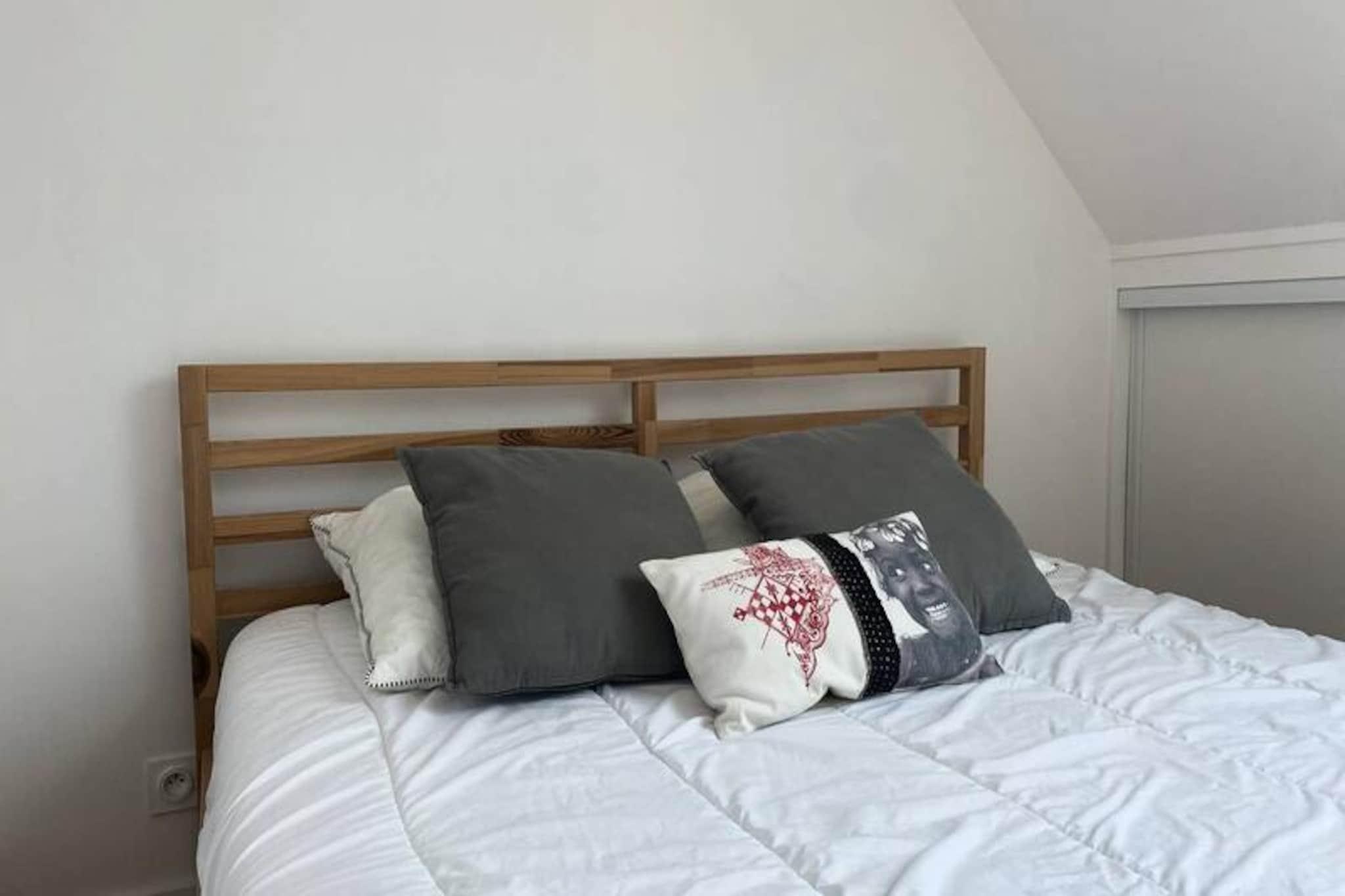 I hjertet af den fortryllende Penthièvre-kyst inviterer dette charmerende familiehjem i Pléneuf-Val-André dig til at opleve skønheden ved Bretagnes kyst. Vågn op til den blide lyd af bølger og løftet om en dag fyldt med udforskning, afslapning og uforglemmelige minder. Kun en kort gåtur væk ligger den vidtstrakte Val-André-strand, perfekt til solbadning, svømning eller blot at nyde den friske havbrise. Den nærliggende Verdelet-klippe og Digue-promenade tilbyder betagende udsigter og rolige gåture langs kysten. Golfentusiaster vil blive begejstrede for den 18-hullers golfbane, der ligger midt i fantastiske naturlige omgivelser. \n\nTræd indenfor i dette varme og indbydende hjem, designet med komfort og praktisk anvendelighed i tankerne. Stueetagen kan prale af et fuldt udstyret åbent køkken med en central køkkenø, ideel til at tilberede måltider til servering i den rummelige spiseplads eller ude i haven. Stuen, komplet med et tv til DVD-afspilning, kan åbnes op til det primære opholdsområde til større sammenkomster. Ovenpå er der fire hyggelige soveværelser, der hver har dobbeltsenge (160x200cm), hvilket sikrer afslappende nætter for alle. Moderne bekvemmeligheder såsom Wi-Fi-adgang, badeværelse på hver etage samt inkluderet sengelinned og håndklæder gør dit ophold ubesværet og behageligt. \n\nUd over ejendommen tilbyder regionen et væld af aktiviteter og seværdigheder. Udforsk de maleriske kyststier, oplev lokale markeder fyldt med bretonske specialiteter, eller nyd frisk fisk og skaldyr på nærliggende restauranter. Uanset om du søger eventyr eller ro, er dette hjem den perfekte base for at afdække skattene i Pléneuf-Val-André og dens omgivelser. Lad Bretagnes charme fange dig og skab varige minder i dette idylliske tilflugtssted.