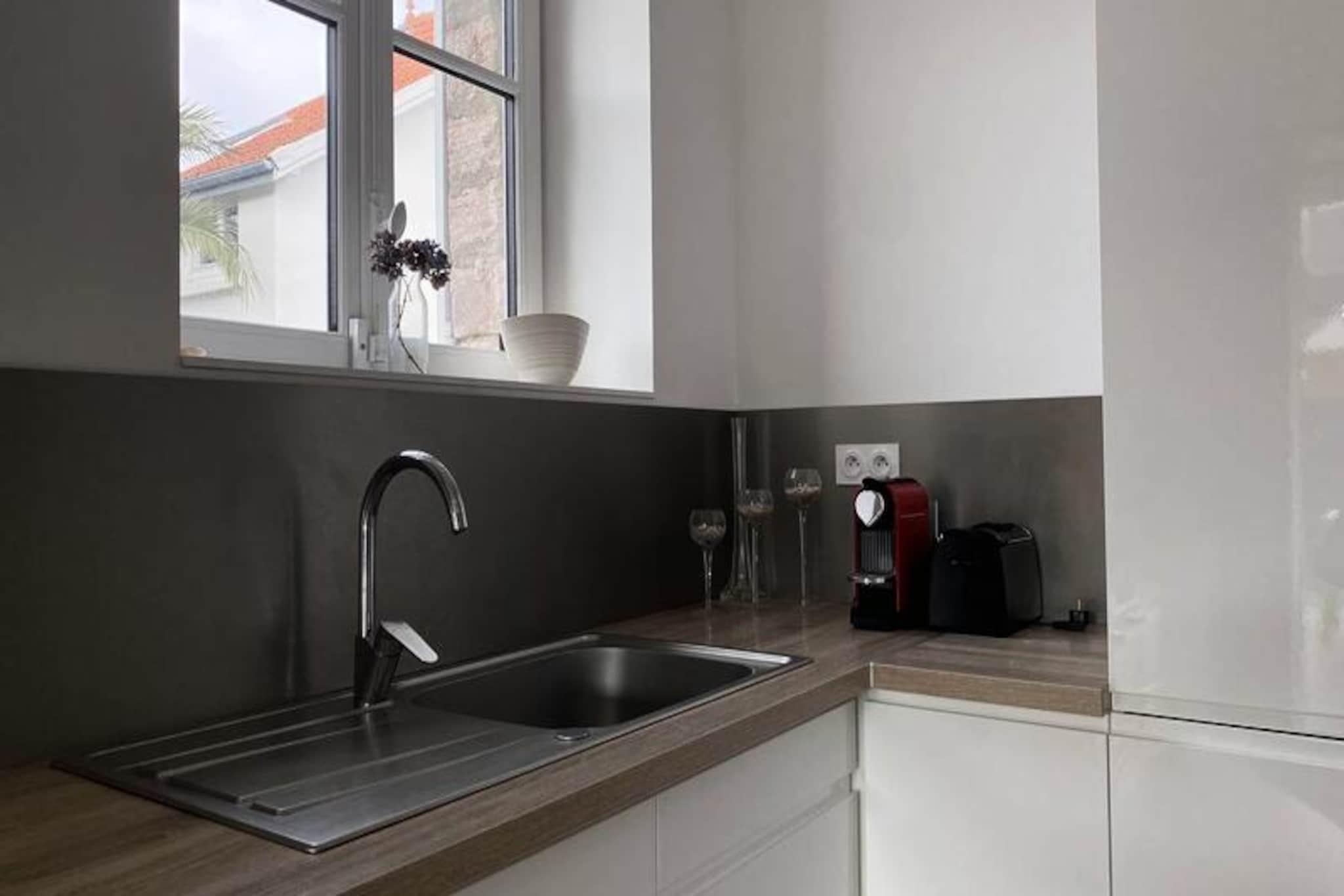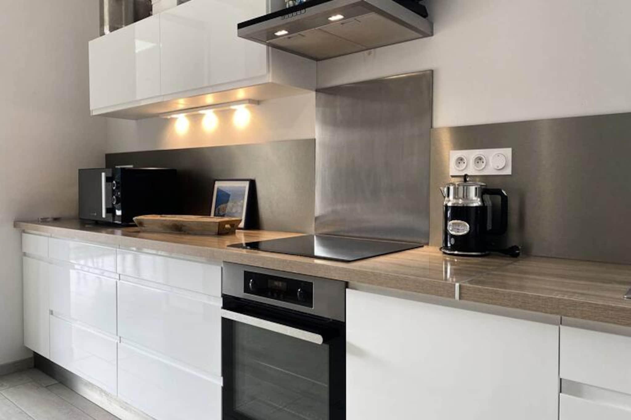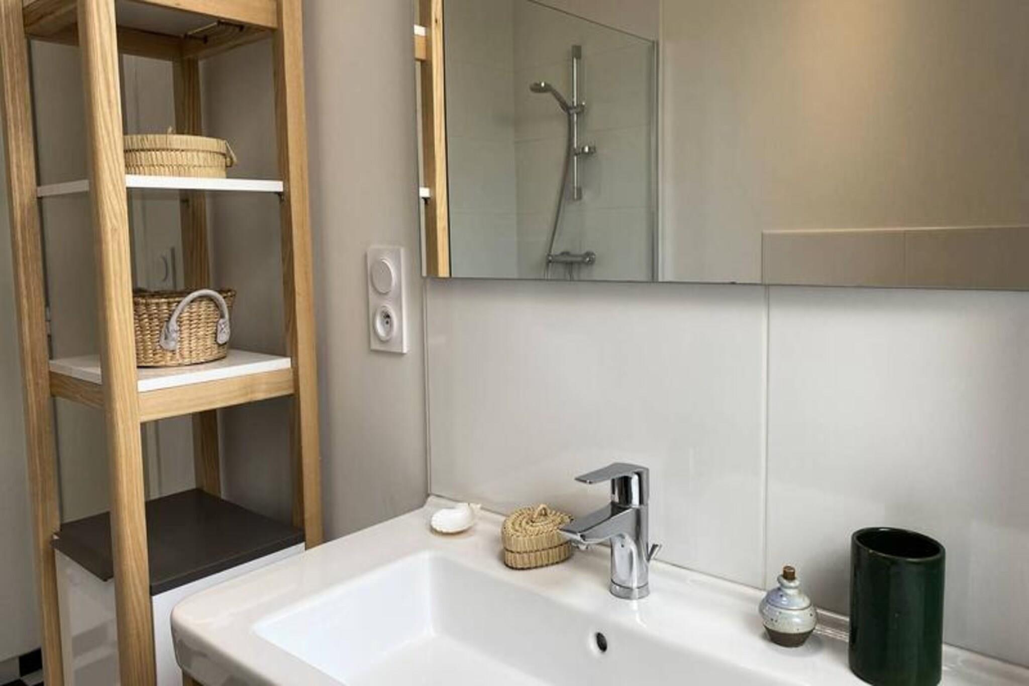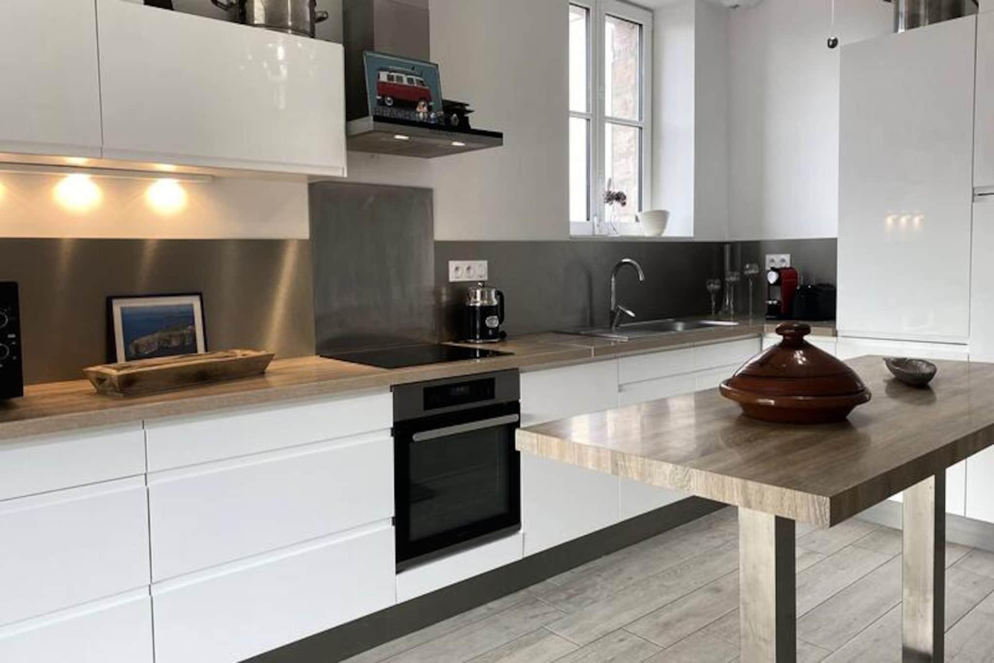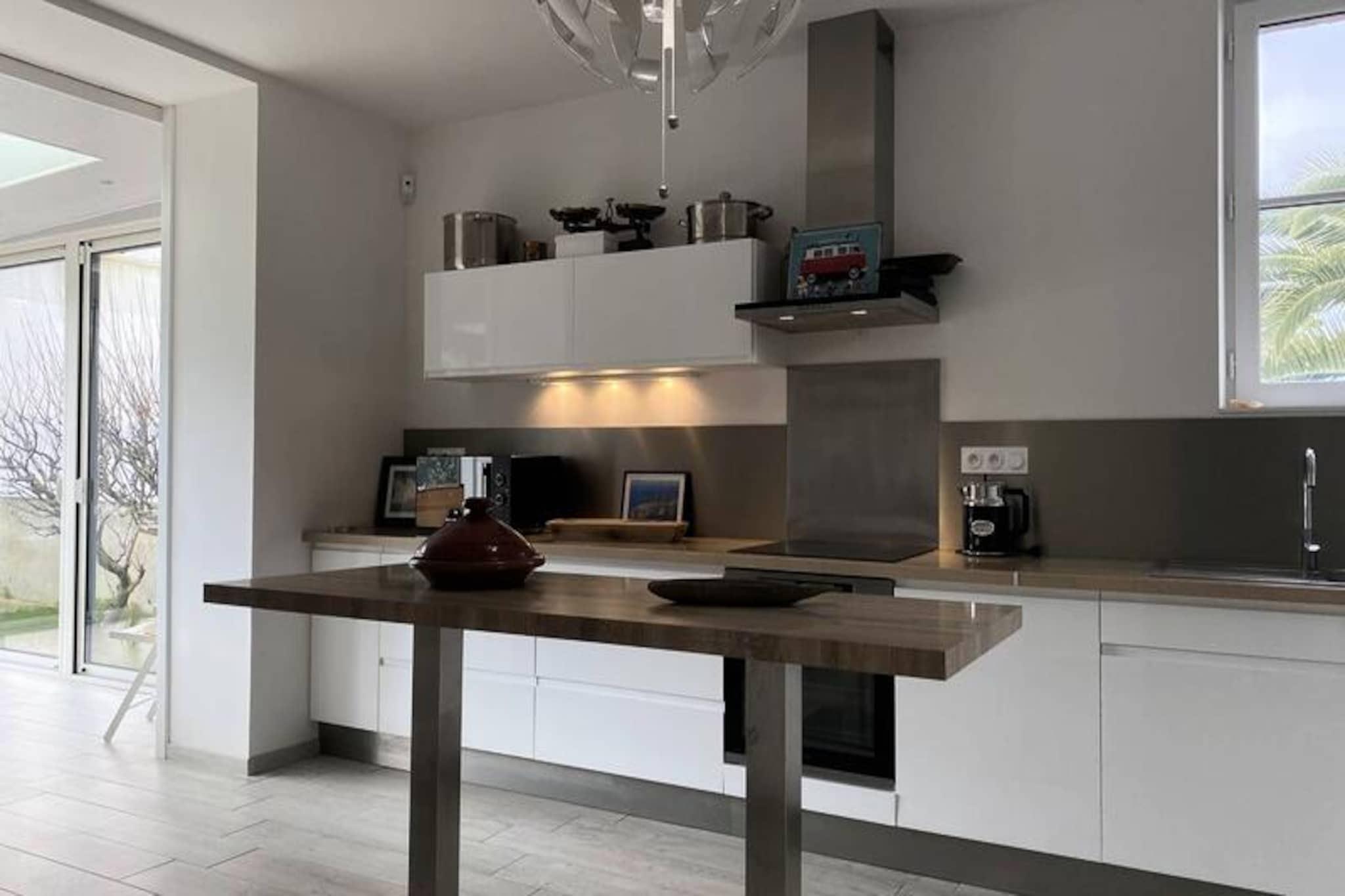 I hjertet af den fortryllende Penthièvre-kyst inviterer dette charmerende familiehjem i Pléneuf-Val-André dig til at opleve skønheden ved Bretagnes kyst. Vågn op til den blide lyd af bølger og løftet om en dag fyldt med udforskning, afslapning og uforglemmelige minder. Kun en kort gåtur væk ligger den vidtstrakte Val-André-strand, perfekt til solbadning, svømning eller blot at nyde den friske havbrise. Den nærliggende Verdelet-klippe og Digue-promenade tilbyder betagende udsigter og rolige gåture langs kysten. Golfentusiaster vil blive begejstrede for den 18-hullers golfbane, der ligger midt i fantastiske naturlige omgivelser. \n\nTræd indenfor i dette varme og indbydende hjem, designet med komfort og praktisk anvendelighed i tankerne. Stueetagen kan prale af et fuldt udstyret åbent køkken med en central køkkenø, ideel til at tilberede måltider til servering i den rummelige spiseplads eller ude i haven. Stuen, komplet med et tv til DVD-afspilning, kan åbnes op til det primære opholdsområde til større sammenkomster. Ovenpå er der fire hyggelige soveværelser, der hver har dobbeltsenge (160x200cm), hvilket sikrer afslappende nætter for alle. Moderne bekvemmeligheder såsom Wi-Fi-adgang, badeværelse på hver etage samt inkluderet sengelinned og håndklæder gør dit ophold ubesværet og behageligt. \n\nUd over ejendommen tilbyder regionen et væld af aktiviteter og seværdigheder. Udforsk de maleriske kyststier, oplev lokale markeder fyldt med bretonske specialiteter, eller nyd frisk fisk og skaldyr på nærliggende restauranter. Uanset om du søger eventyr eller ro, er dette hjem den perfekte base for at afdække skattene i Pléneuf-Val-André og dens omgivelser. Lad Bretagnes charme fange dig og skab varige minder i dette idylliske tilflugtssted.