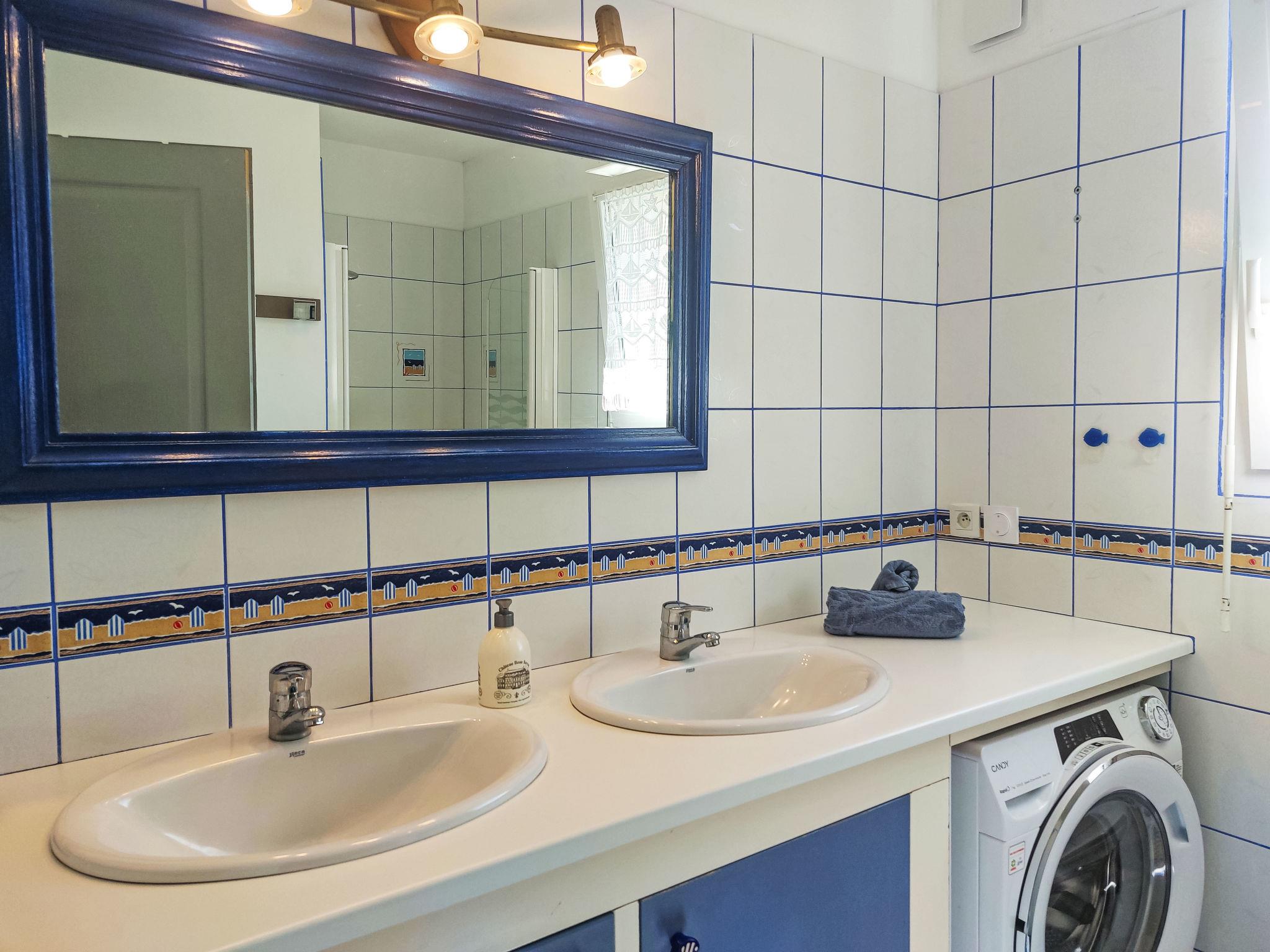 "de la Plage", 4-room house 80 m2 on 2 levels. Beautiful and cosy furnishings: living/dining room with Scandinavian wood stove, dining table and satellite TV (flat screen), hi-fi system and DVD. Open kitchen (oven, dishwasher, 5 gas rings, toaster, kettle, microwave, freezer, electric coffee machine). Exit to the patio. Shower, sep. WC, double hand-basin. Upper floor: 1 room with sloping ceilings with 1 french bed (140 cm, length 190 cm). 2 rooms with sloping ceilings, each room with 2 beds (90 cm, length 190 cm). Electric heating. Terrace furniture, barbecue, deck chairs (2). Facilities: washing machine, iron, children's high chair, baby cot. Internet (WiFi, free). Please note: non-smoking house. Maximum 1 pet/ dog allowed. Smoke alarm.