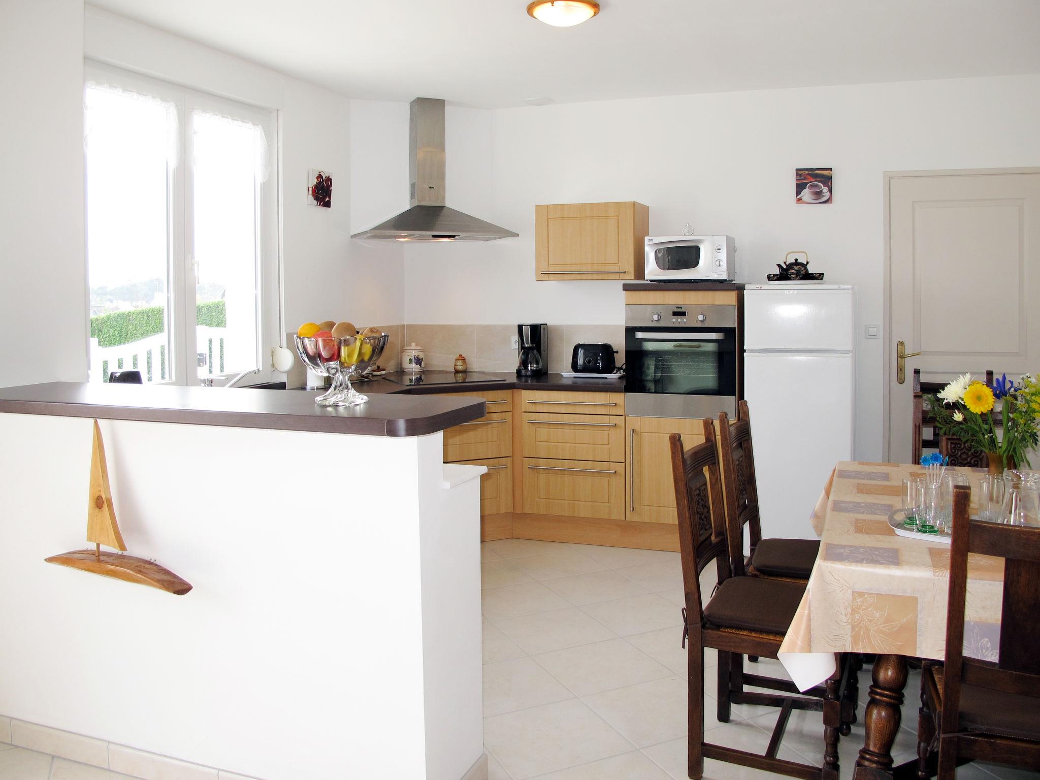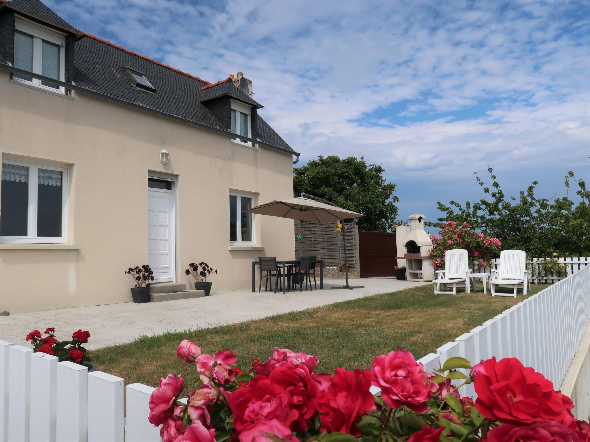 Single-family house "Le Sémaphore". In the hamlet Creac'h Maout 4 km from the centre of Pleubian, 15 km from the centre of Paimpol, 15 km from the centre of Treguier, on a slope, 200 m from the sea, in a cul-de-sac. Private: property 150 m2 (fenced), well-kept garden with lawn and flowers, parking on the premises. Shop 1 km, supermarket 4 km, bus stop 3 km, sandy beach "Pors Rand" 200 m.