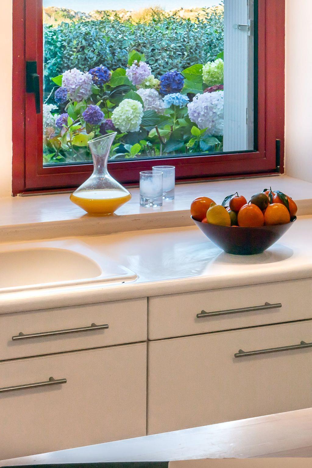 As photos 1, 2, 3 and 5 show, the property is located directly by the sea and offers you an unobstructed view from almost every room: a true picture of land and sea in which the sky, vegetation and sea constantly change their colour palettes. You will be amazed by the sunrises and sunsets that you can witness live from your accommodation.