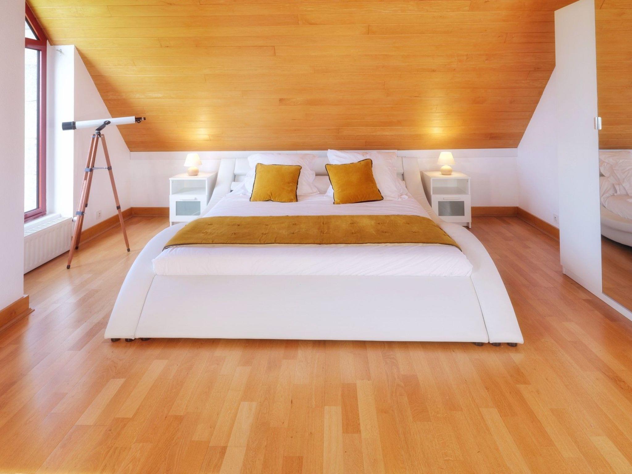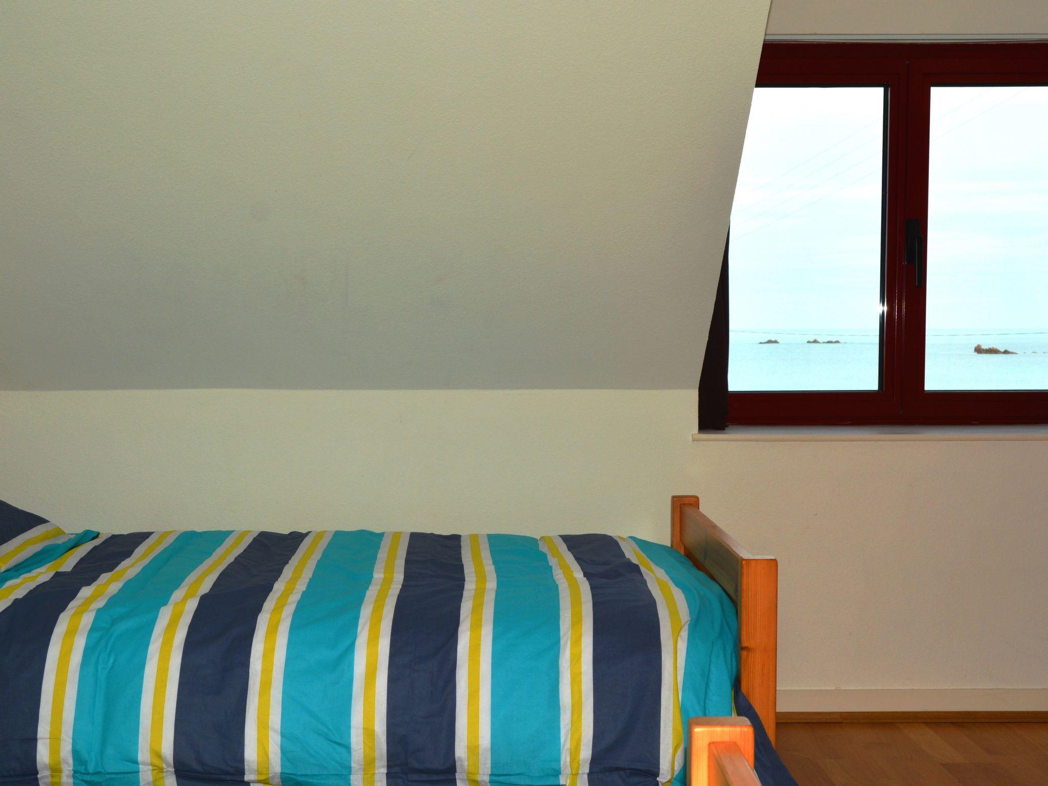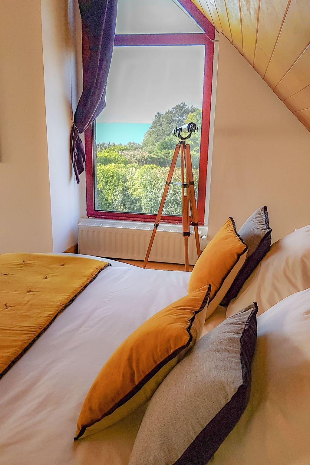 The fourth bedroom on the upper floor is 17m2 in size, has a double bed 160x200 and also offers a view of the sea and the garden.