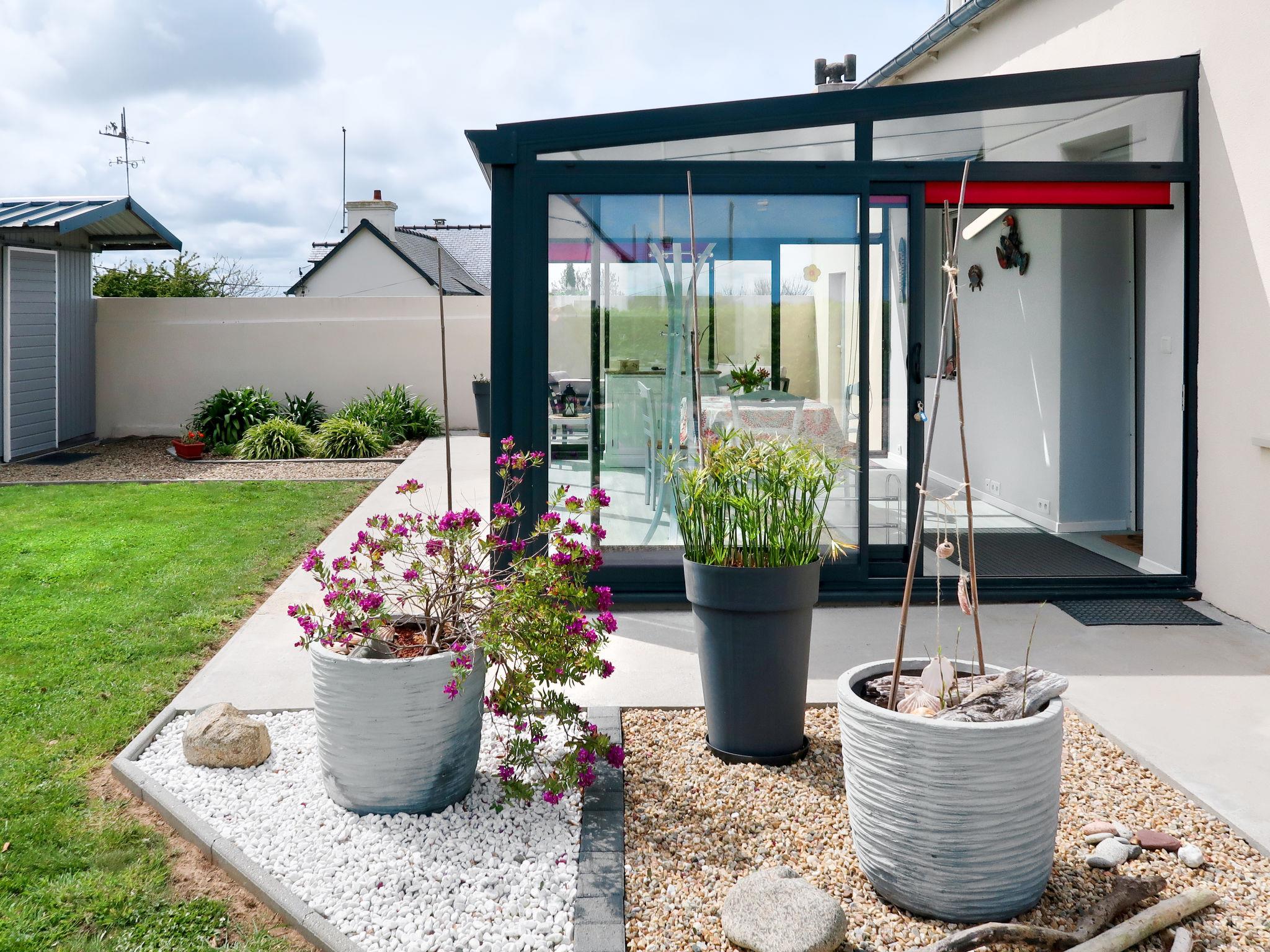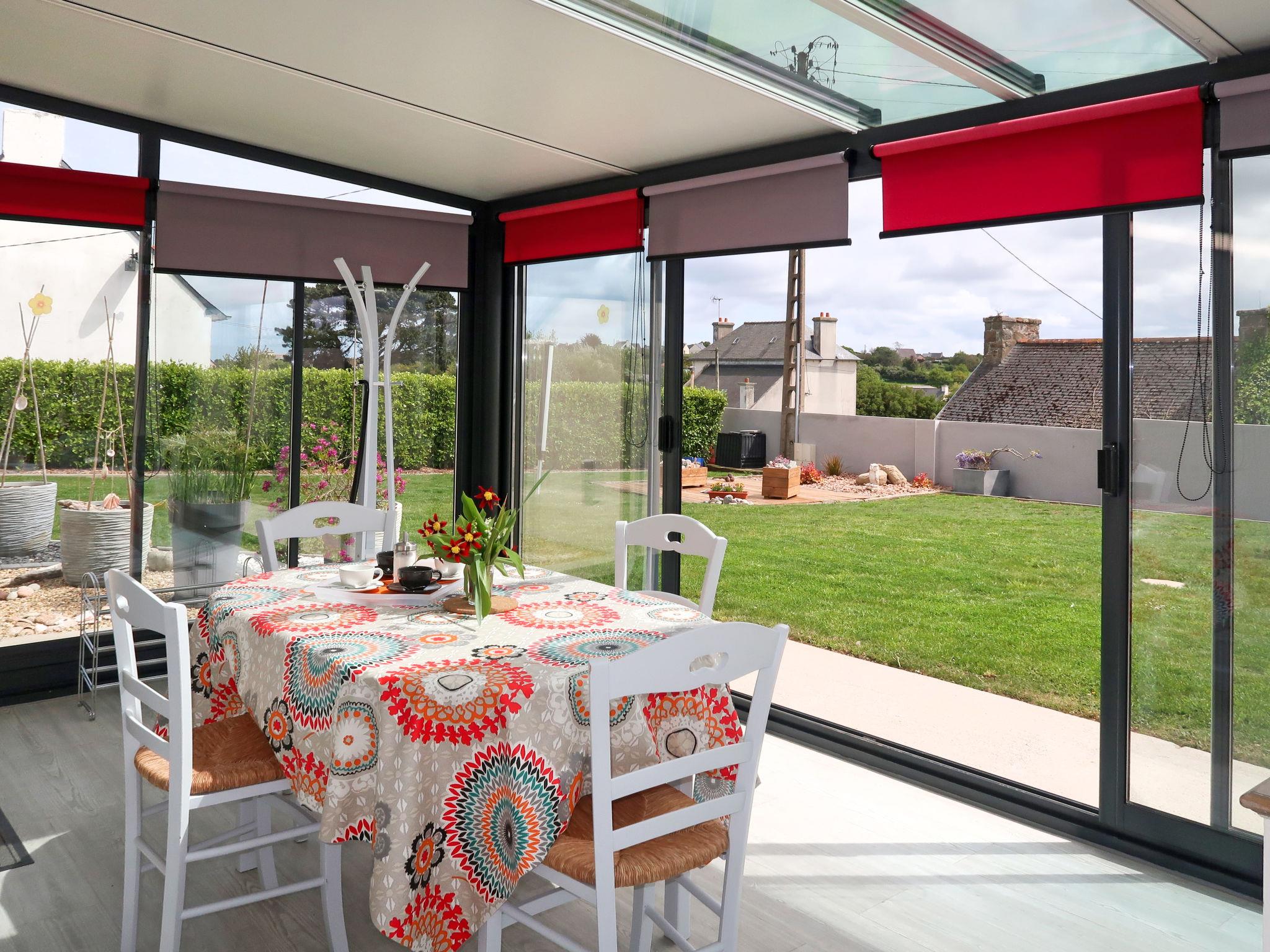 "Avel Dro", 3-room house 90 m2 on 2 levels. Renovated in 2019, comfortable and tasteful furnishings: living/dining room with Scandinavian wood stove, dining table and satellite TV (flat screen). Living room with winter garden with dining table. Exit to the terrace. Kitchen (oven, dishwasher, 4 gas rings, toaster, kettle, microwave, freezer, electric coffee machine, Capsules for coffee machine (Cafetière à dosettes) extra) with dining table. Shower, sep. WC. Top floor: (open staircase), 1 room with sloping ceilings with 1 french bed (160 cm, length 200 cm). 1 room with sloping ceilings with 2 beds (90 cm, length 200 cm). Sep. WC. Electric heating. Terrace. Terrace furniture, barbecue (portable), deck chairs (2). Facilities: washing machine, iron, children's high chair, baby cot, hair dryer. Internet (WiFi, free). Please note: non-smoking house. Maximum 1 pet/ dog allowed. Smoke alarm. Offer by a private individual according to Art. 155, IV of CGI.